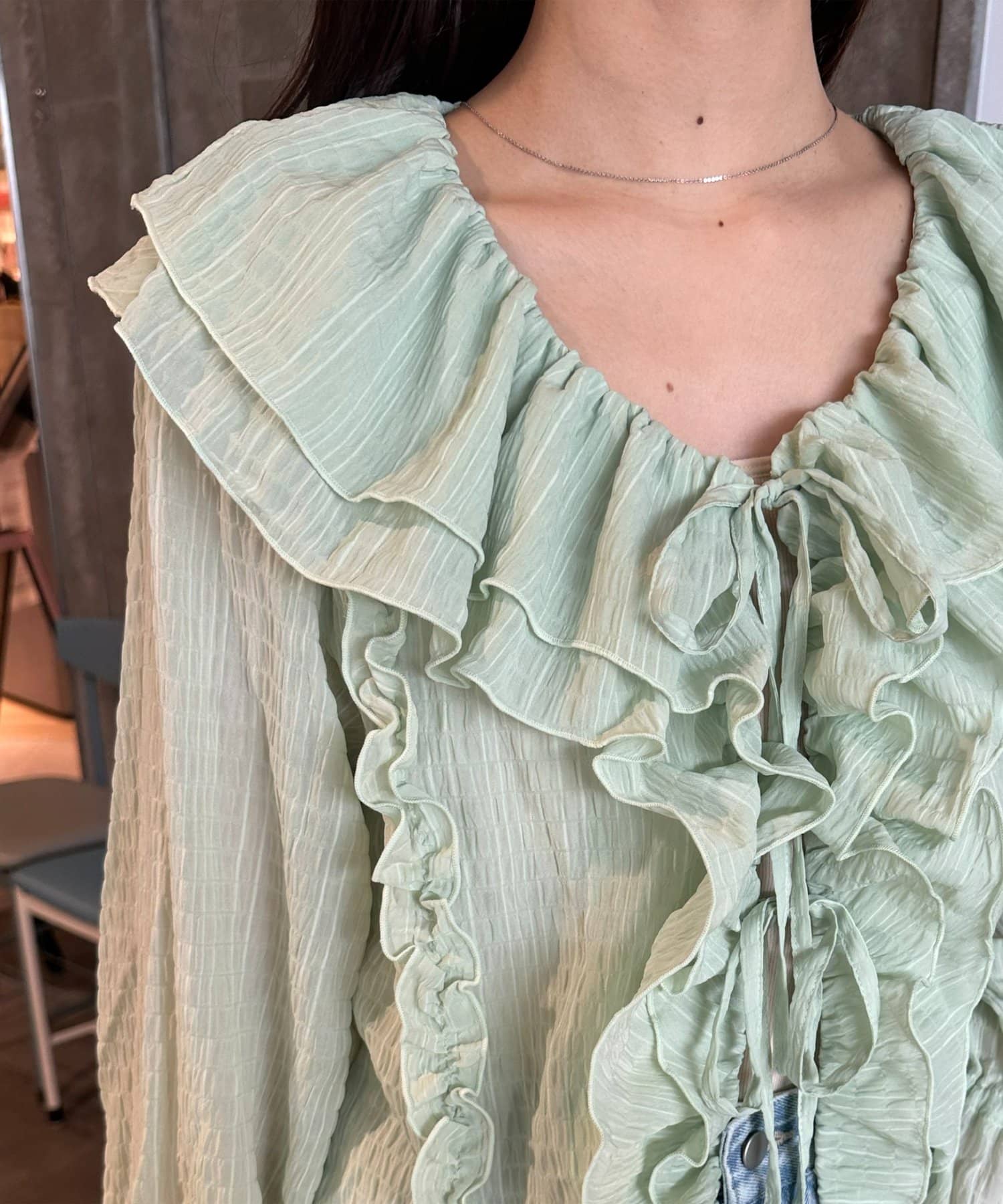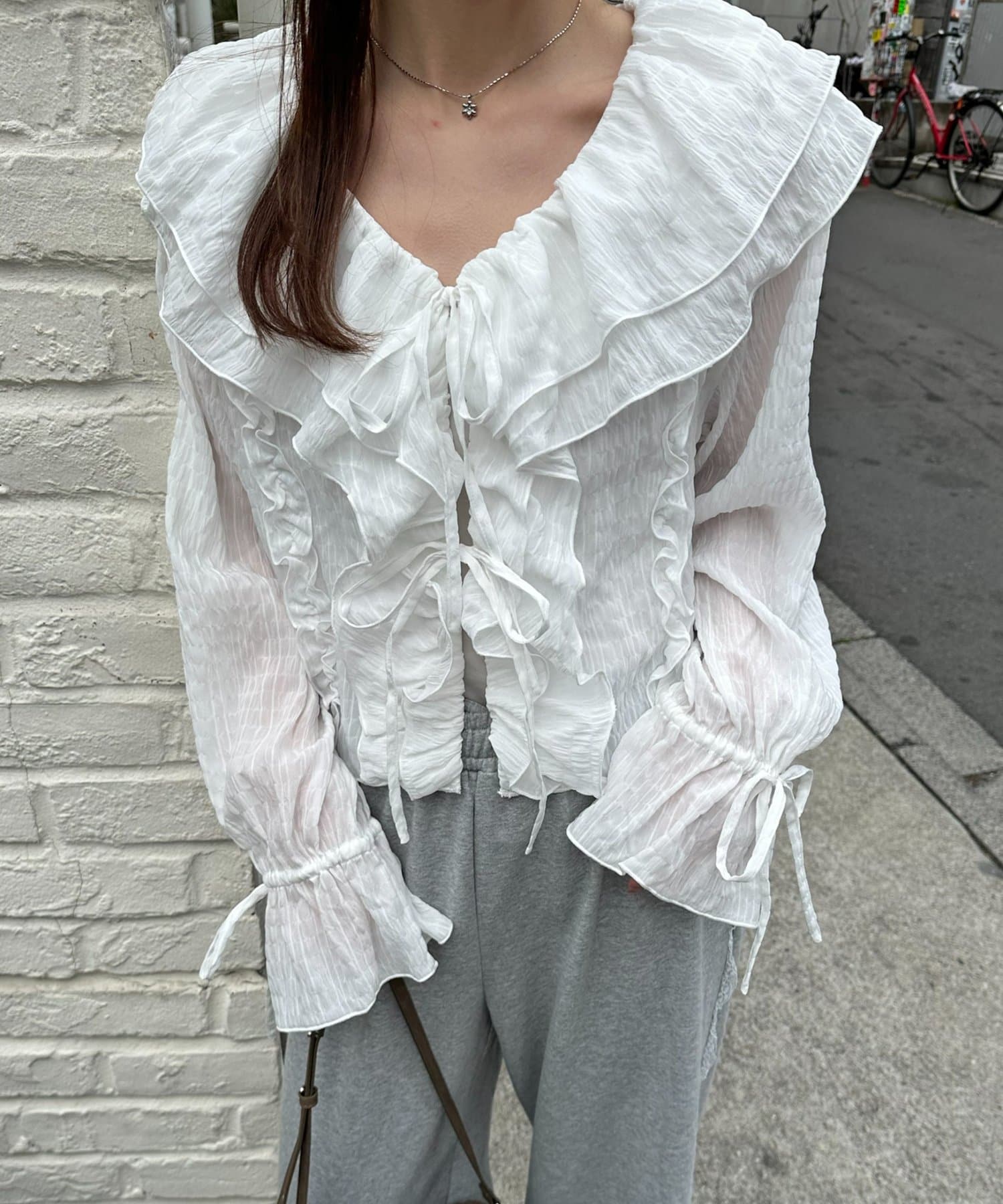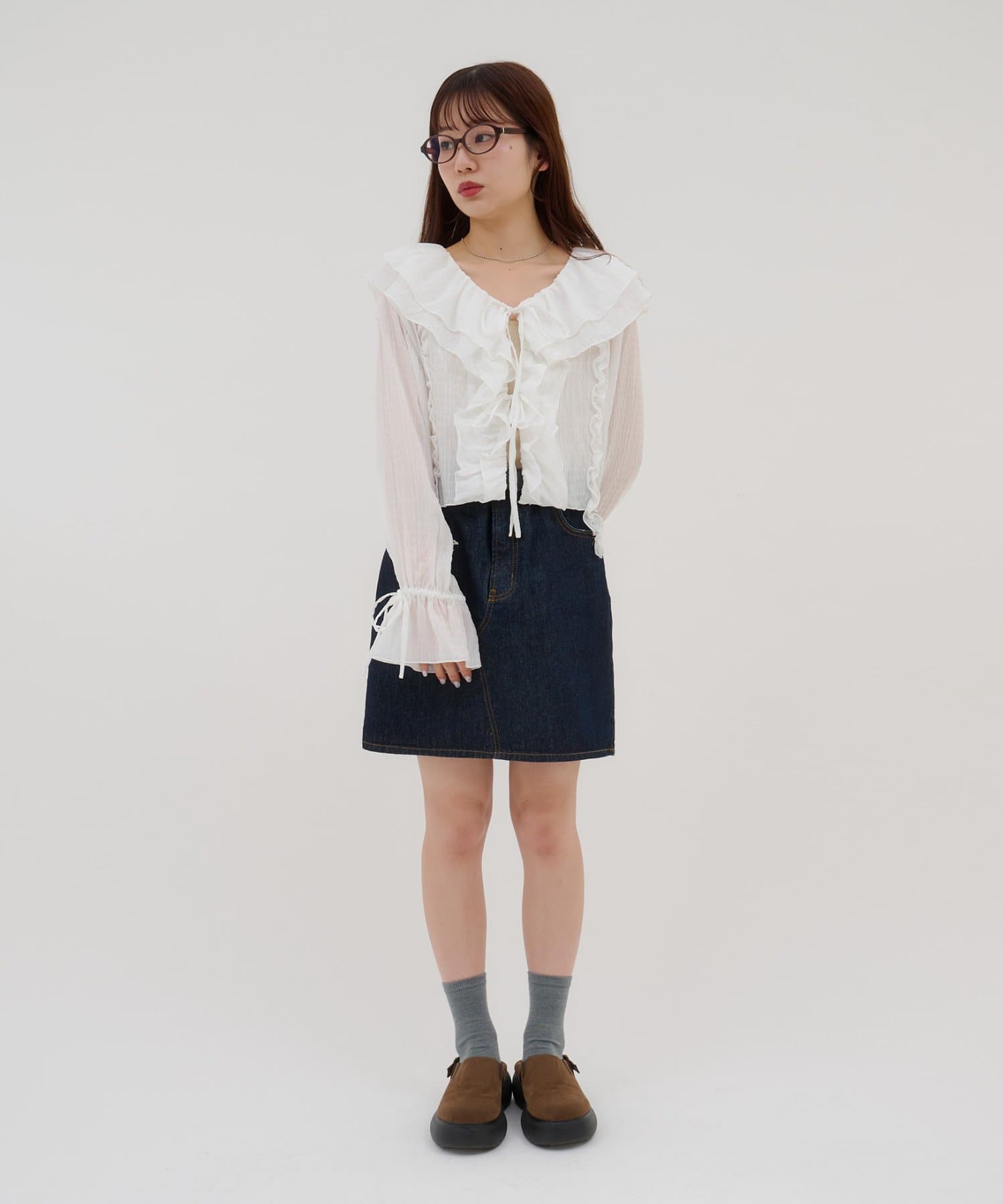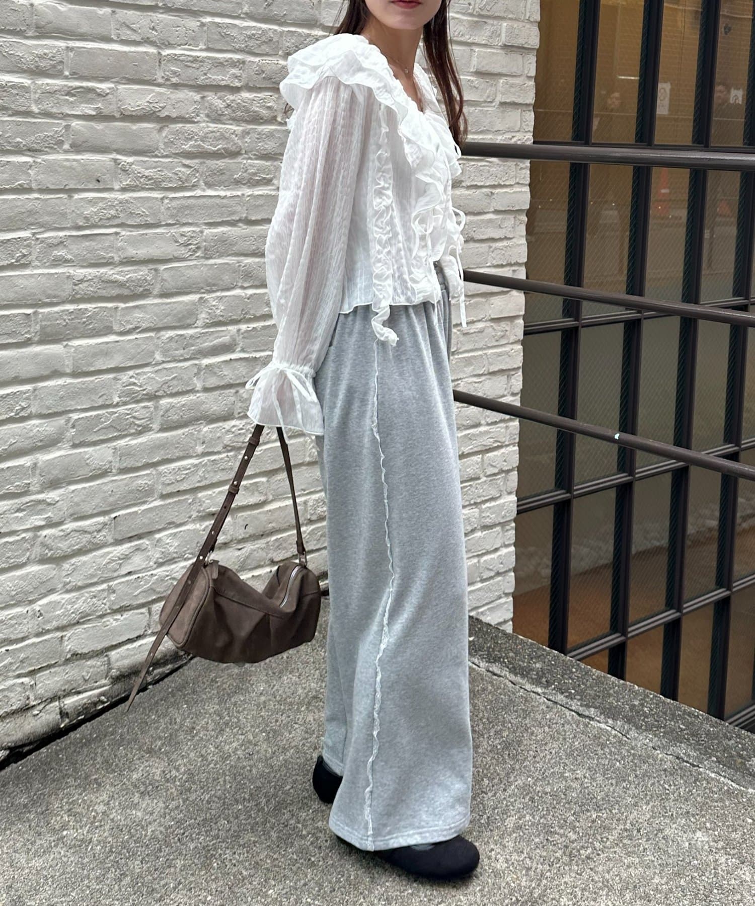 【umm./花柄&無地】生地ジャガードフリルブラウス