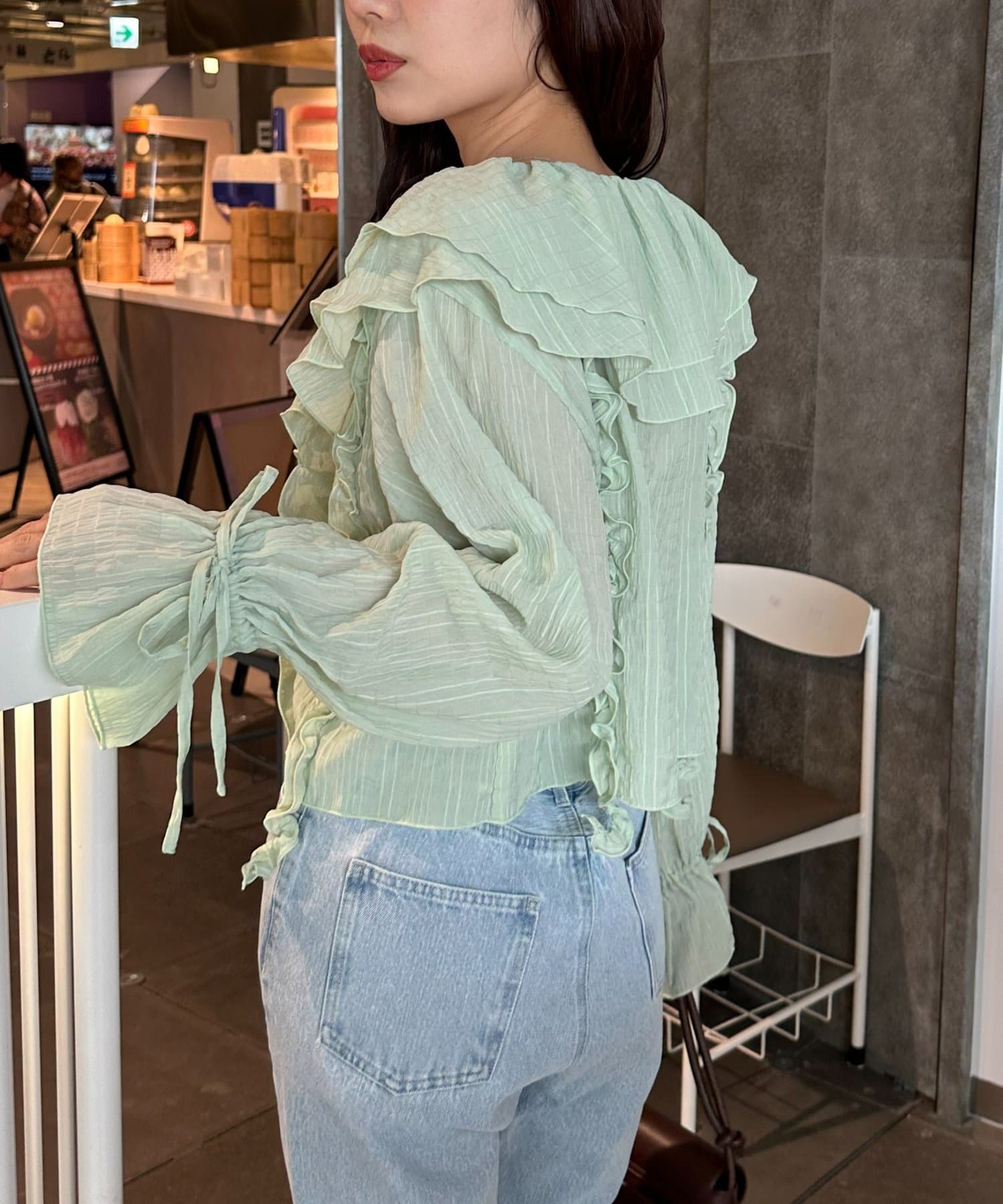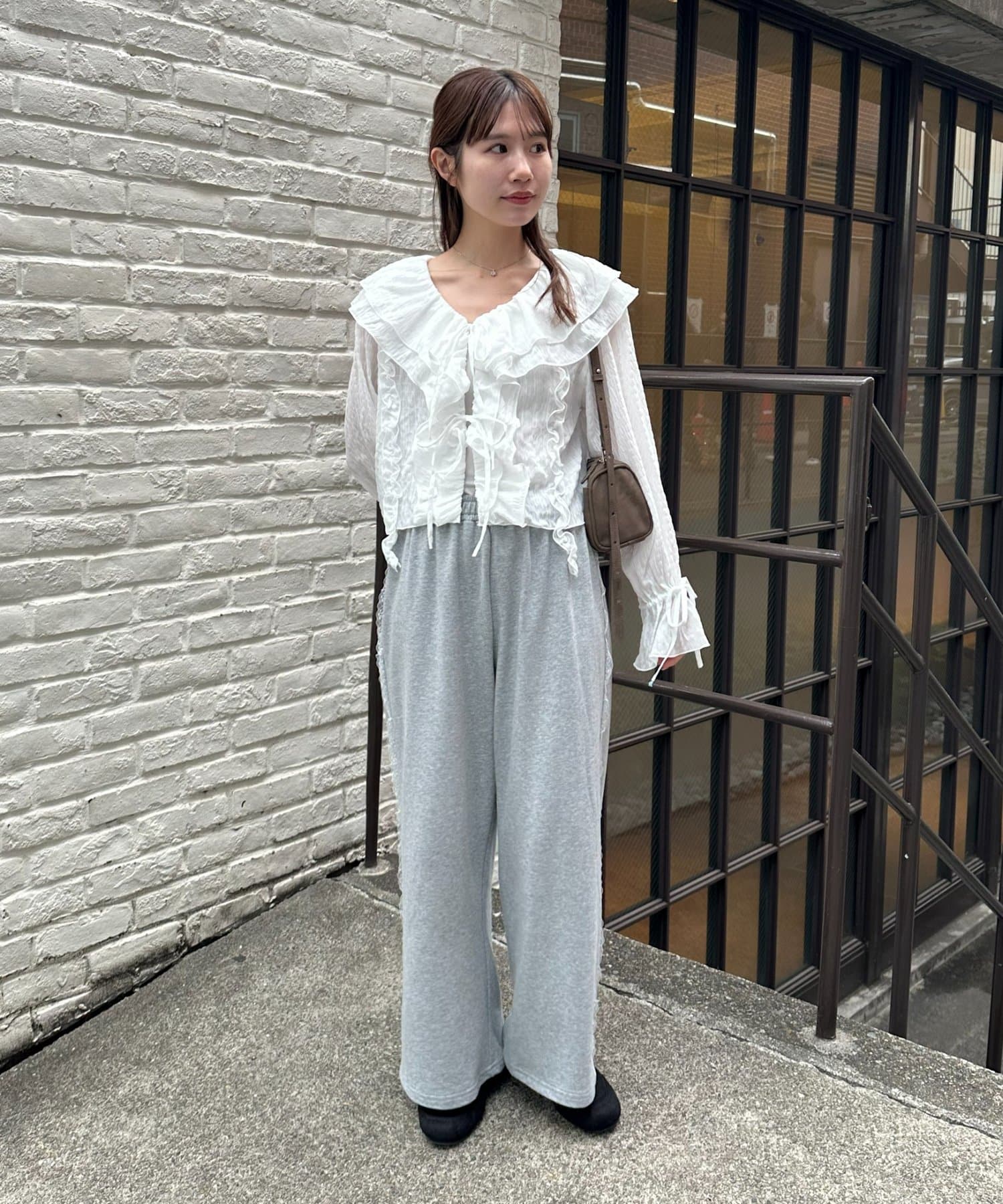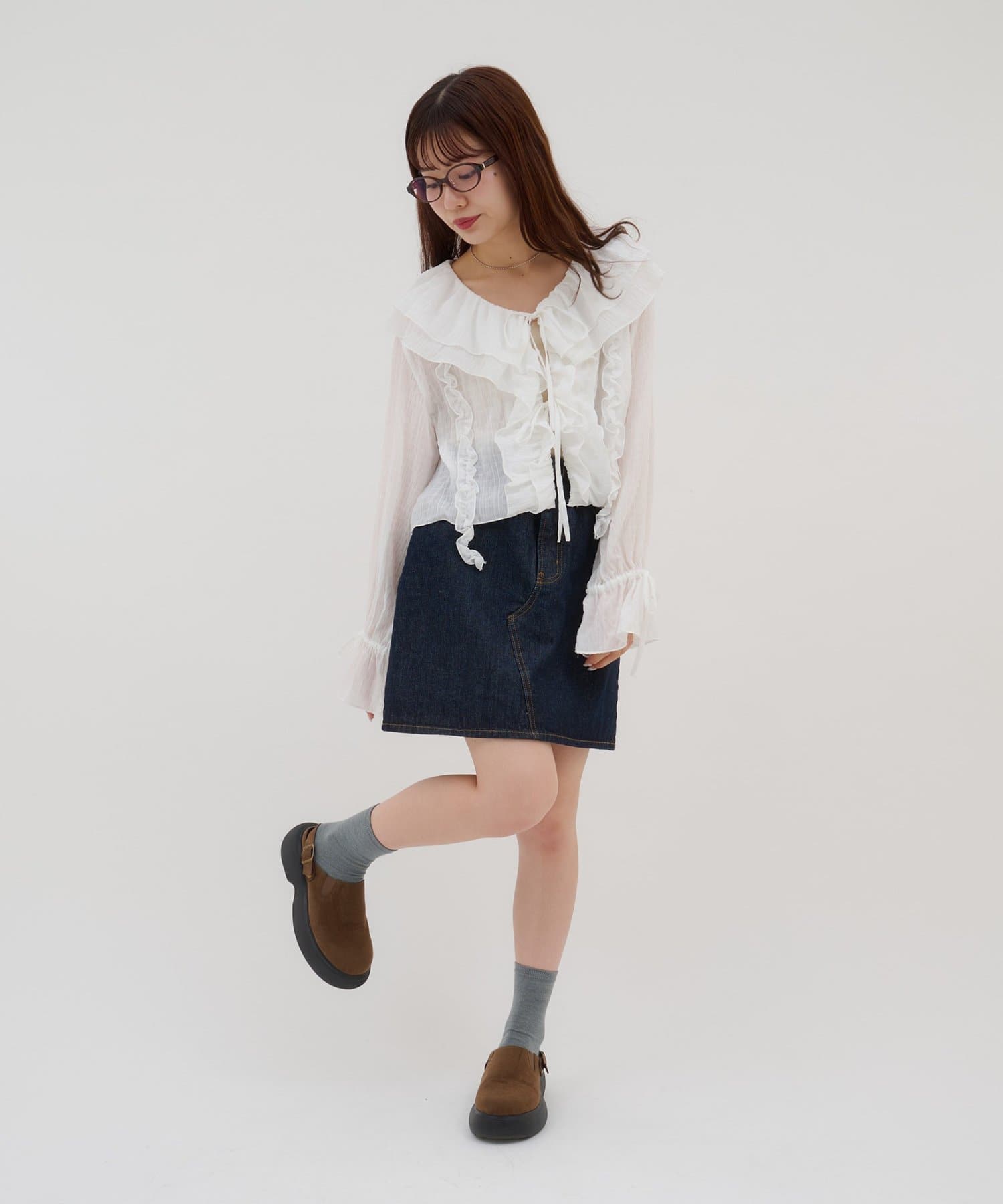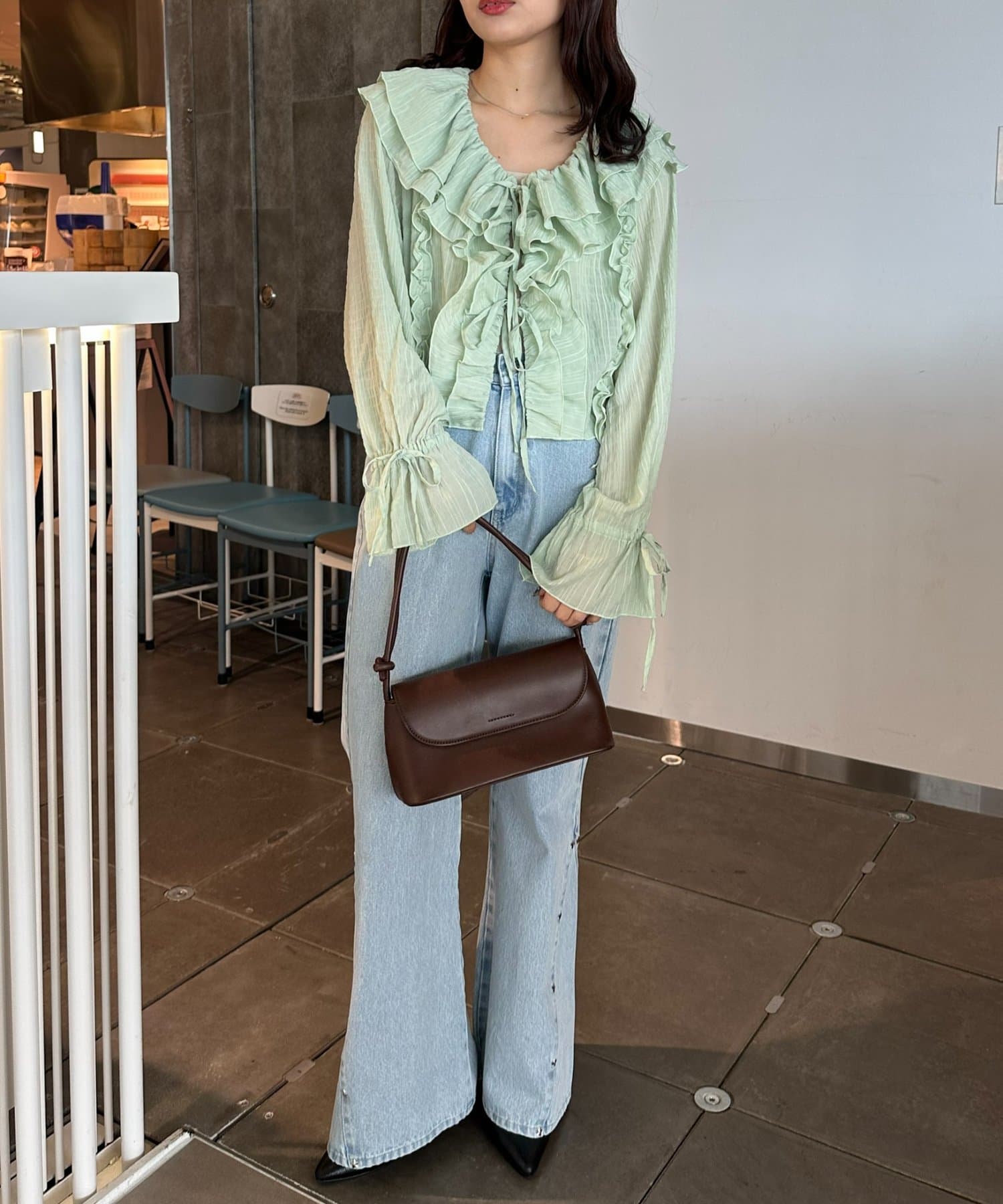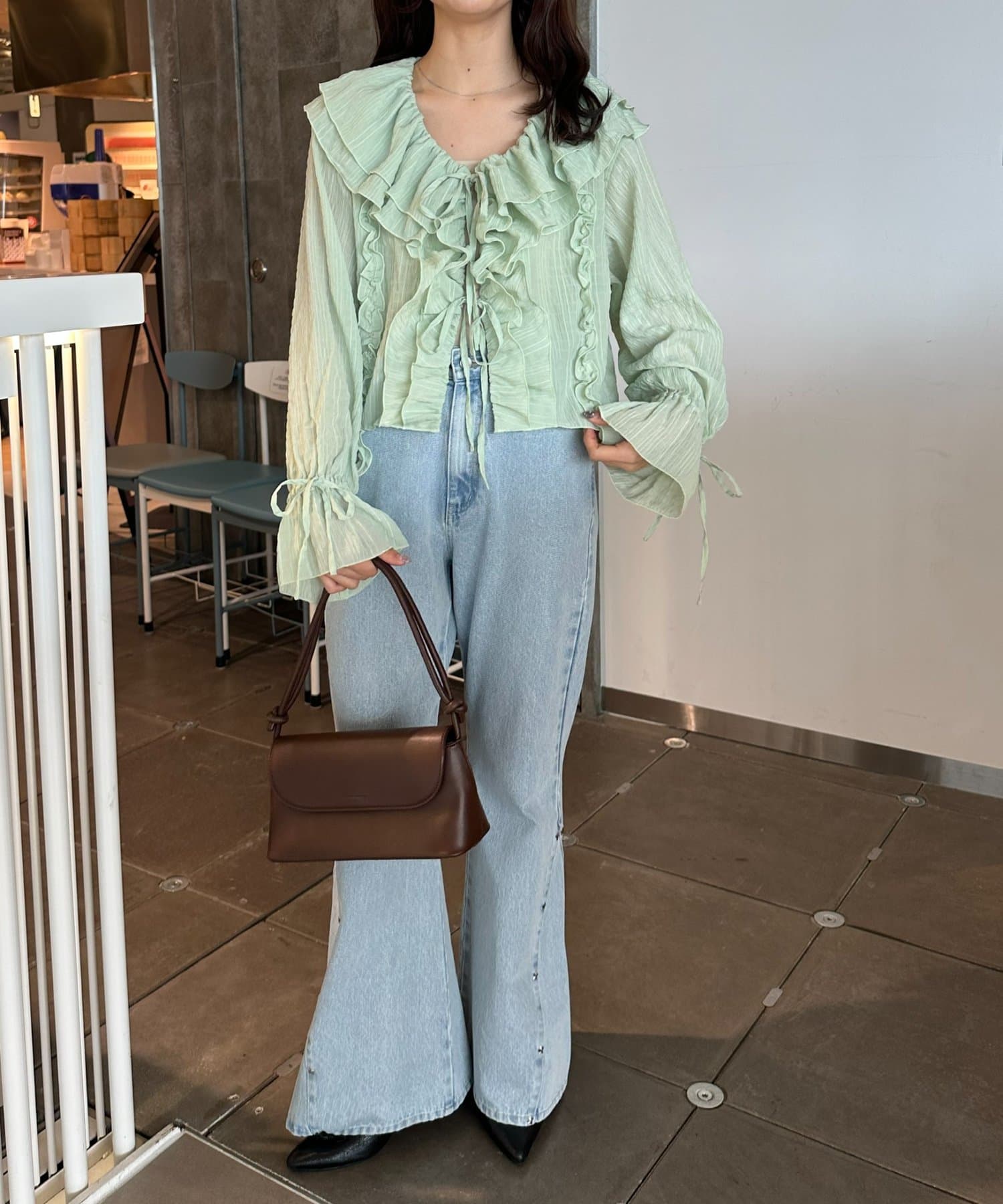 【umm./花柄&無地】生地ジャガードフリルブラウス
