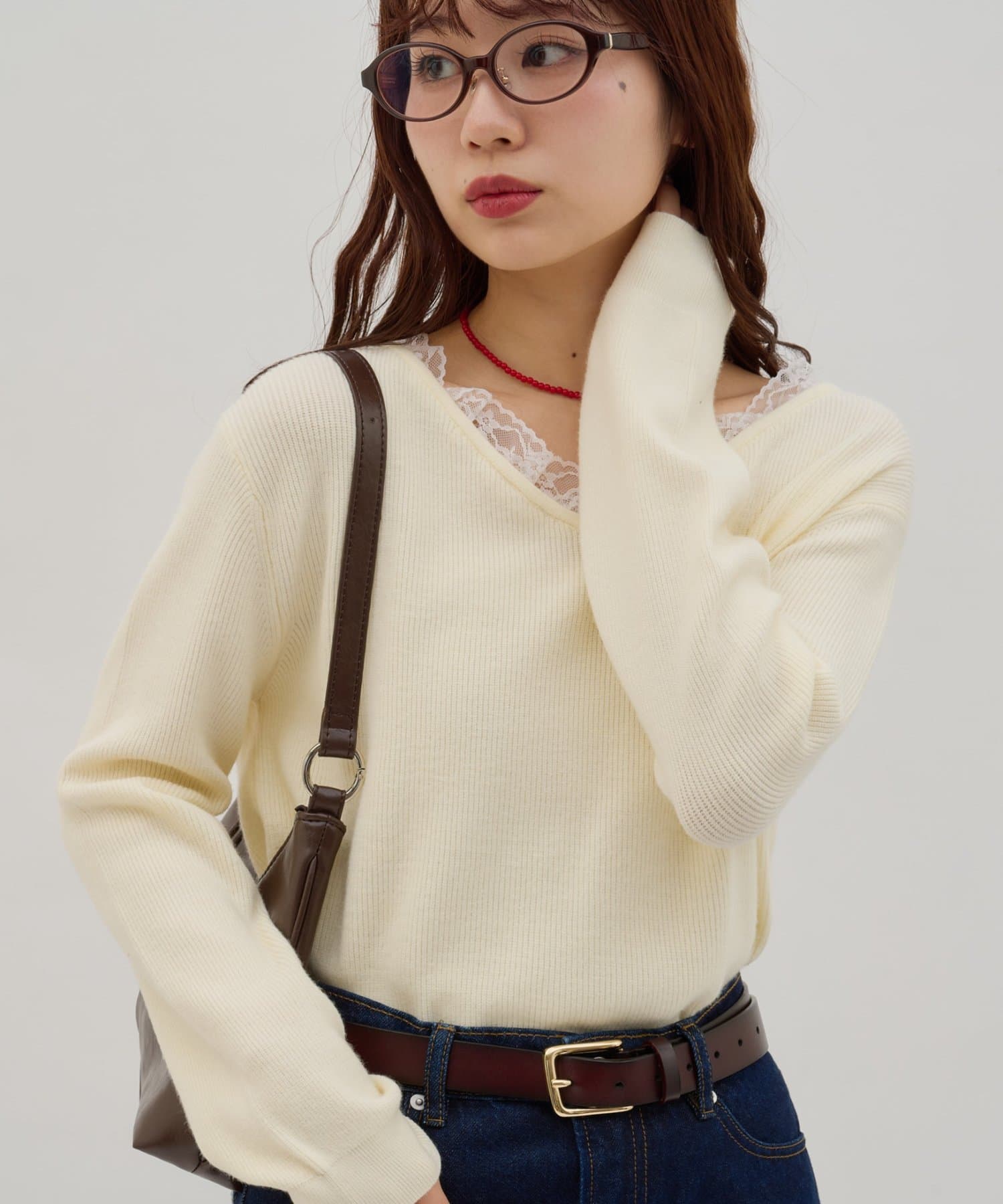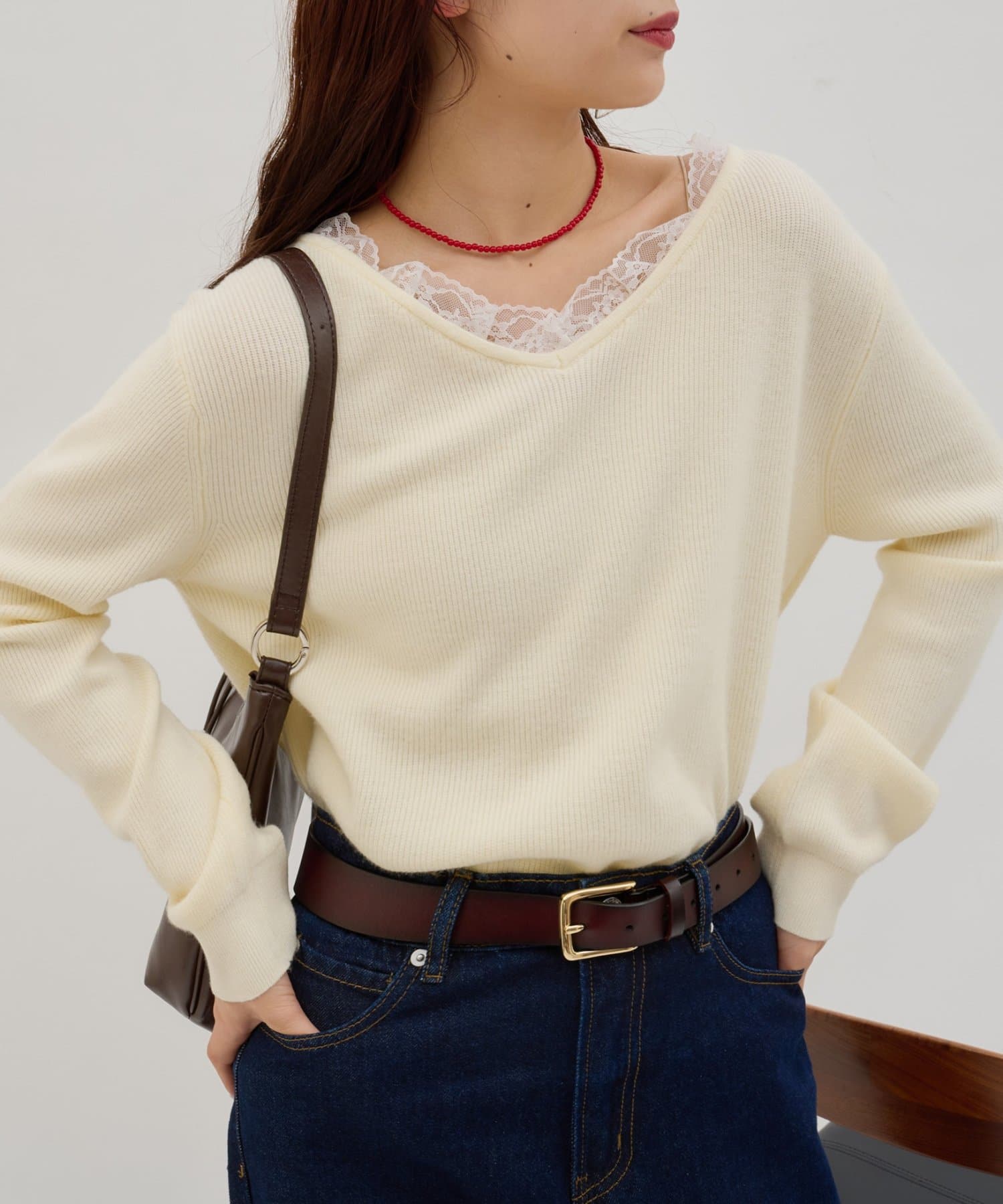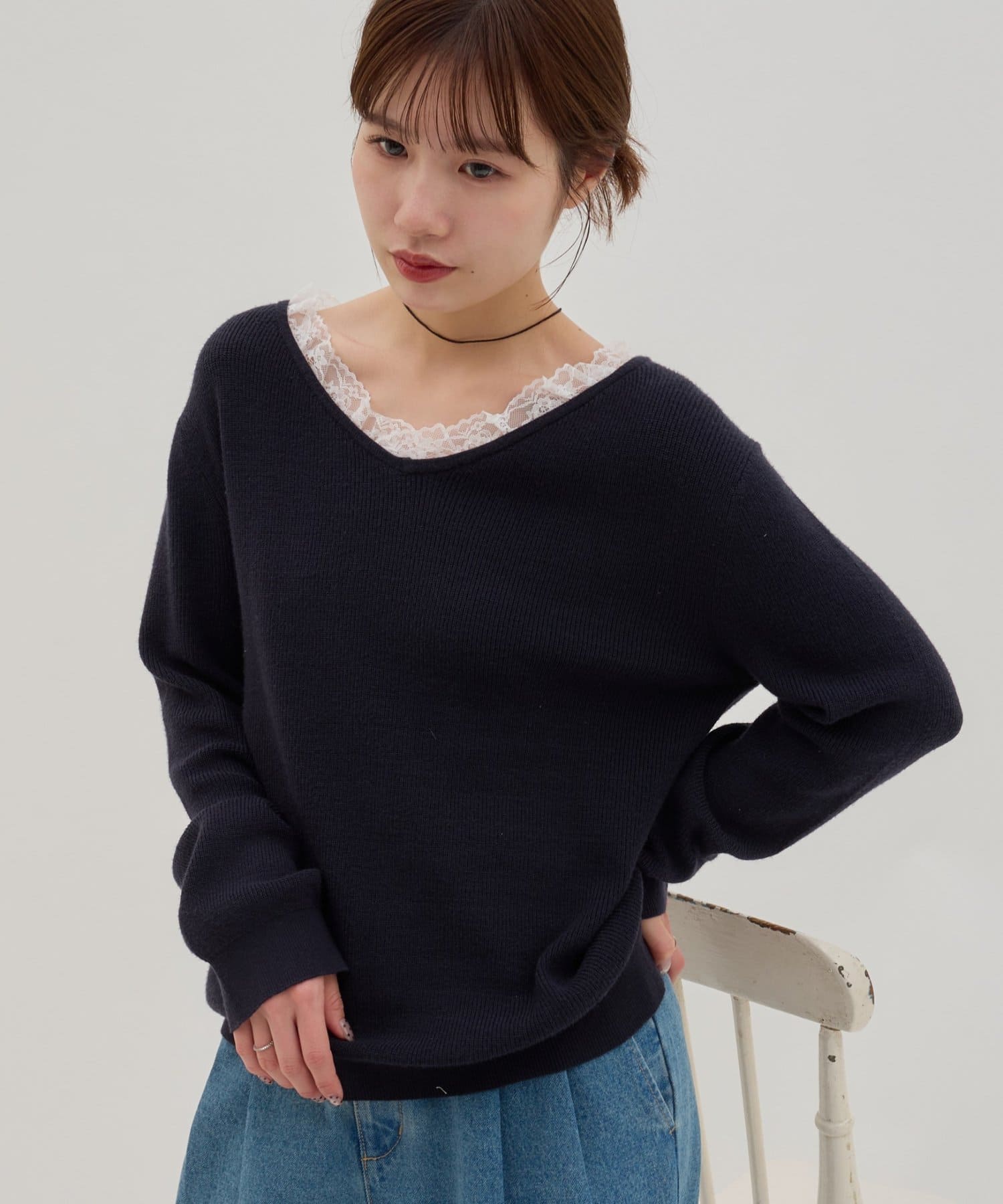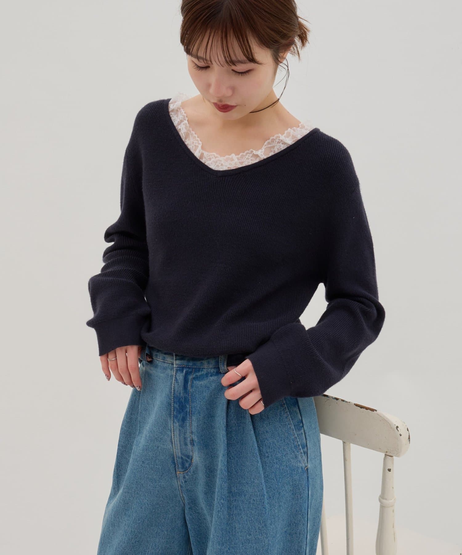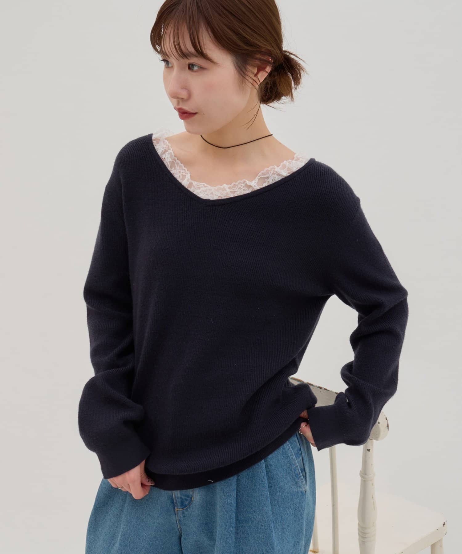 TOP > DISCOAT > レディース > トップス > ニット/セーター > 【umm.】レースドッキングプルオーバー
