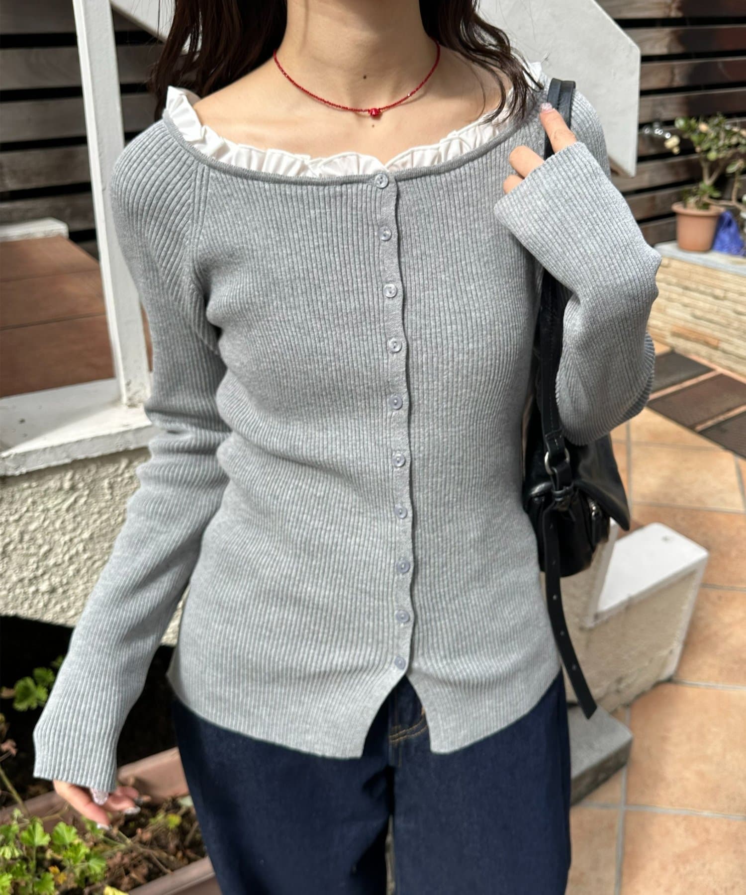 【umm.】衿フリルカーディガン