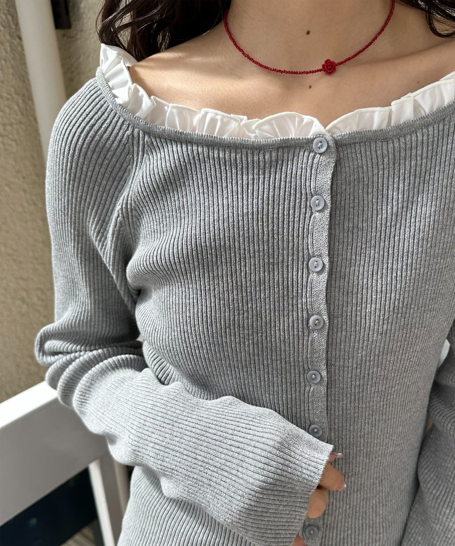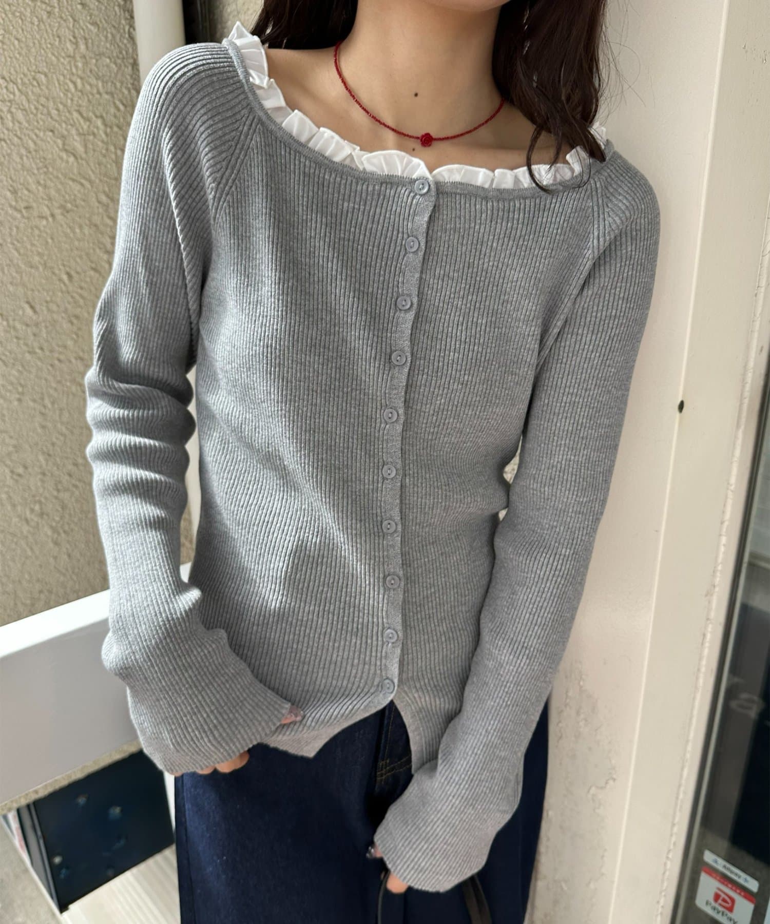 TOP > DISCOAT > レディース > トップス > ニット/セーター > 【umm.】衿フリルカーディガン