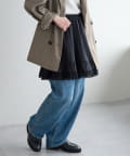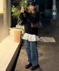 155cmスタッフ:ウエストが総ゴムなので、ボトムスとレイヤードしたときに幅広い厚みのアイテムと合わせてもノンストレスに!