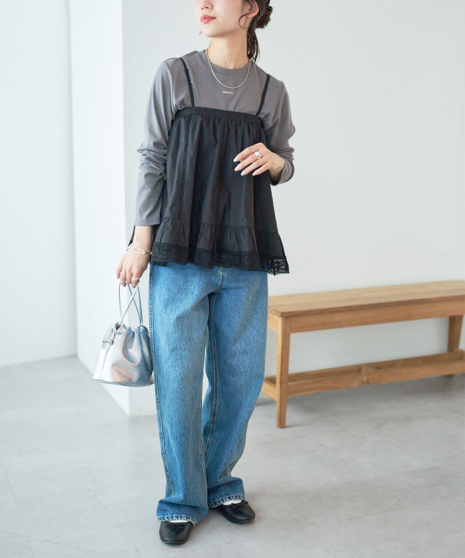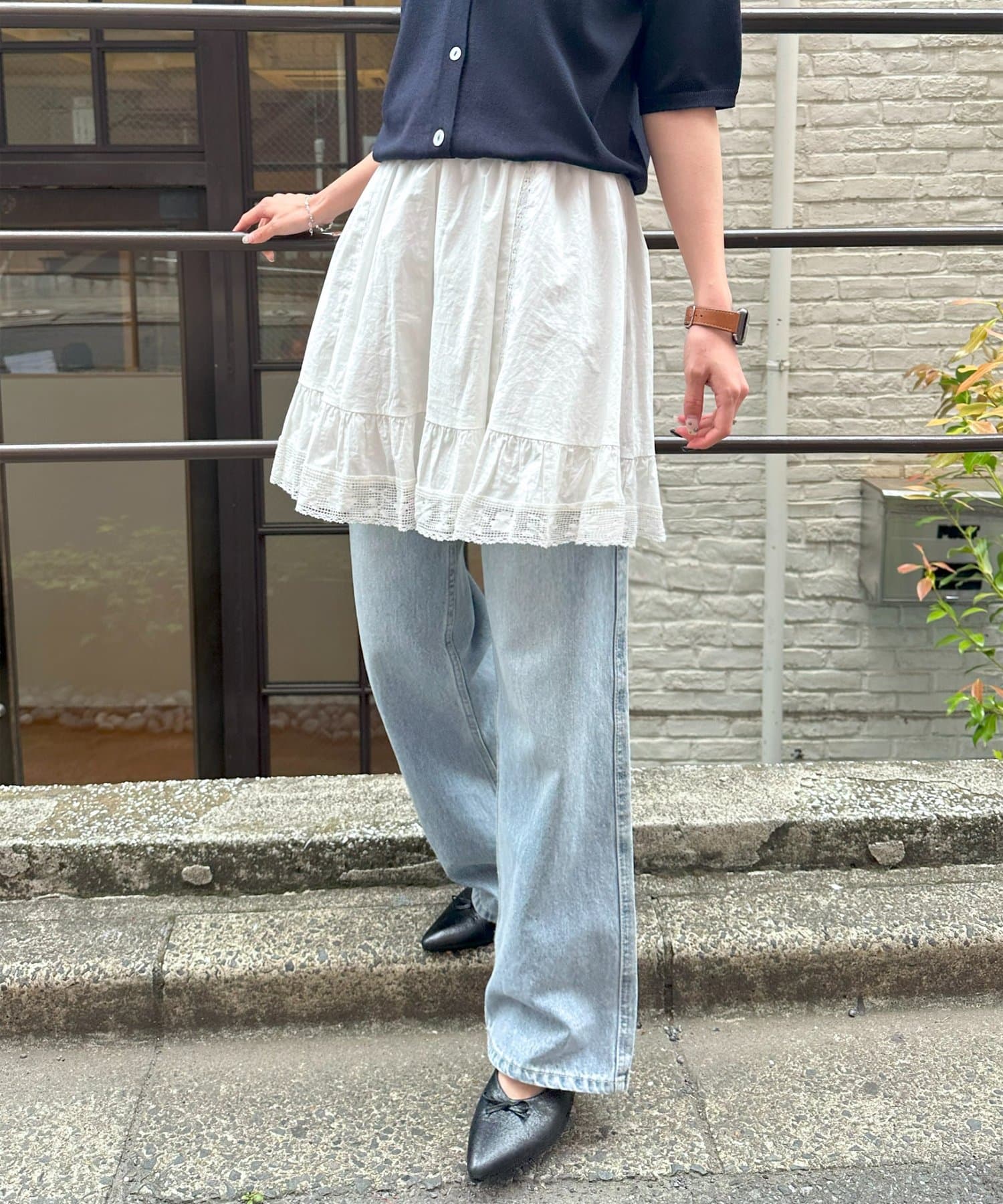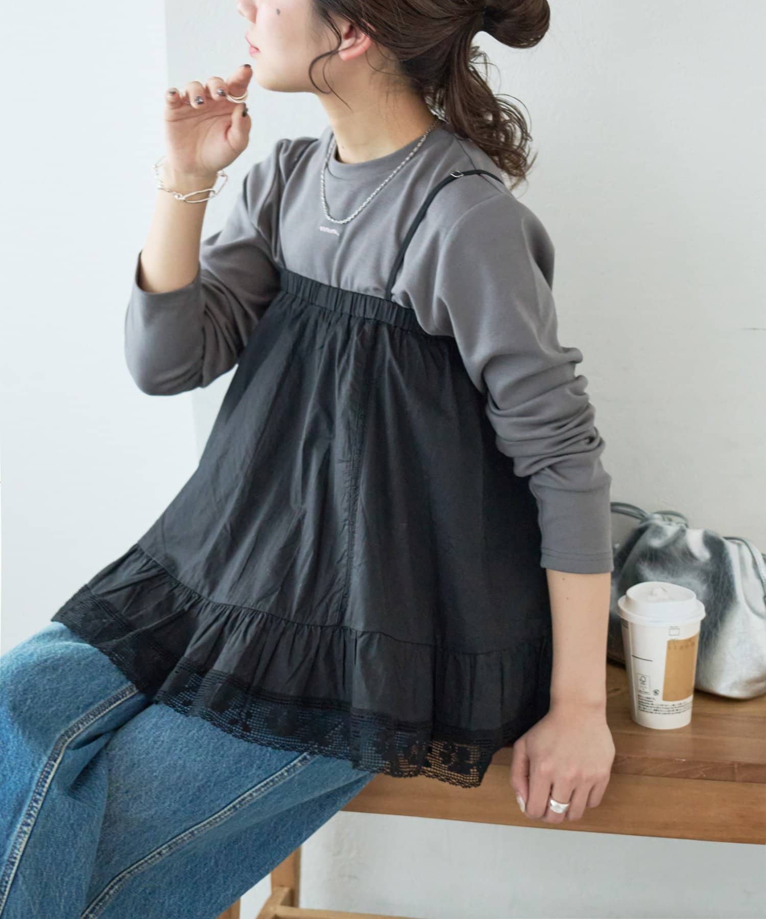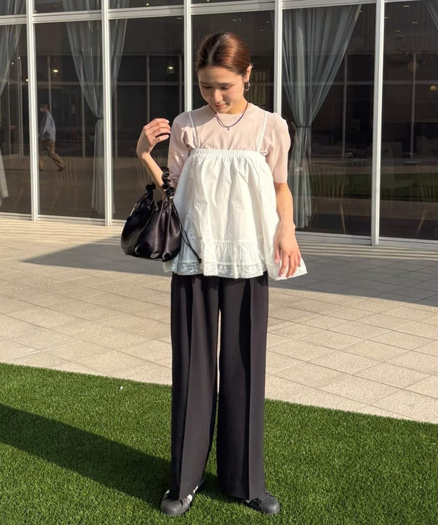 ②パンツと合わせたレイヤードコーデに