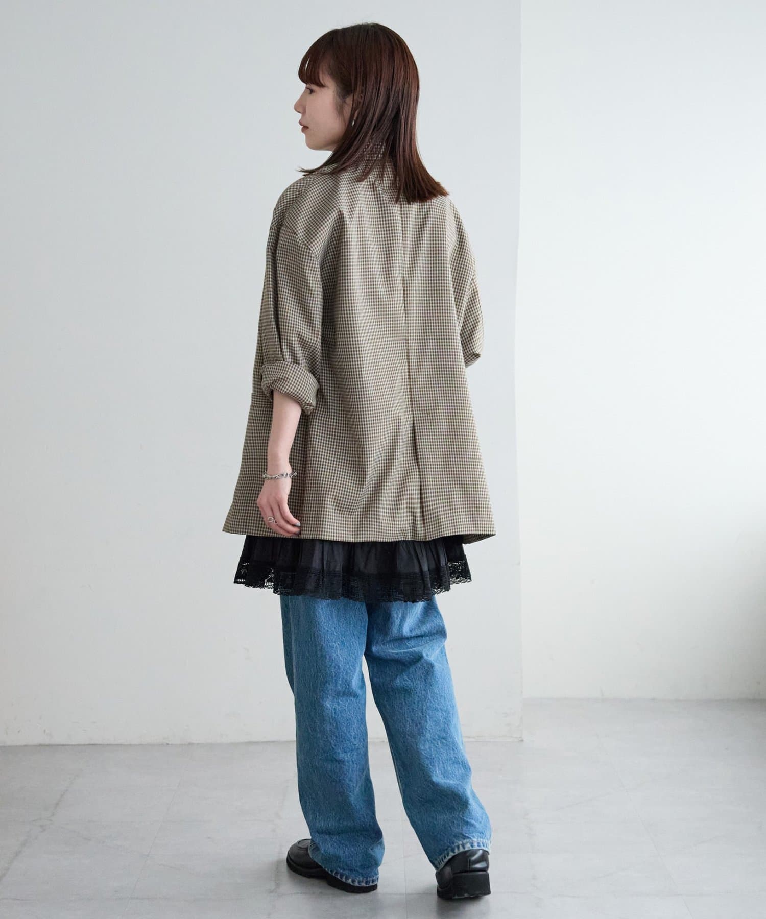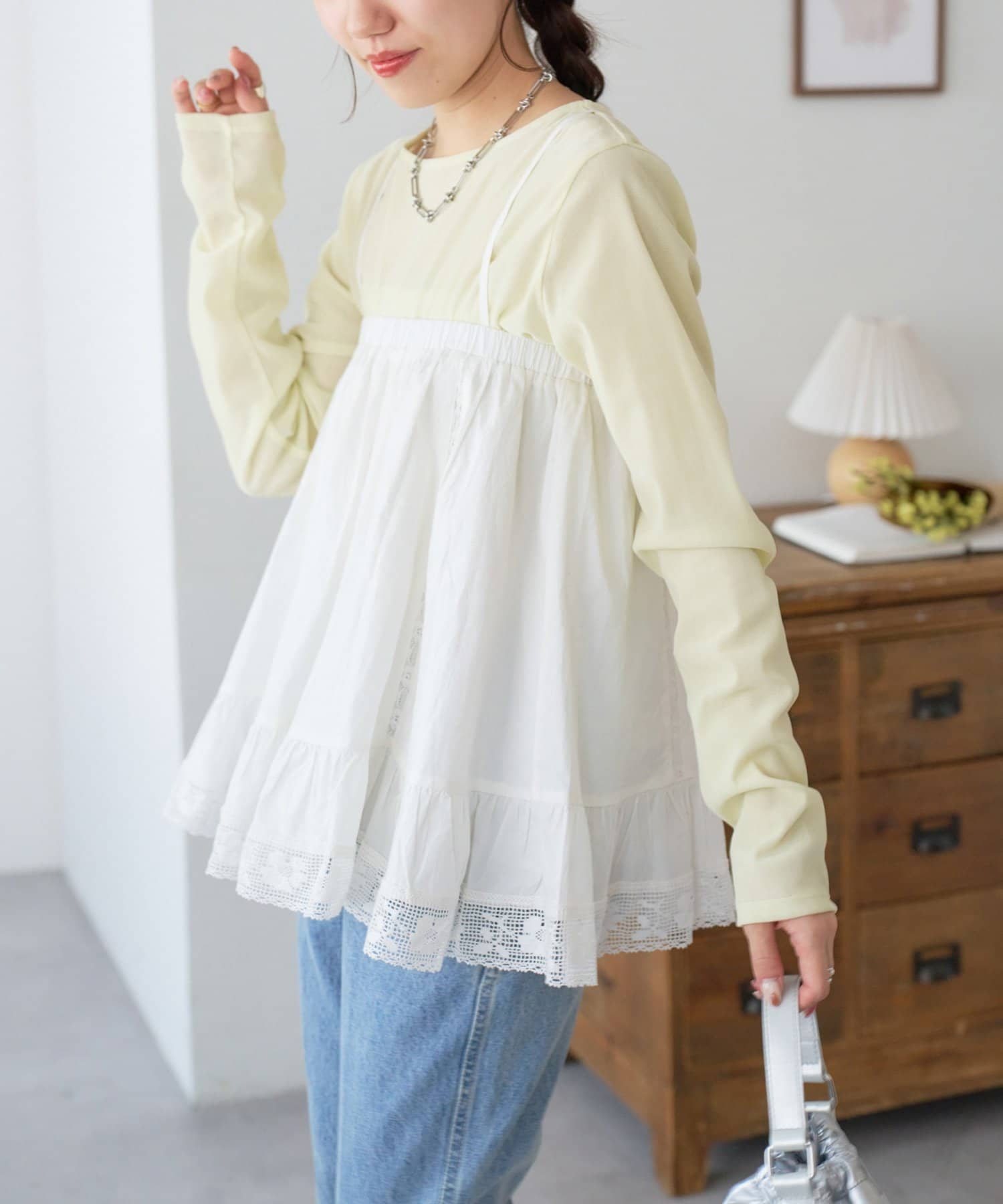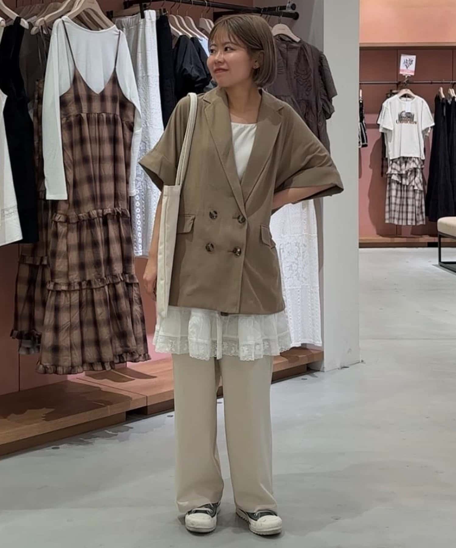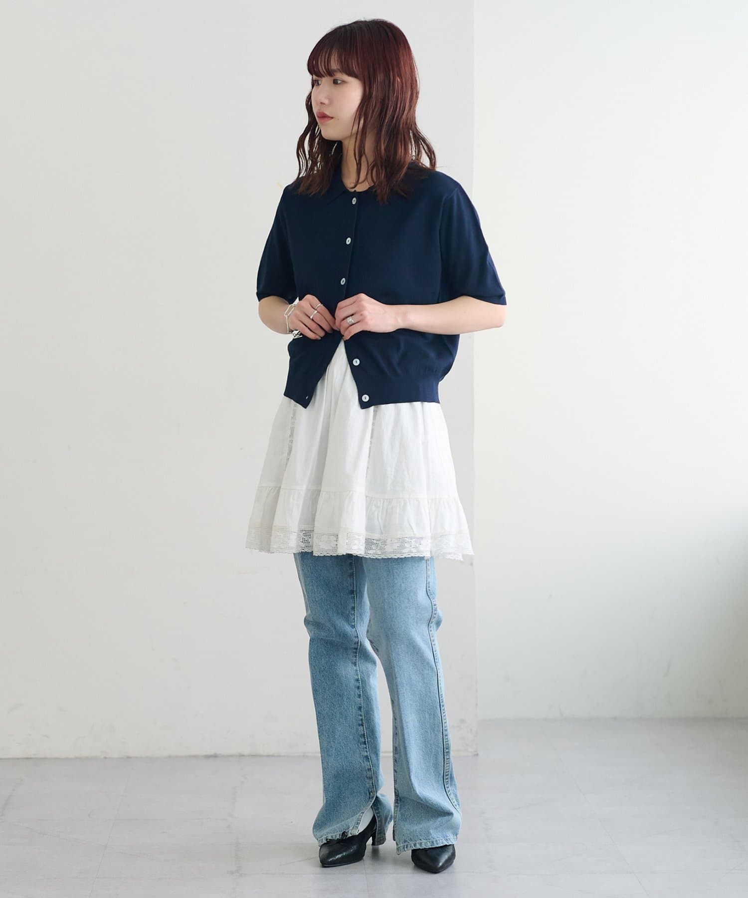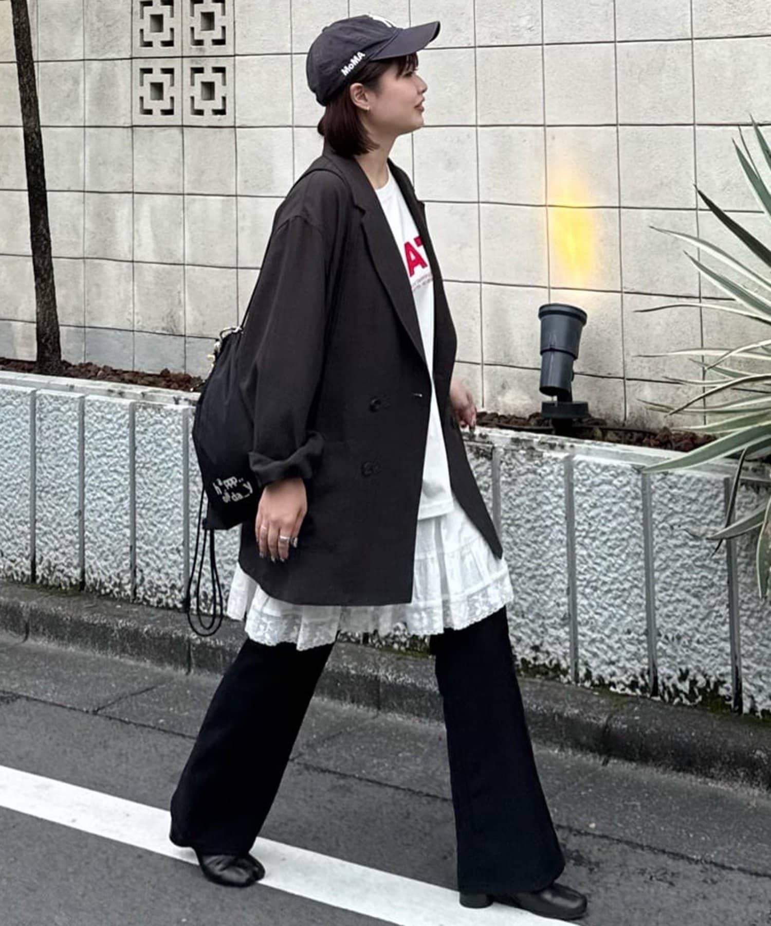 ②パンツと合わせたレイヤードコーデに