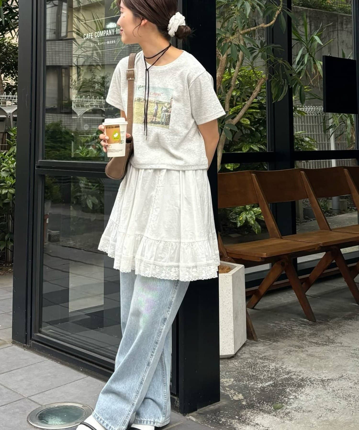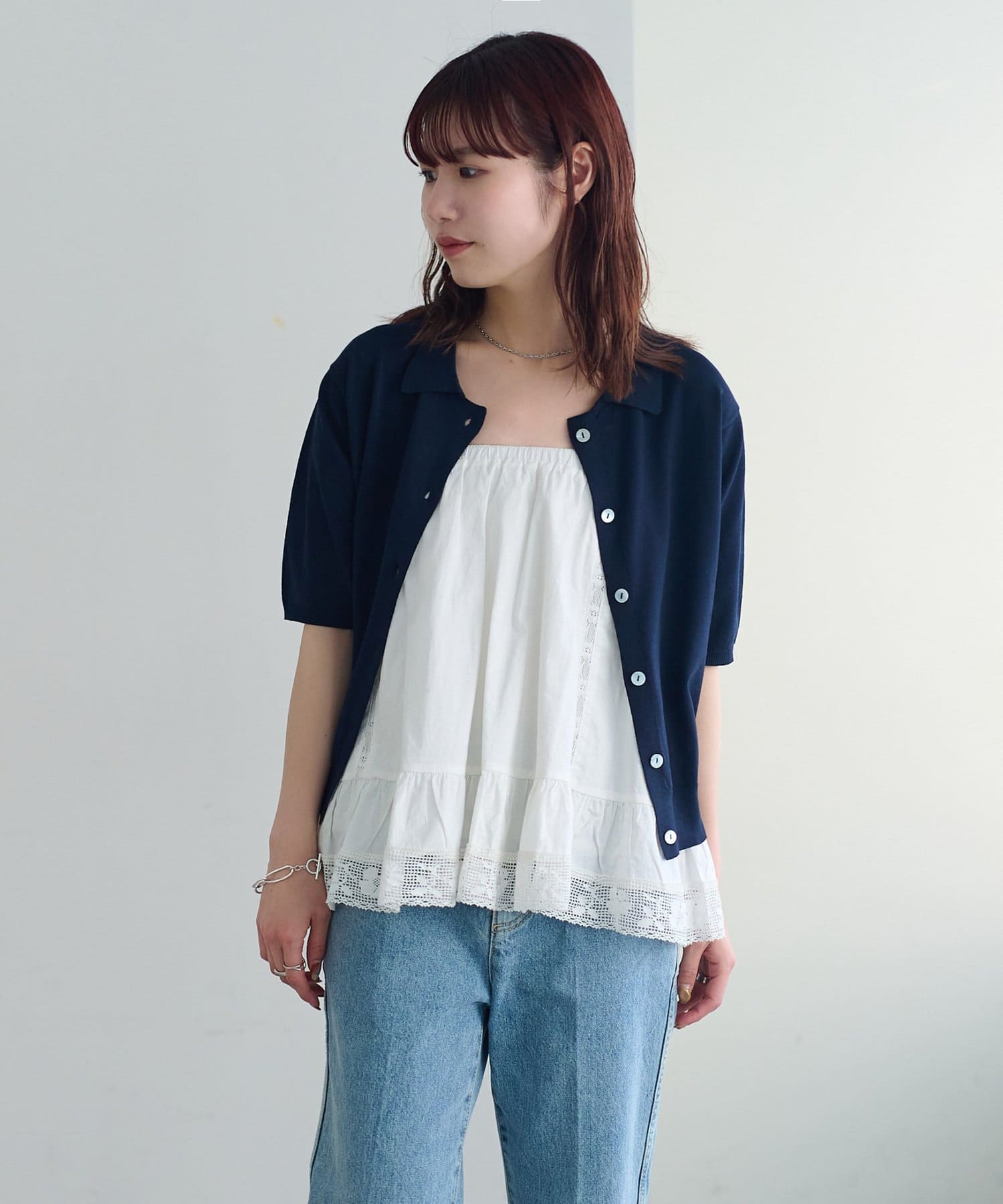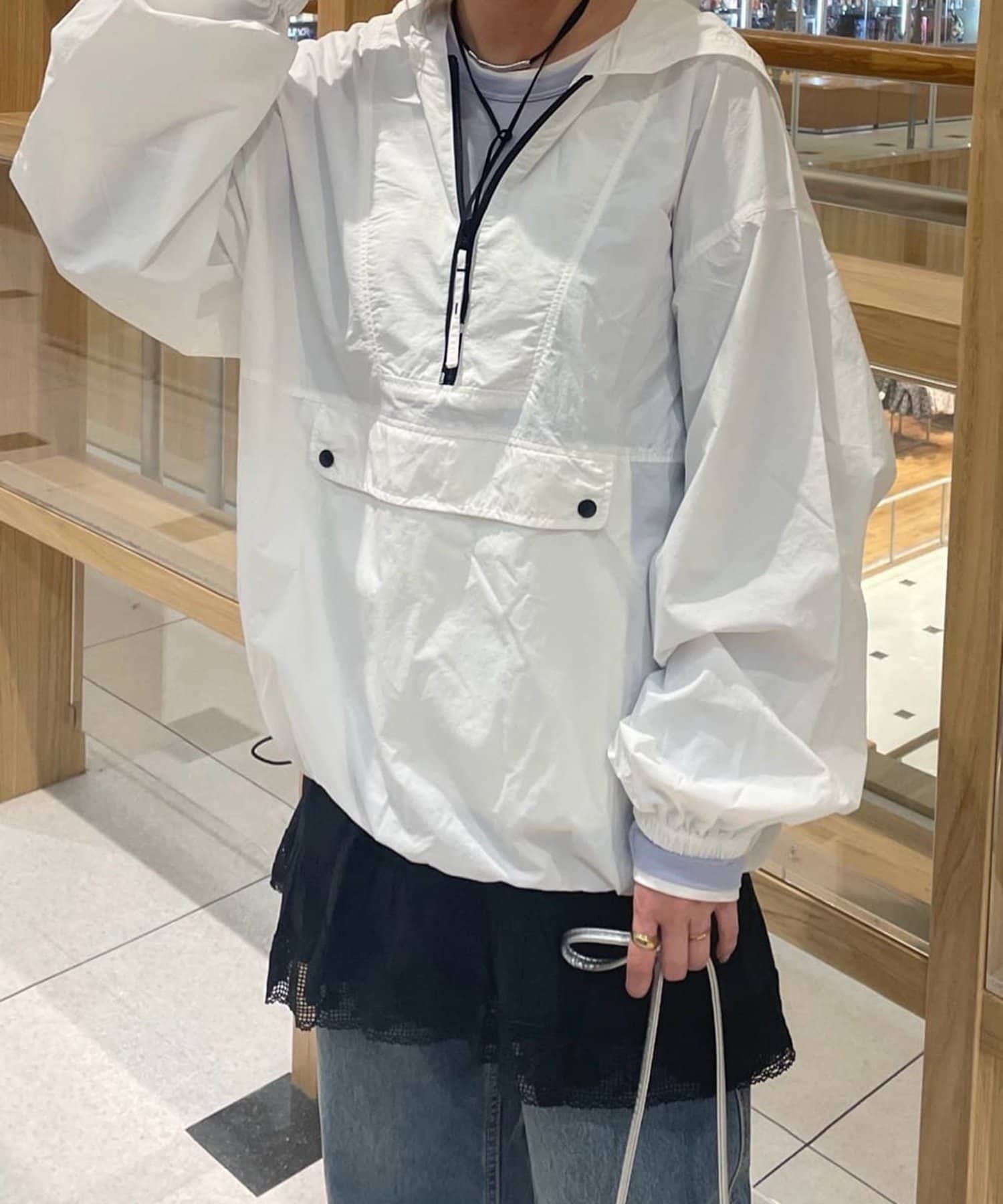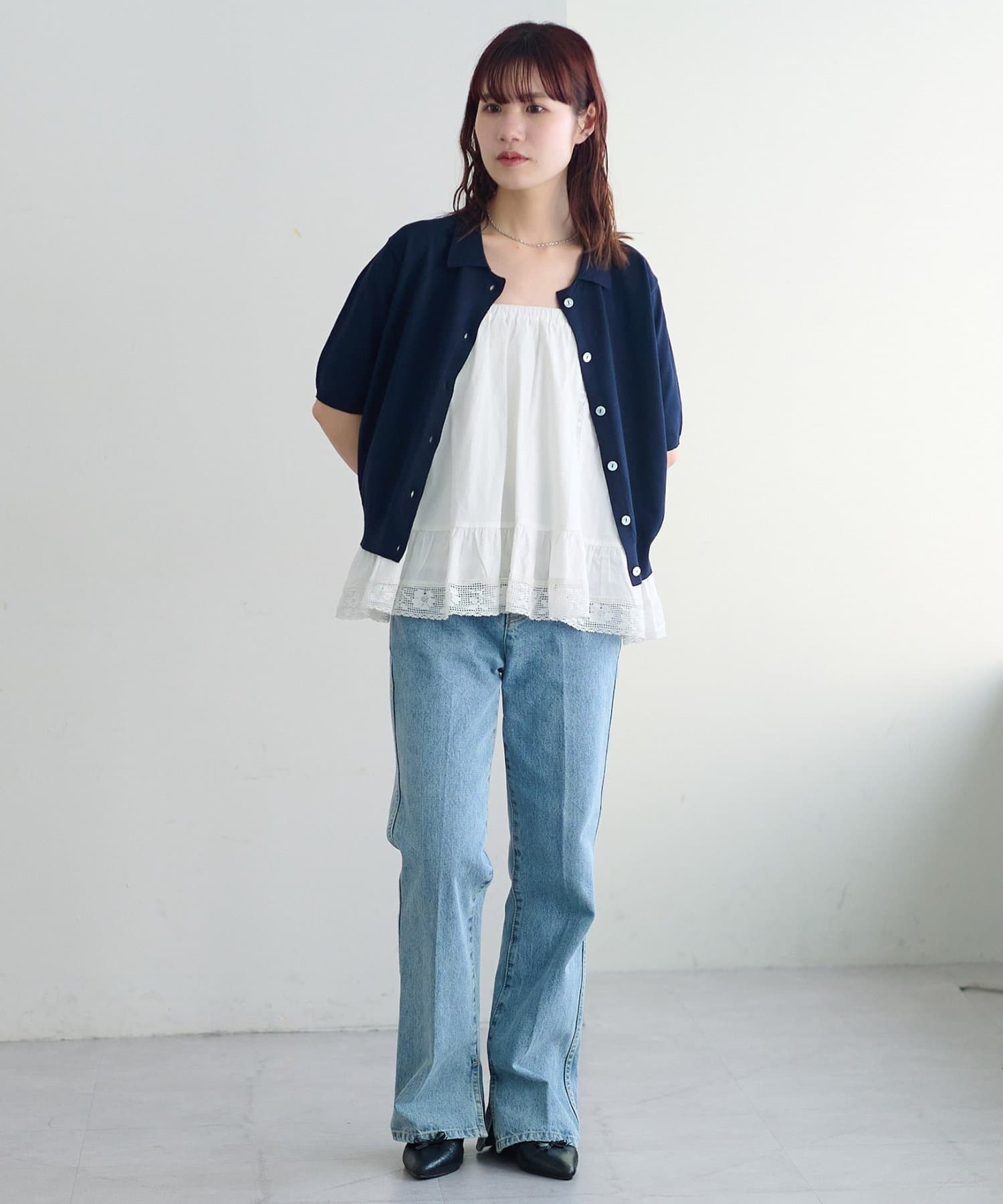 ②パンツと合わせたレイヤードコーデに