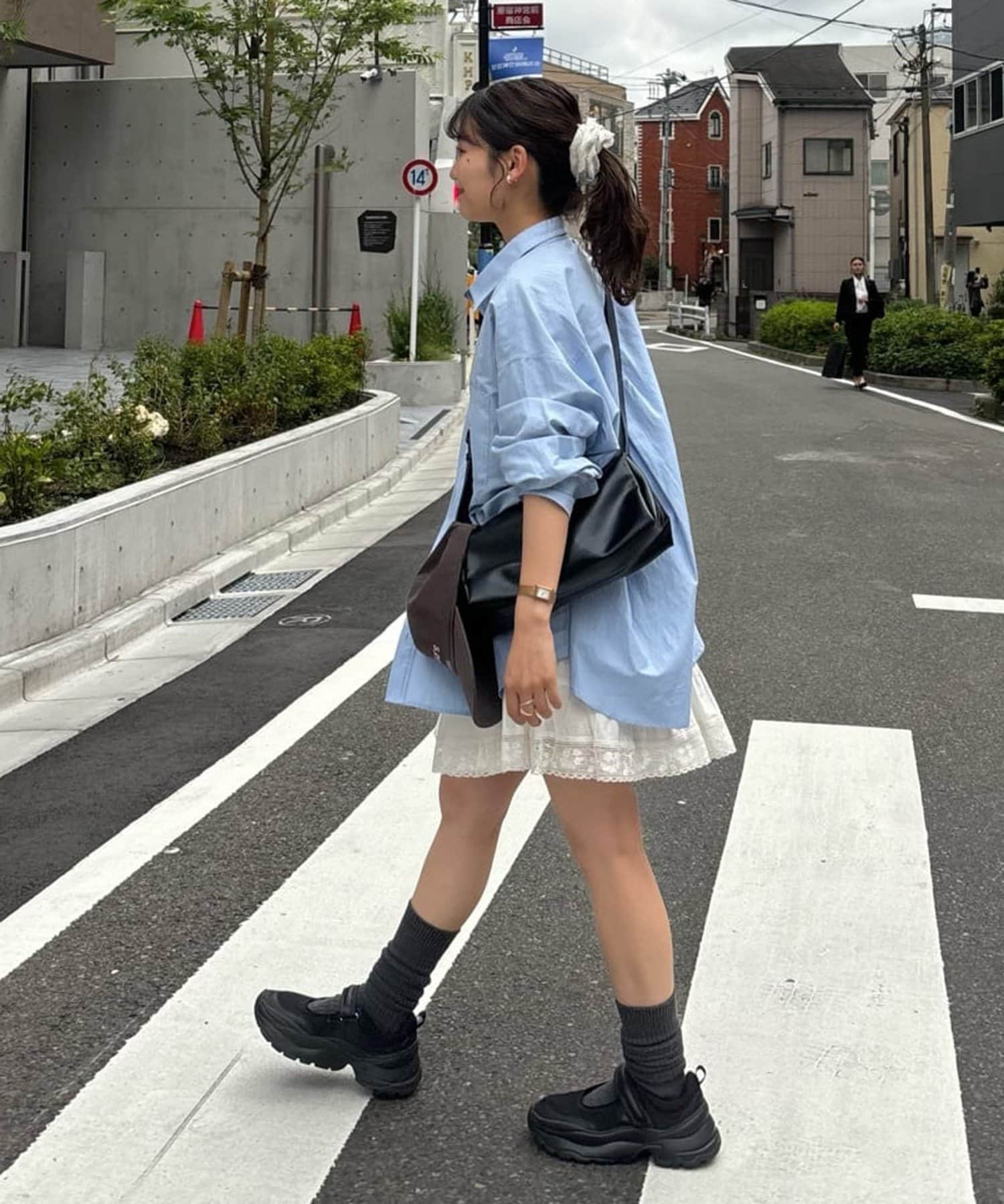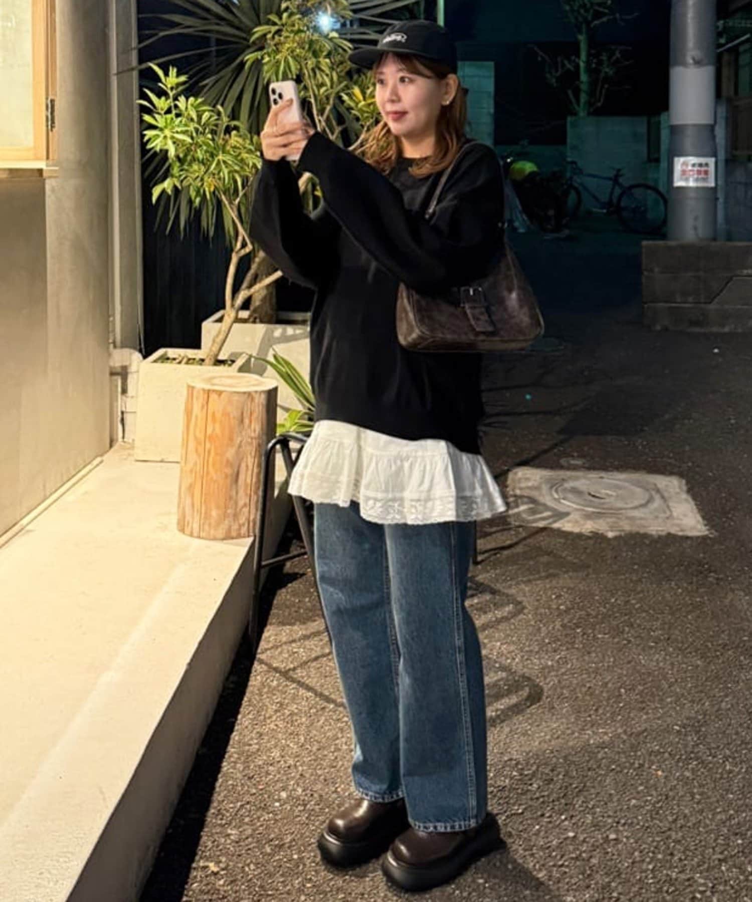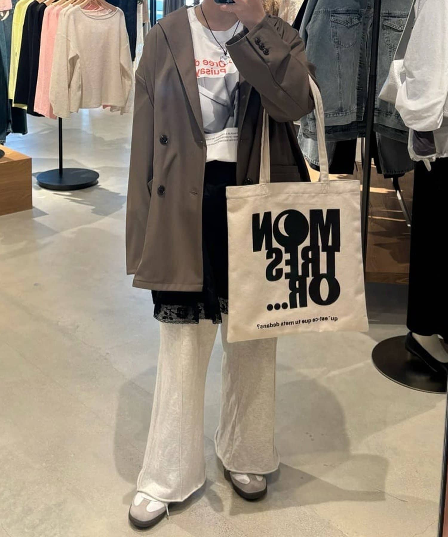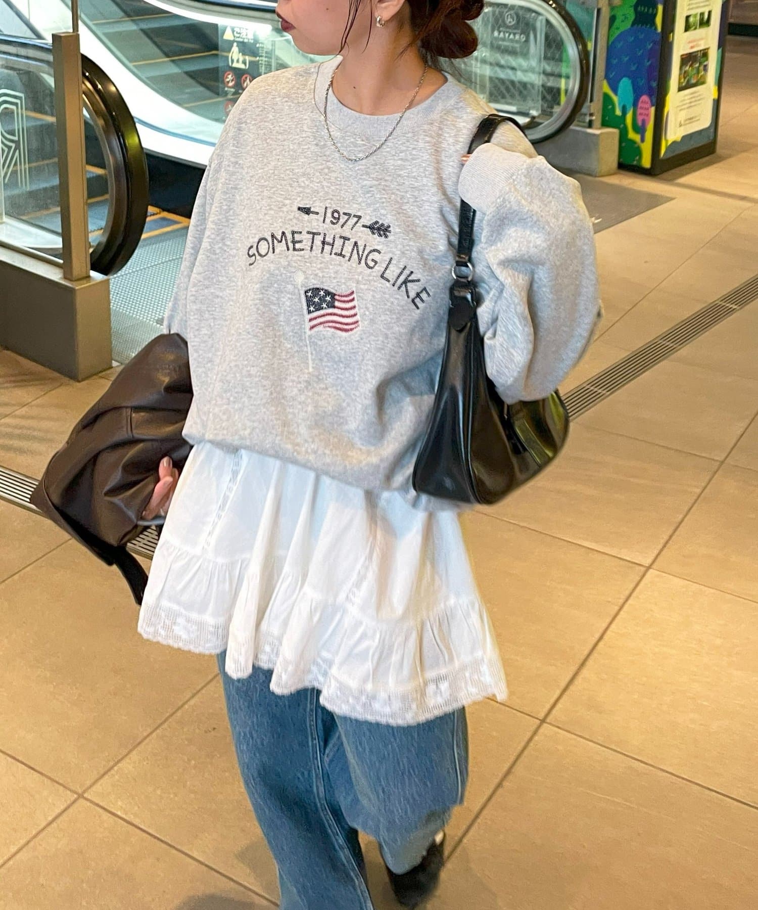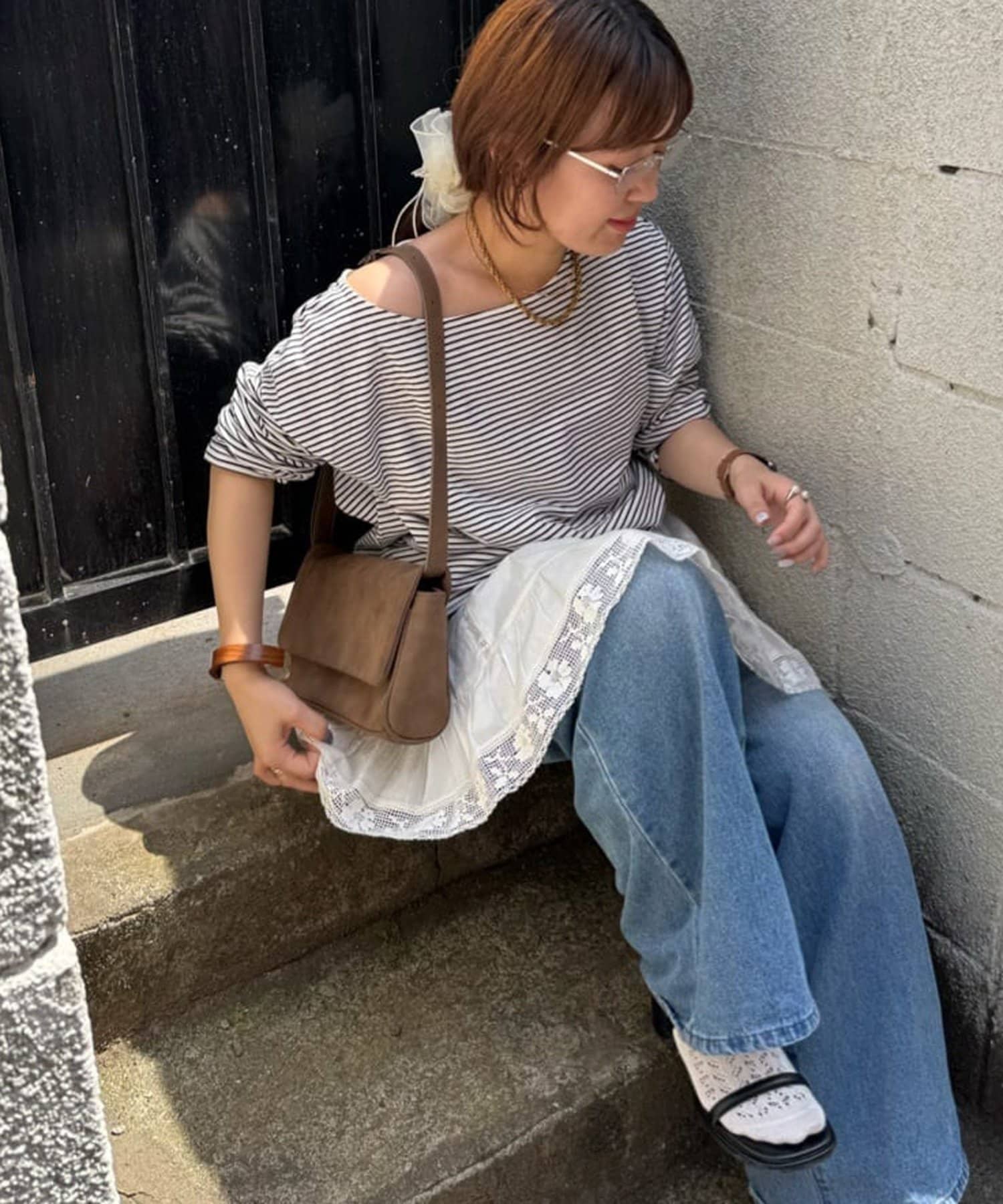 ②パンツと合わせたレイヤードコーデに