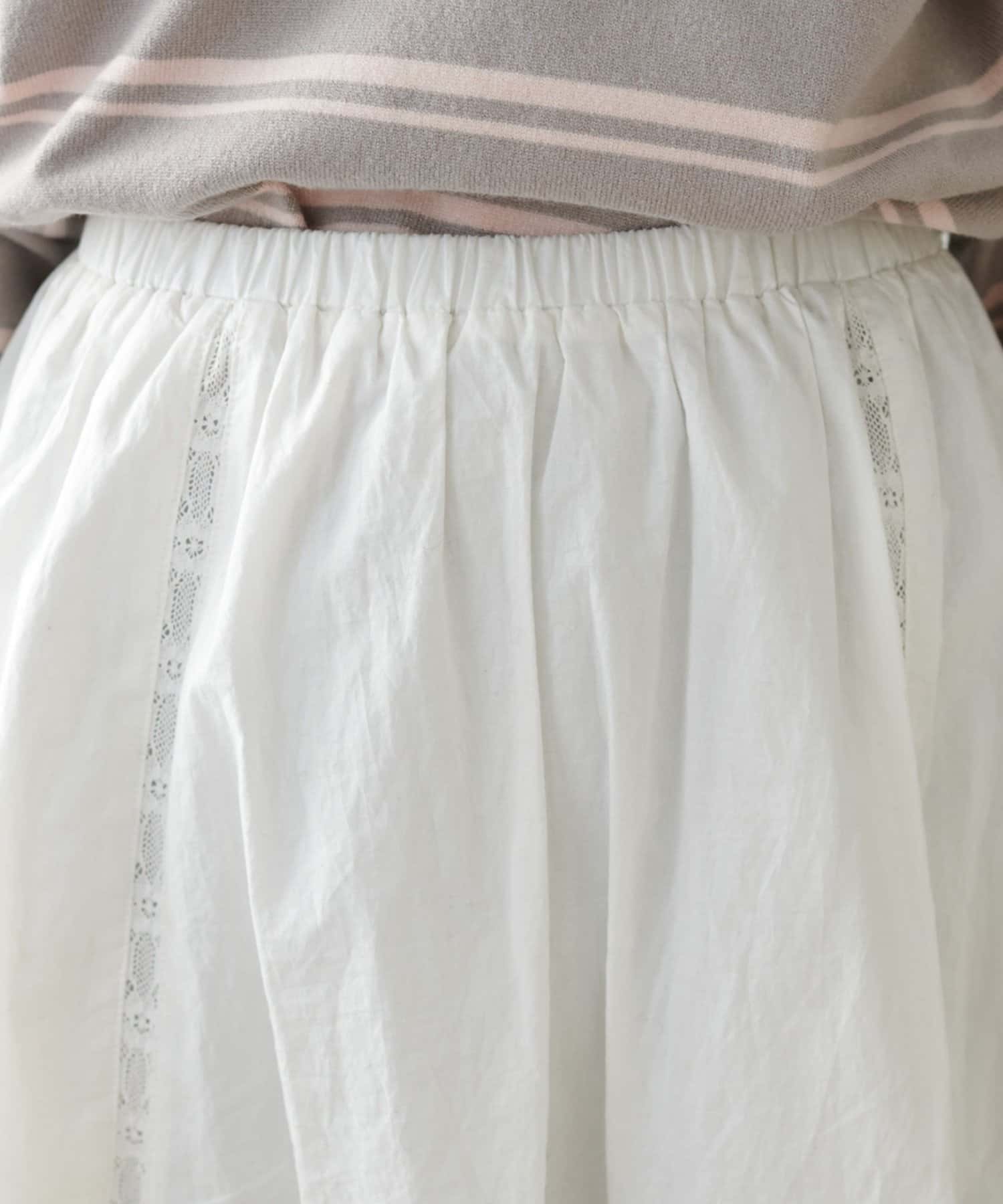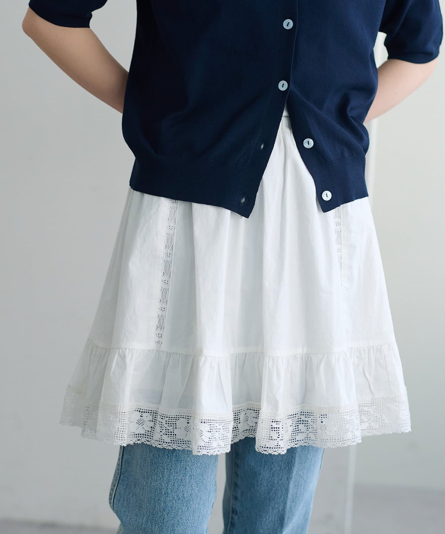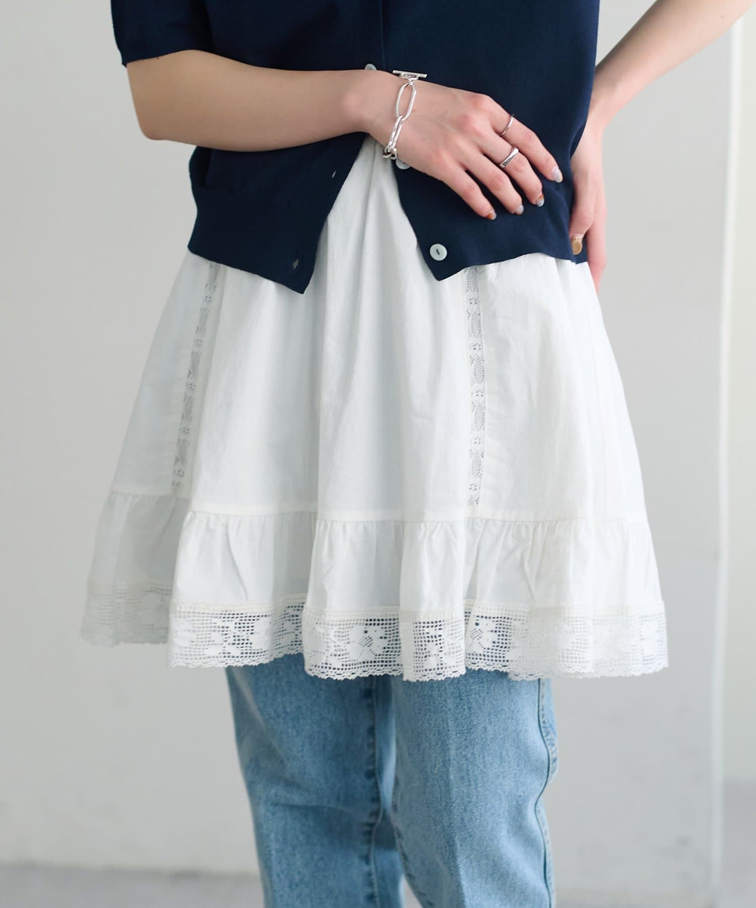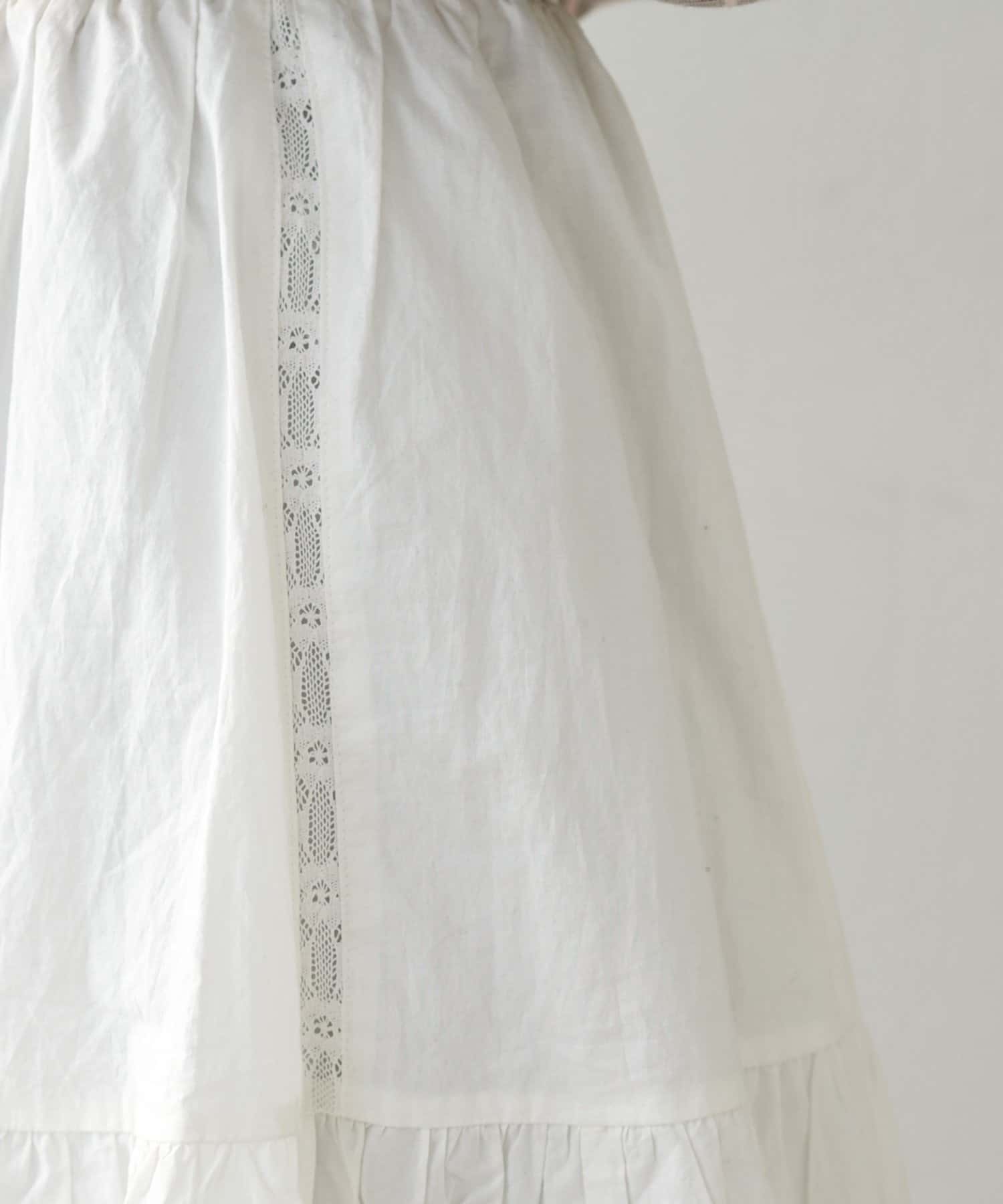 ふわりと広がるフレアなシルエットと、裾の繊細なレースのデザインが華やかさをプラス〇