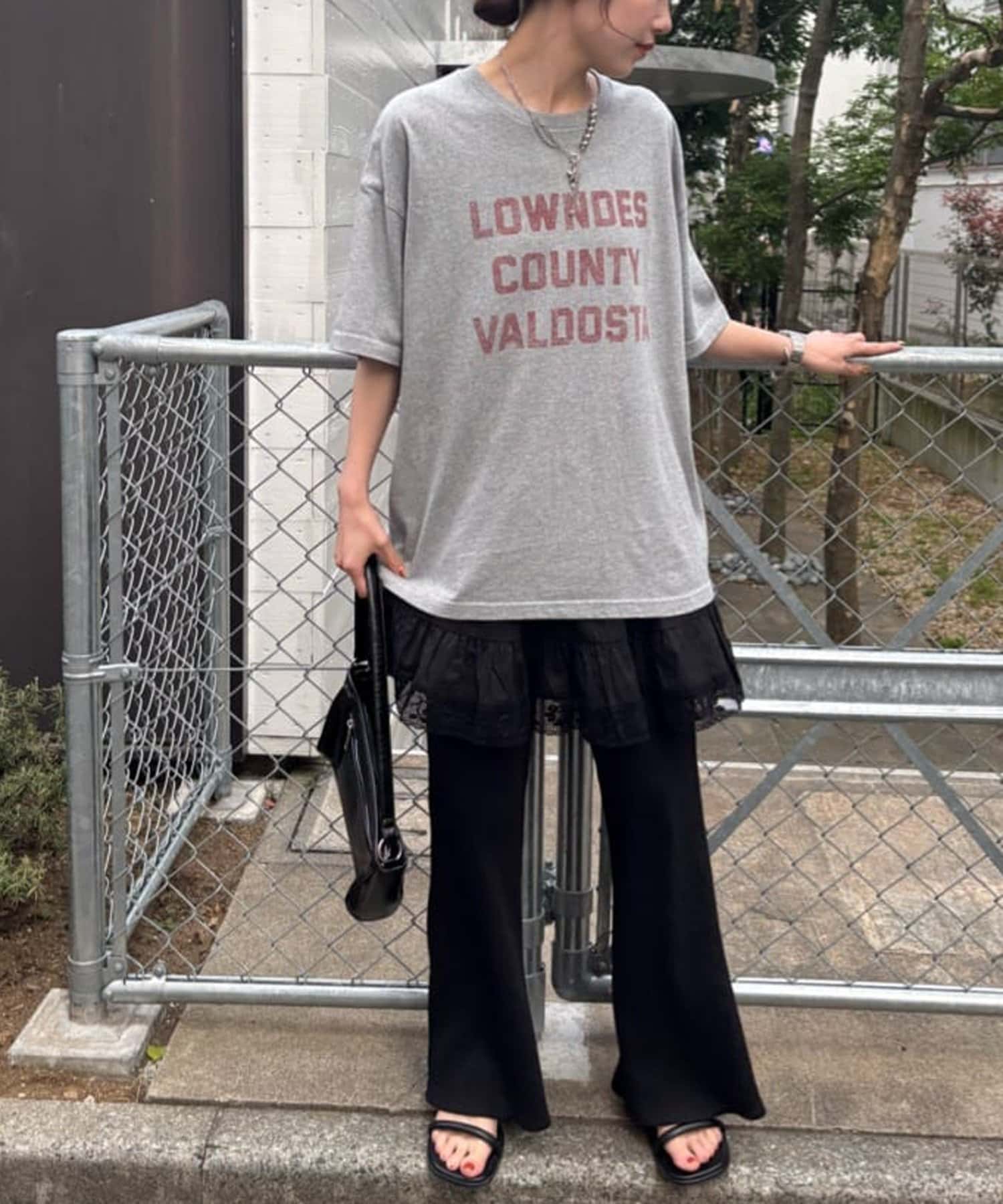 ニットやスウェット、薄手のカーディガン、Tシャツなどシーズン問わず幅広いアイテムと合わせることができるので、ロングシーズン活躍します〇