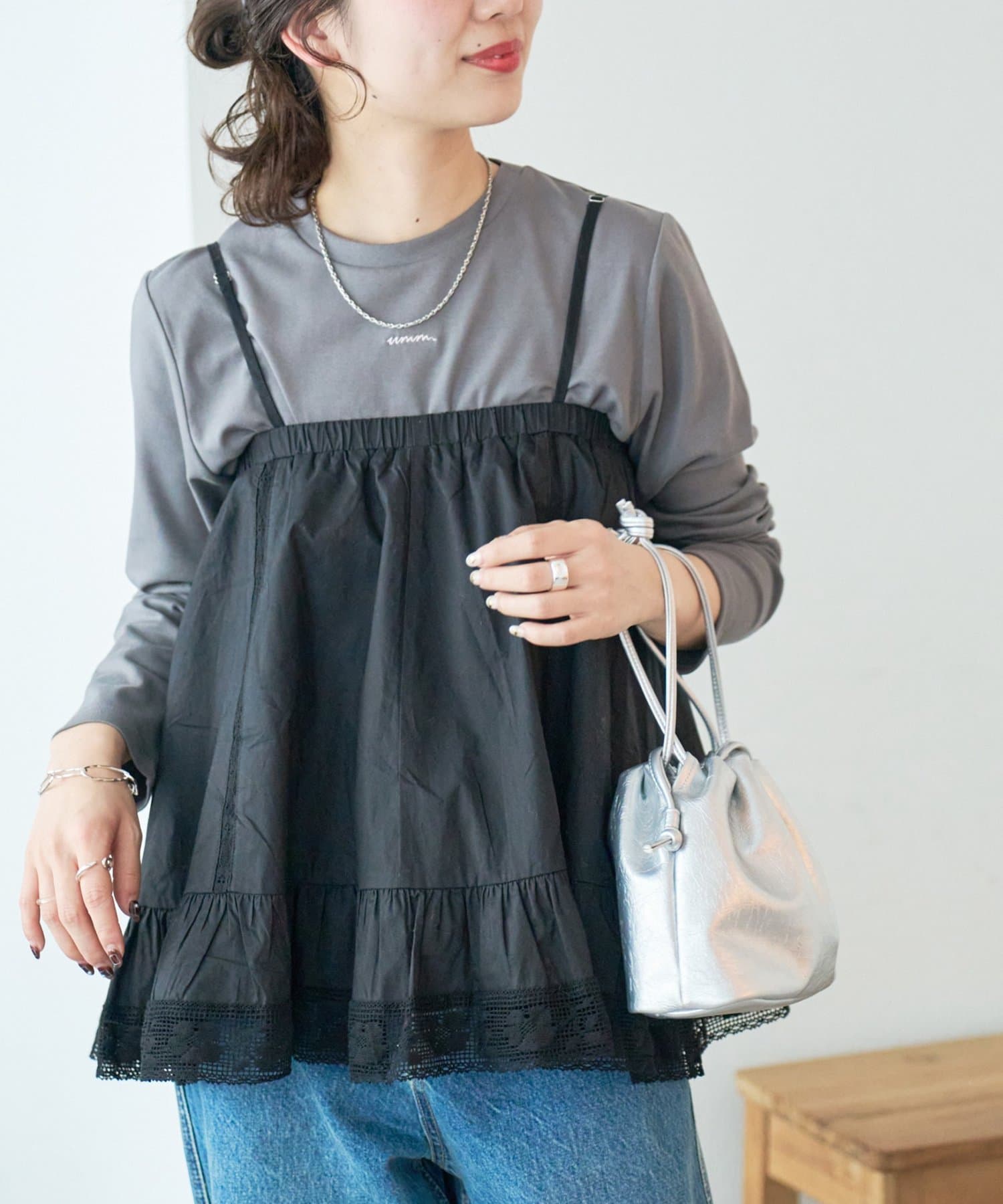 スカートだけではなく、ビスチェとしても着回しができるので同じアイテムと合わせても違い見え方で楽しむことができます♪