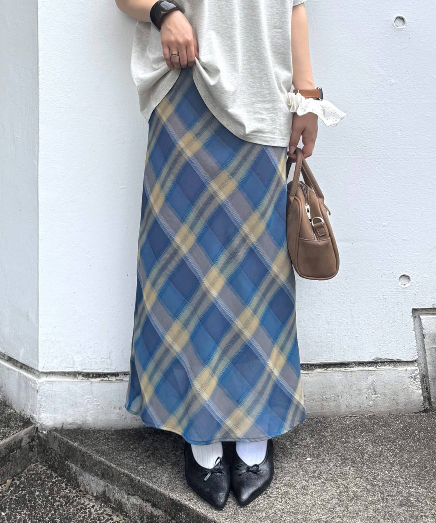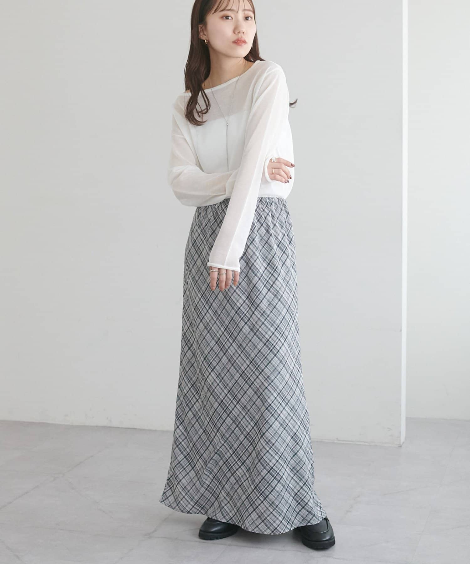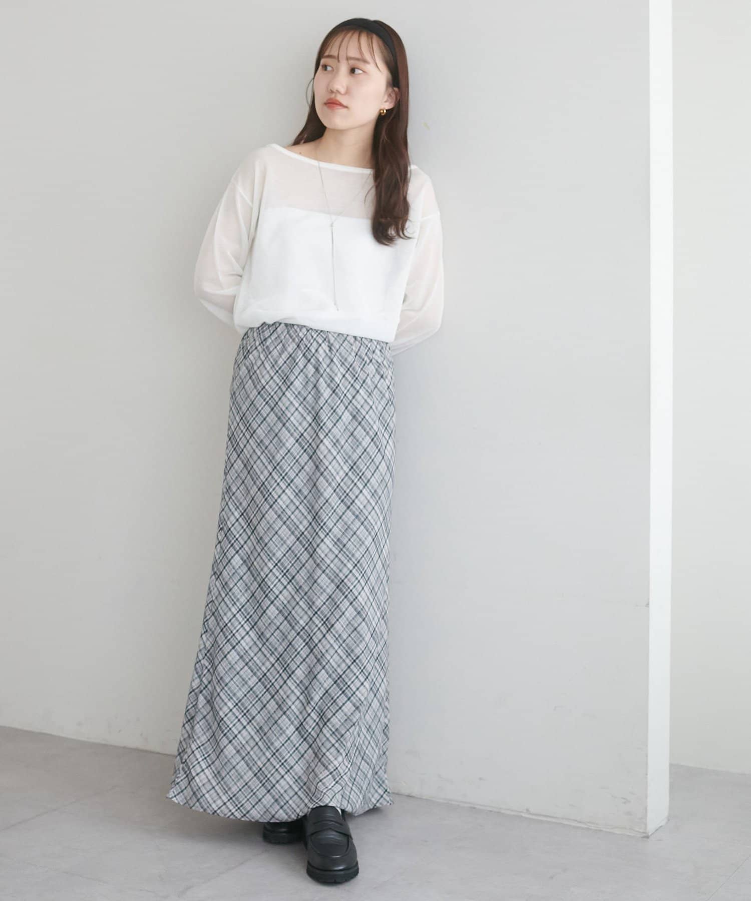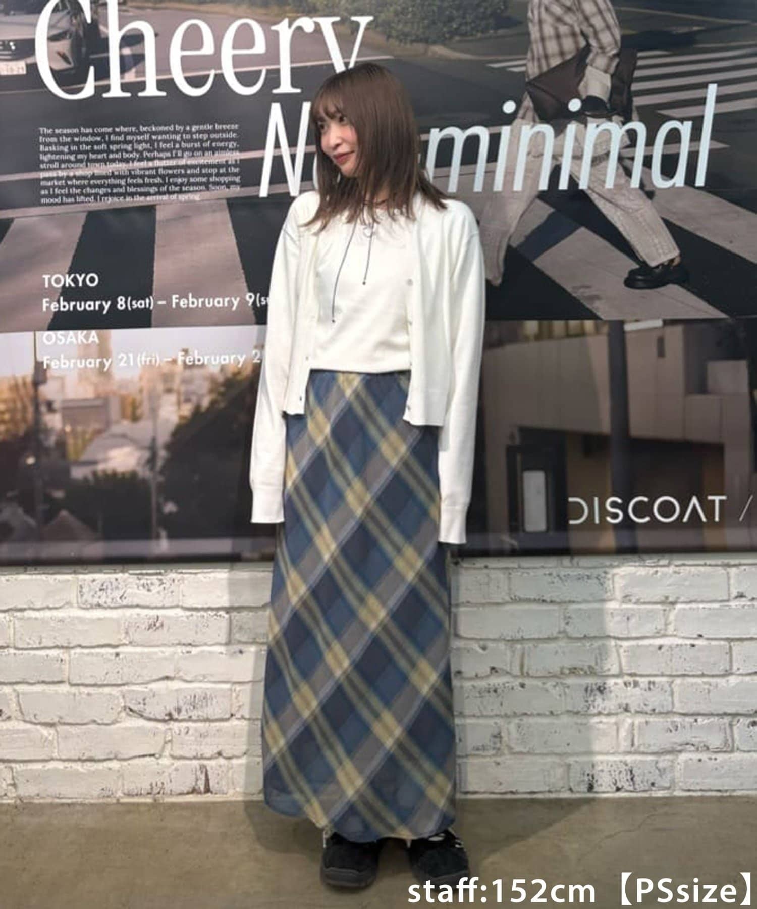 155cmスタッフ(Fサイズ):スタイルアップするスカートです!シアー感のあるチェック柄は、春夏にぴったり◎シンプルなTシャツと合わせてスカートをメインにしたコーデを楽しみたいです!