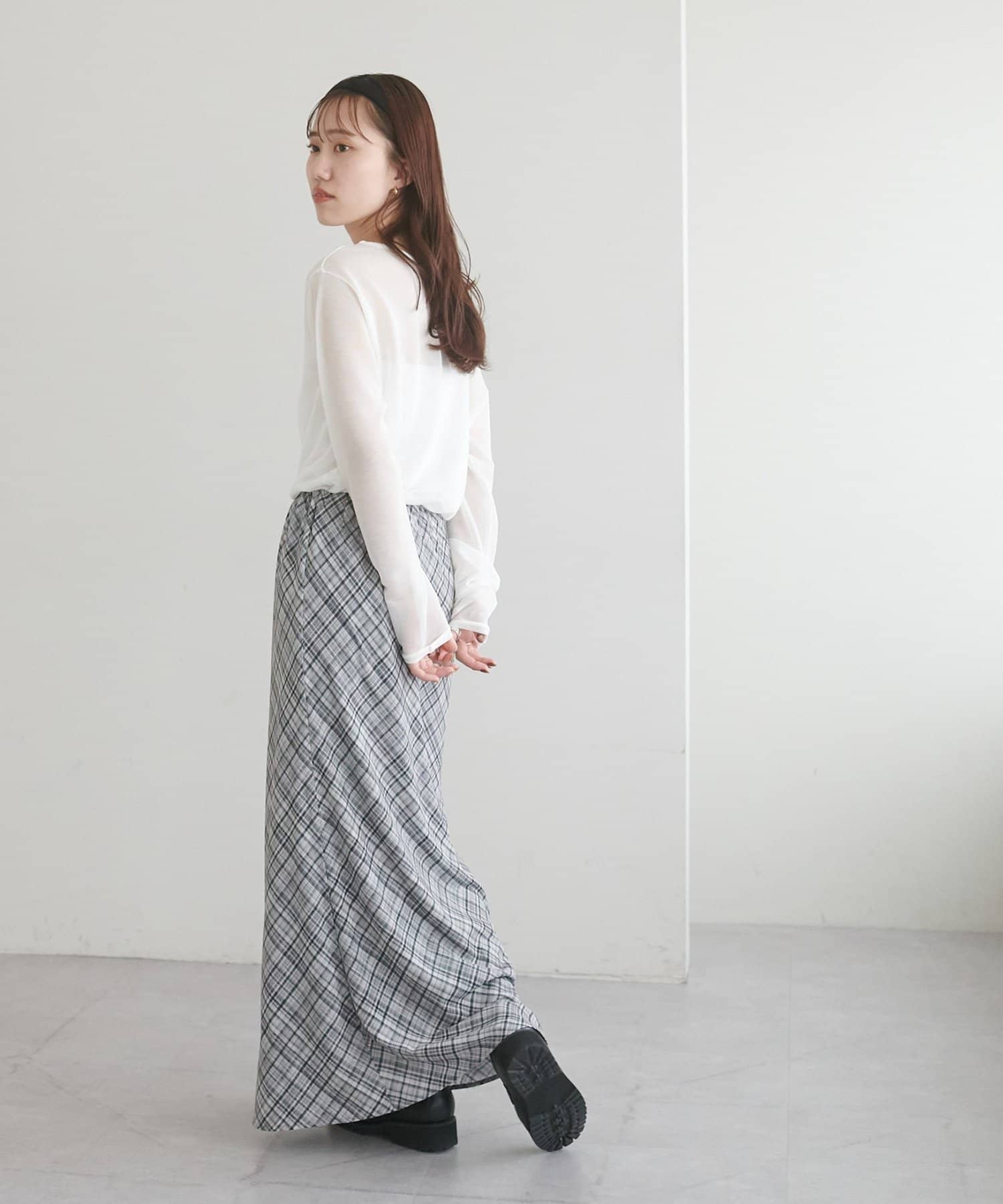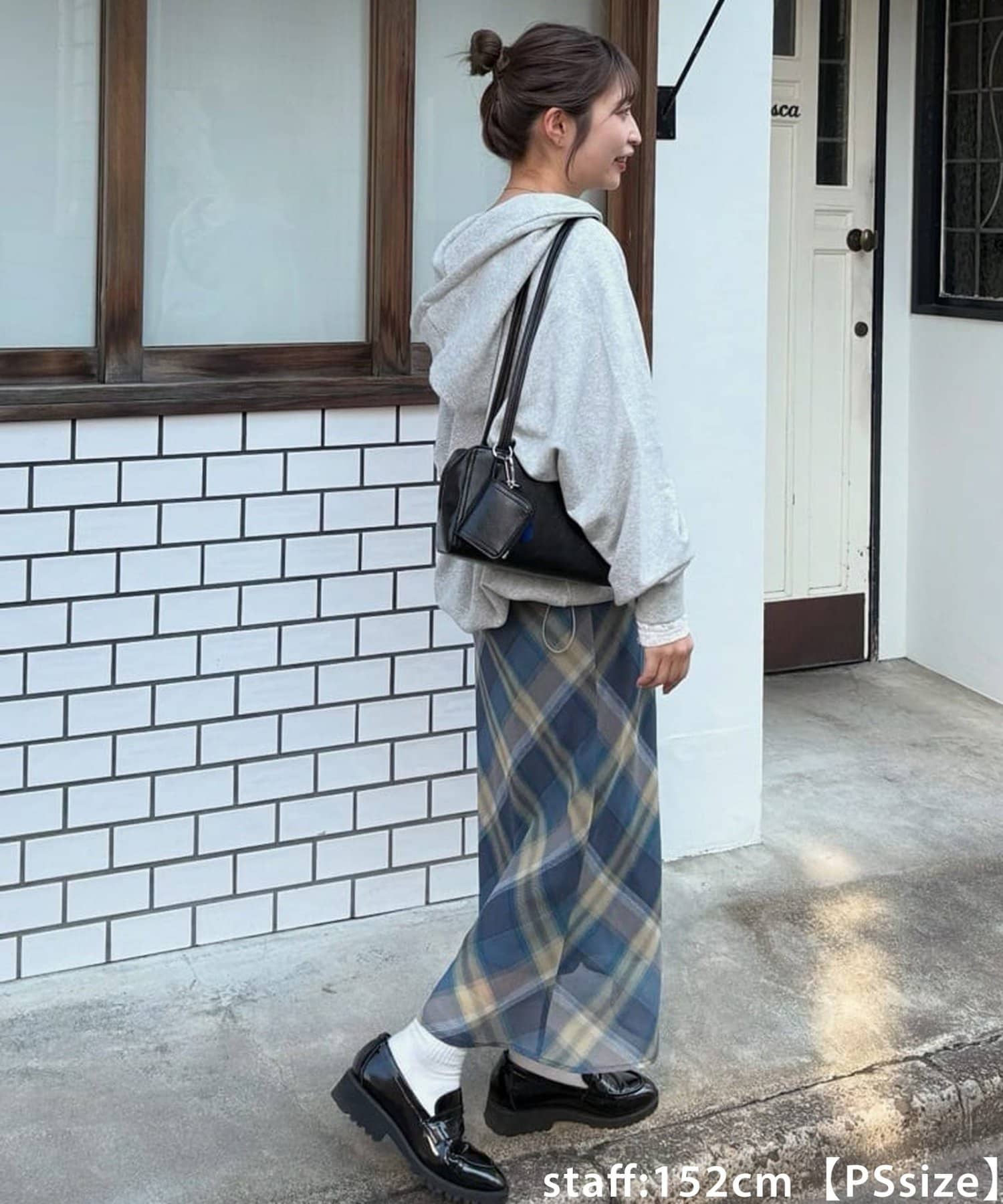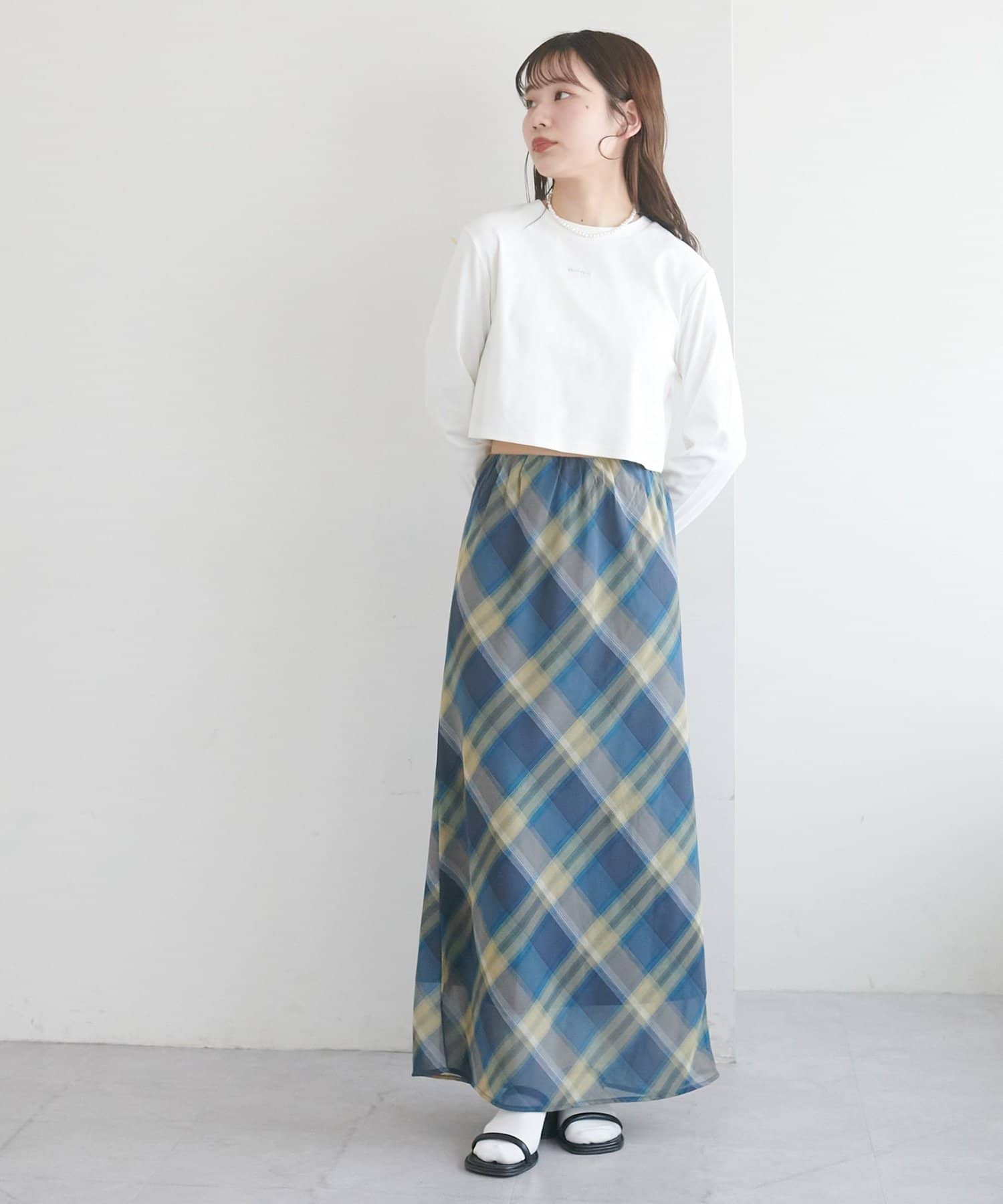 155cmスタッフ(Fサイズ):スタイルアップするスカートです!シアー感のあるチェック柄は、春夏にぴったり◎シンプルなTシャツと合わせてスカートをメインにしたコーデを楽しみたいです!
