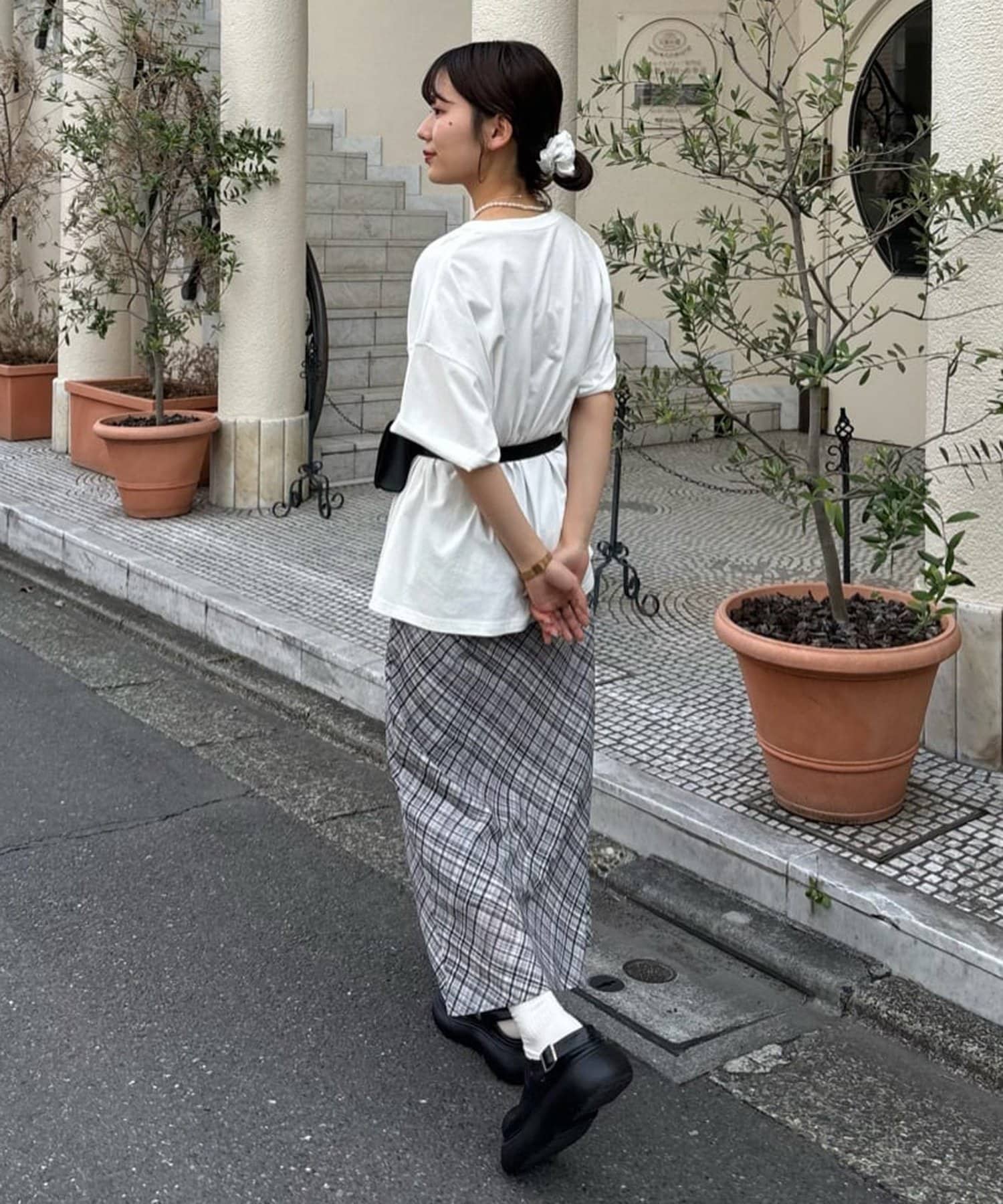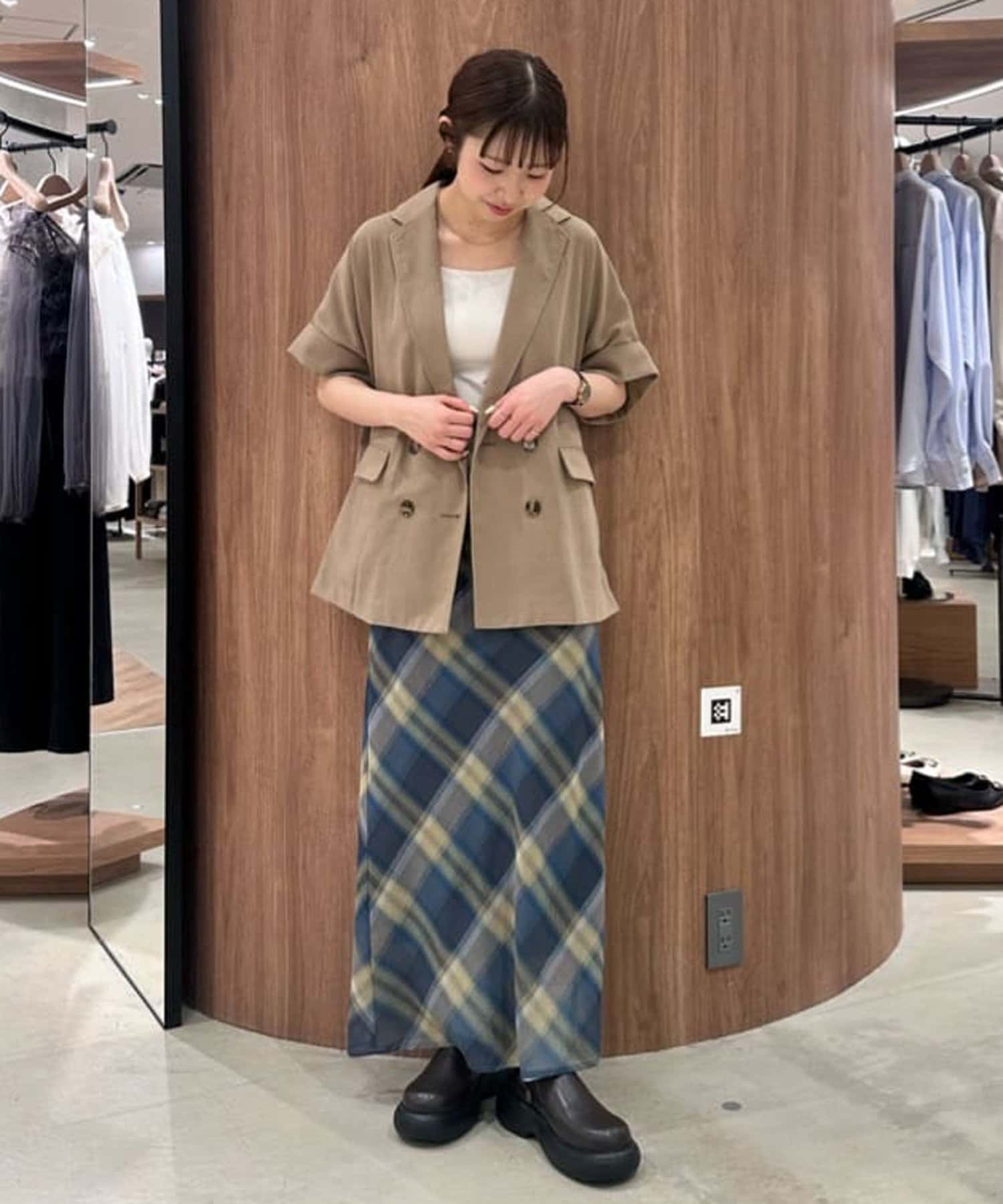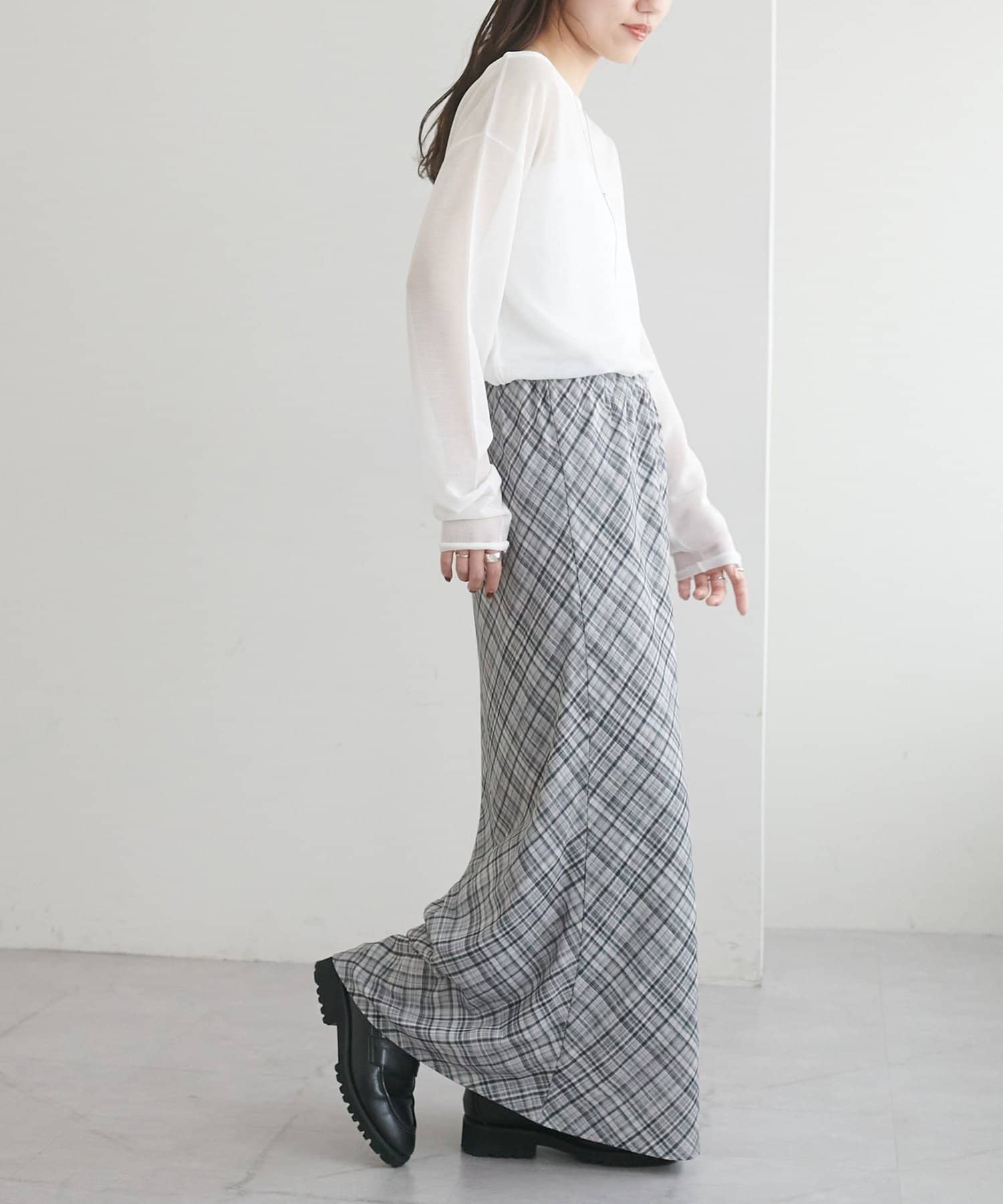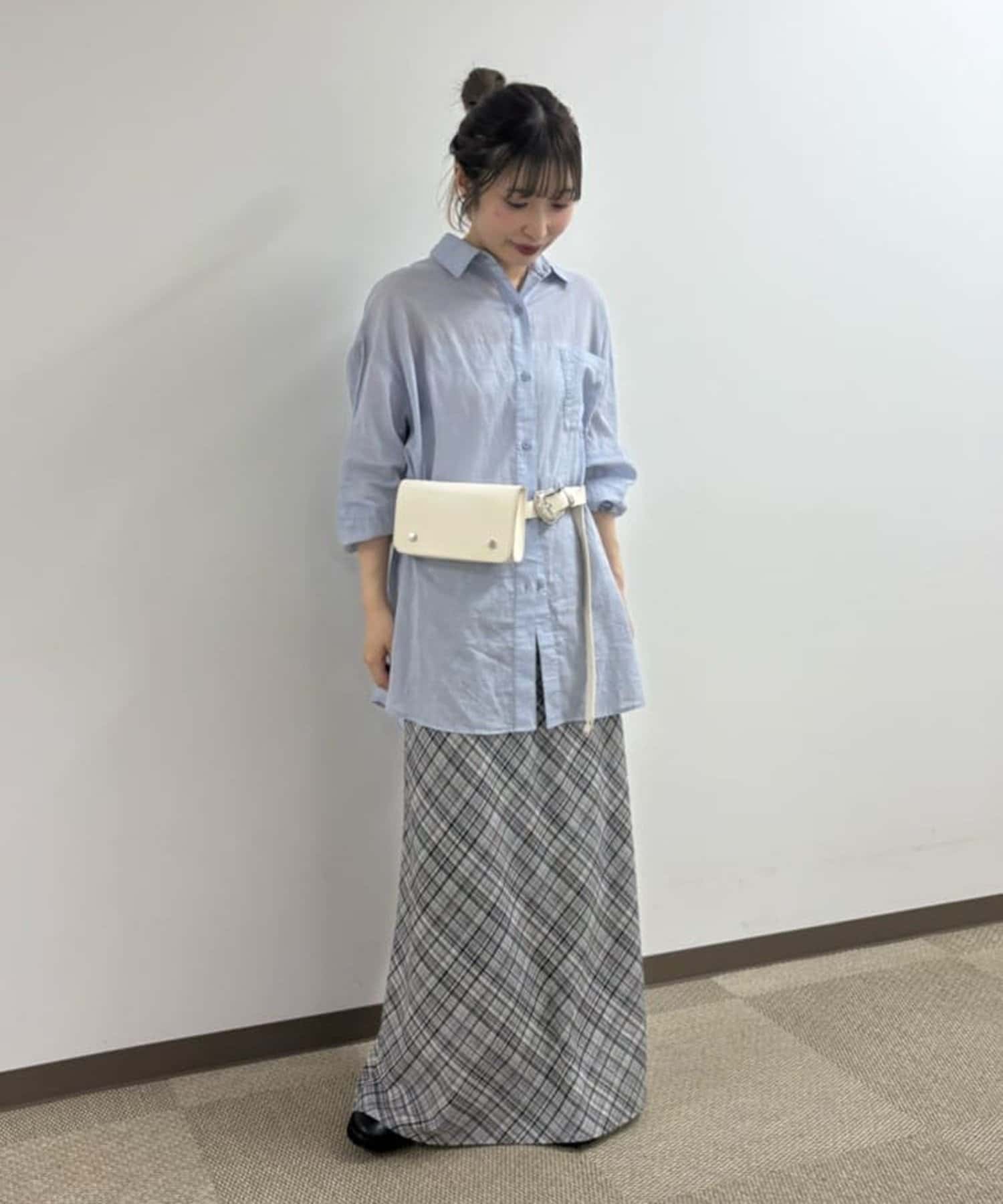 155cmスタッフ(Fサイズ):スタイルアップするスカートです!シアー感のあるチェック柄は、春夏にぴったり◎シンプルなTシャツと合わせてスカートをメインにしたコーデを楽しみたいです!