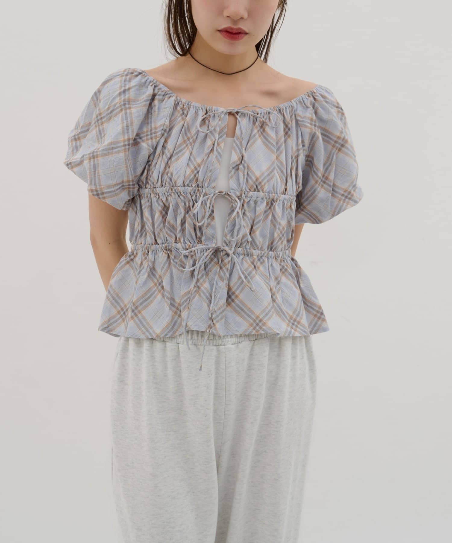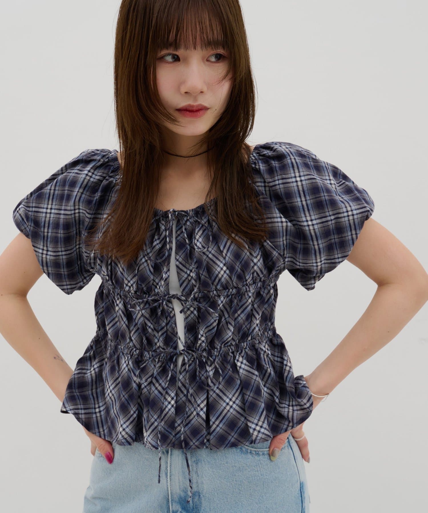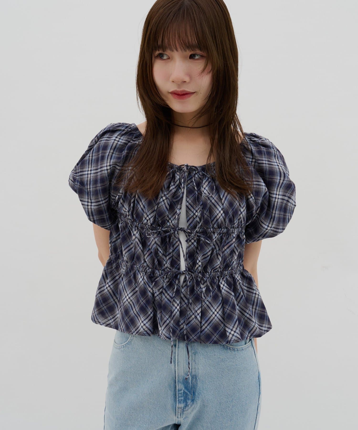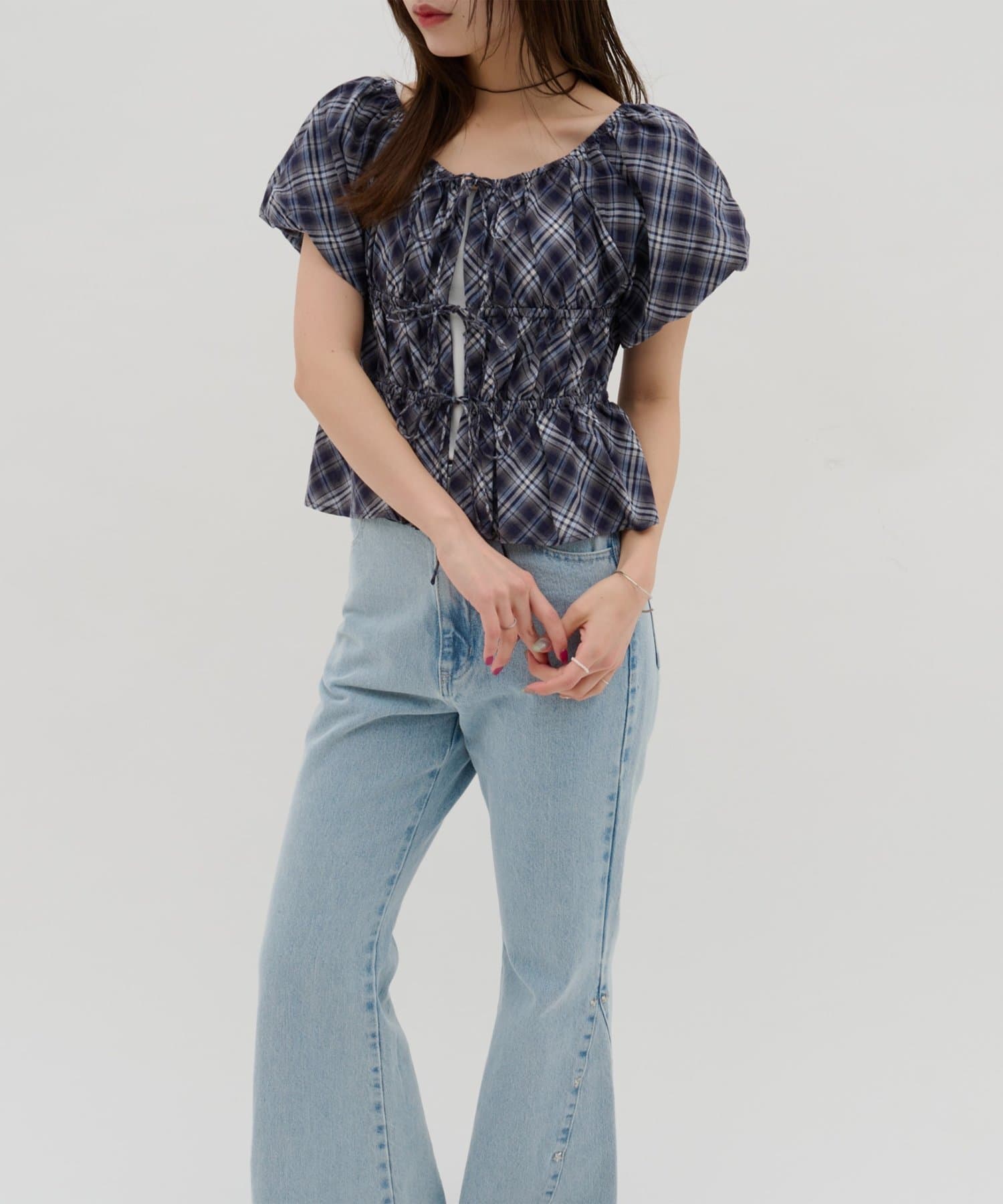 【umm.】チェック柄バルーンブラウス