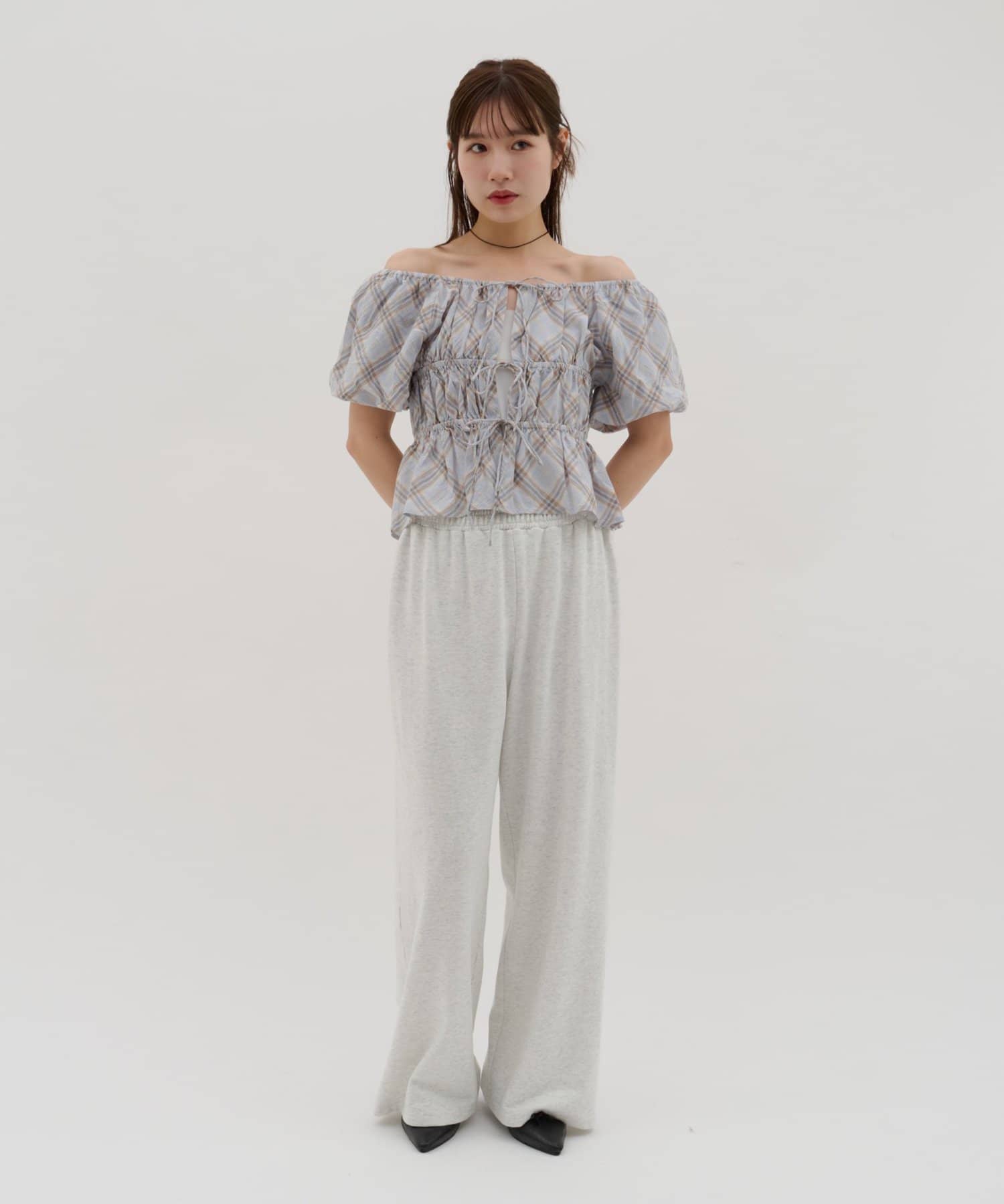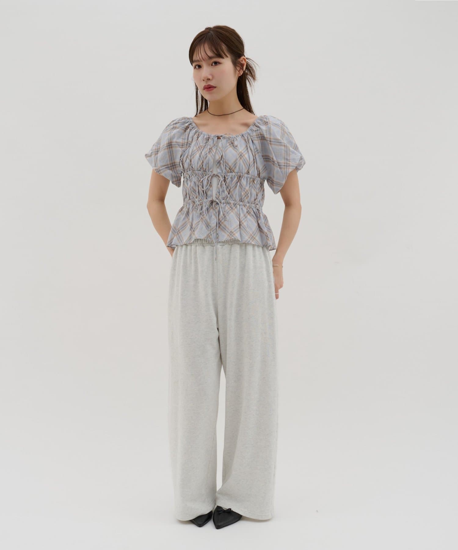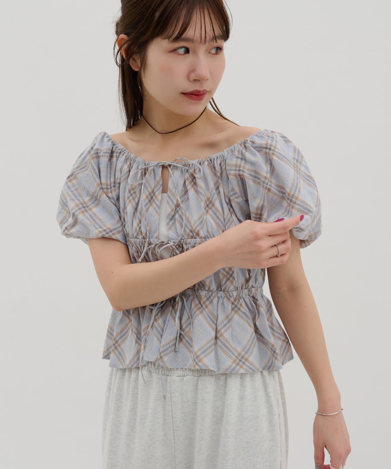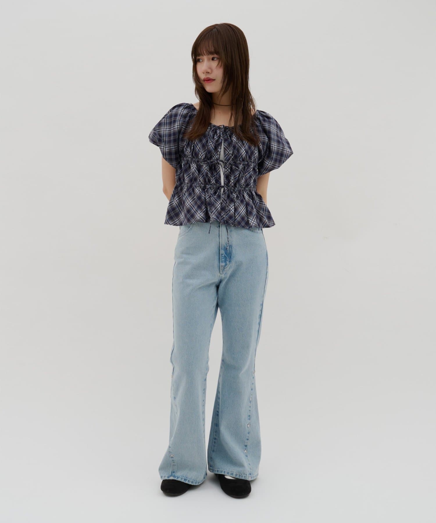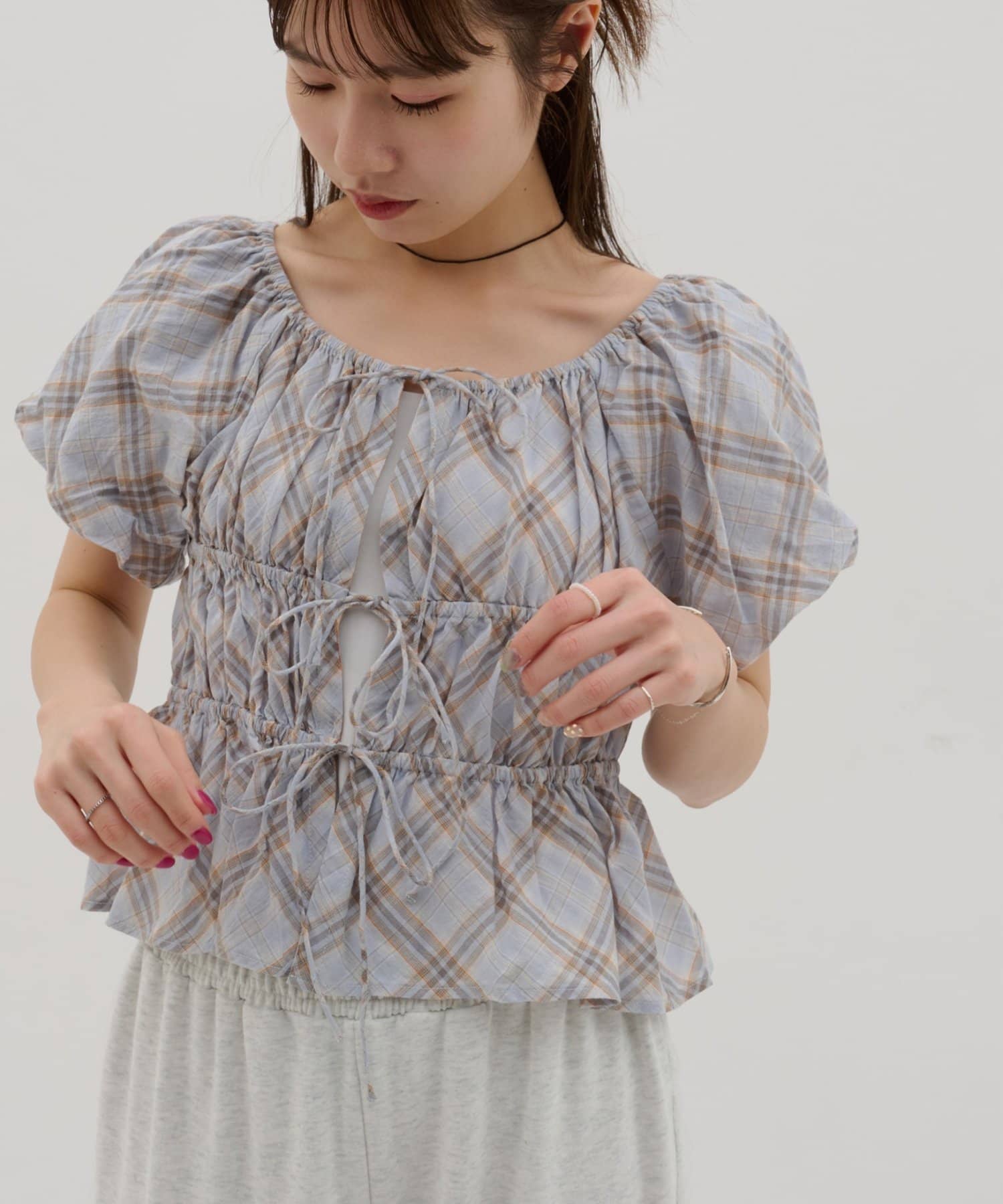 【umm.】チェック柄バルーンブラウス