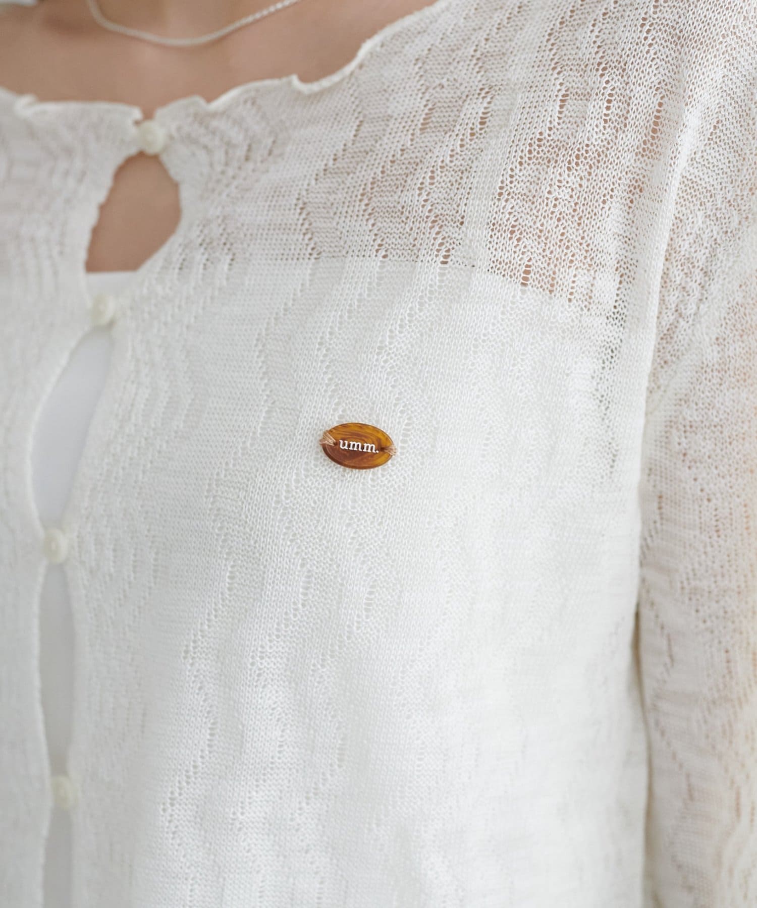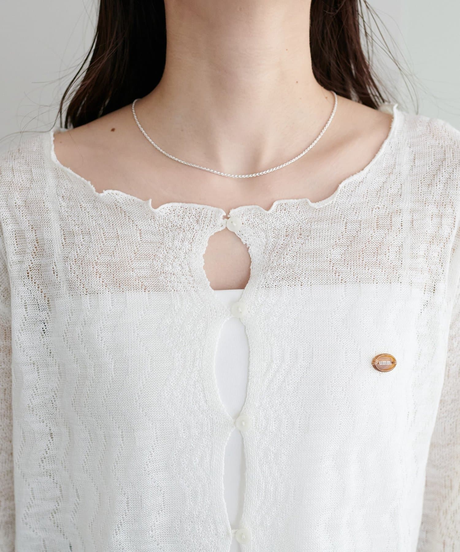 ・胸元のumm.のチャームがさり気ないアクセントに。