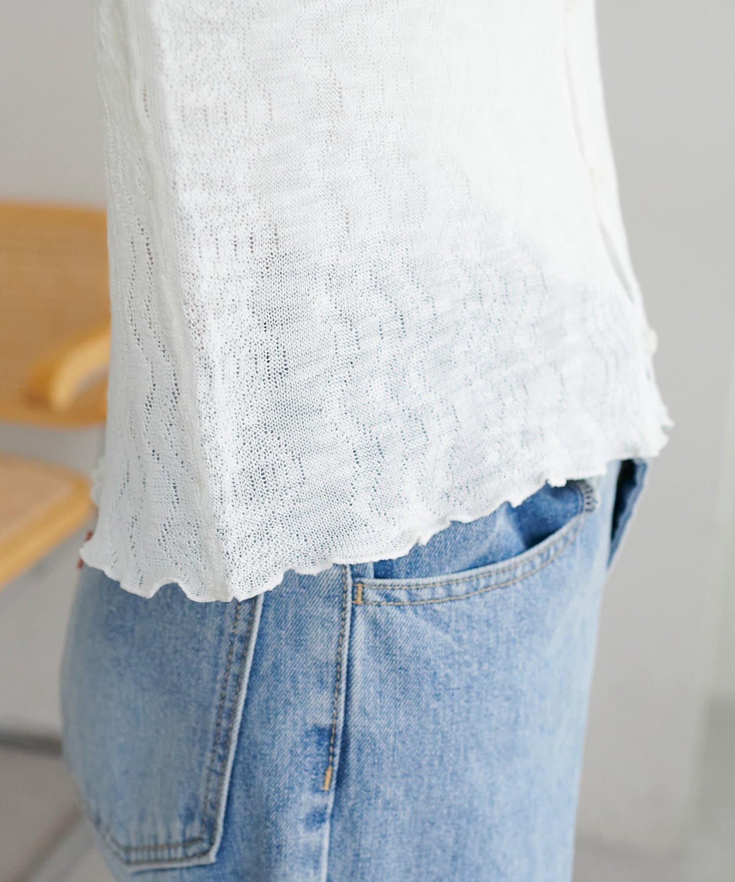 ・透かし編みの軽い素材は、抜け感のある印象に