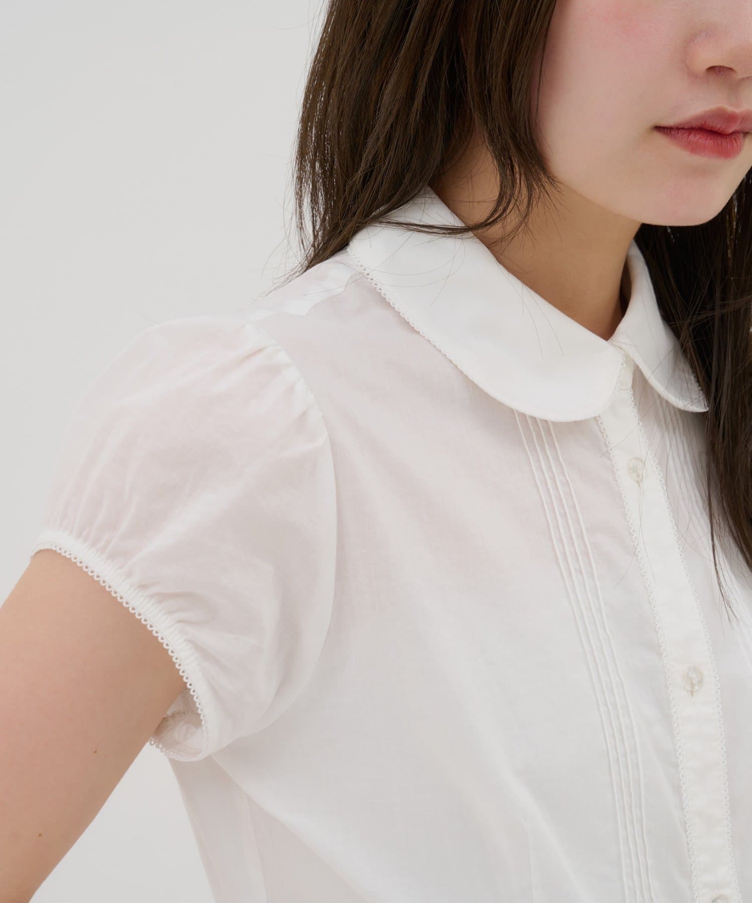 ・顔周りを優しく見せる丸襟と、華奢見えするパフスリーブ