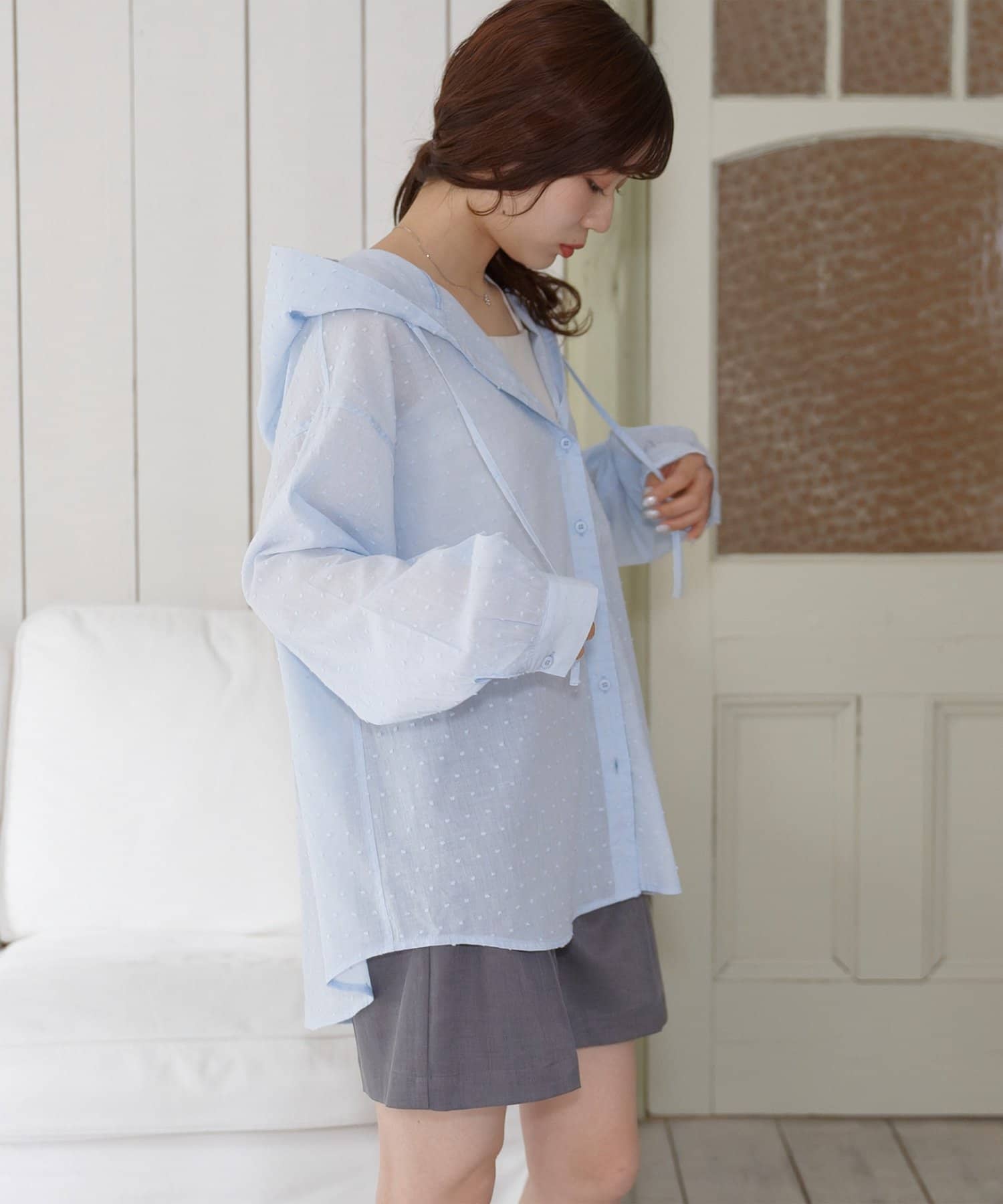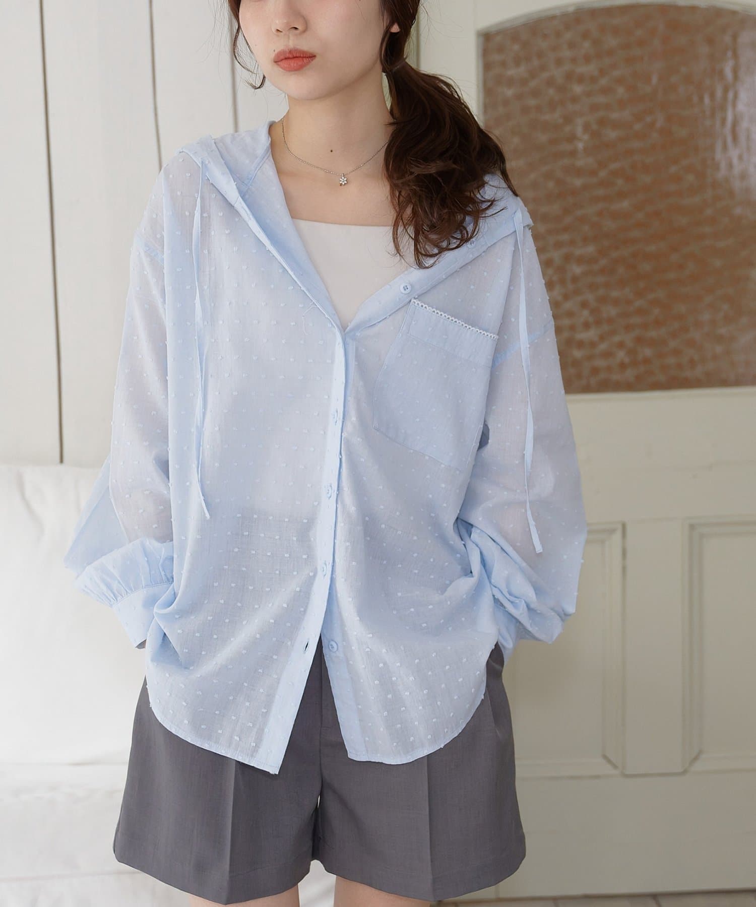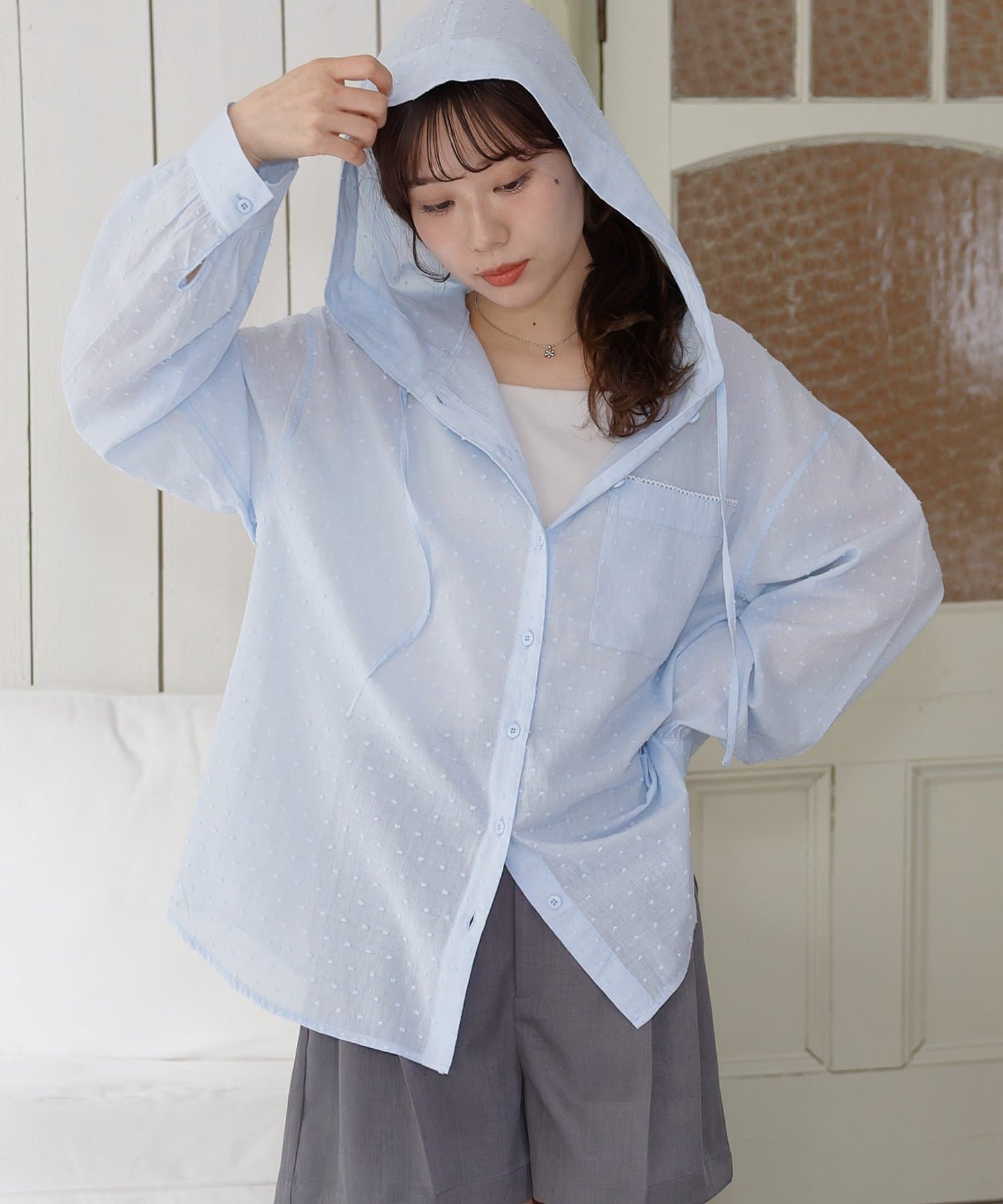 【umm.】ドビードットフードシャツ
