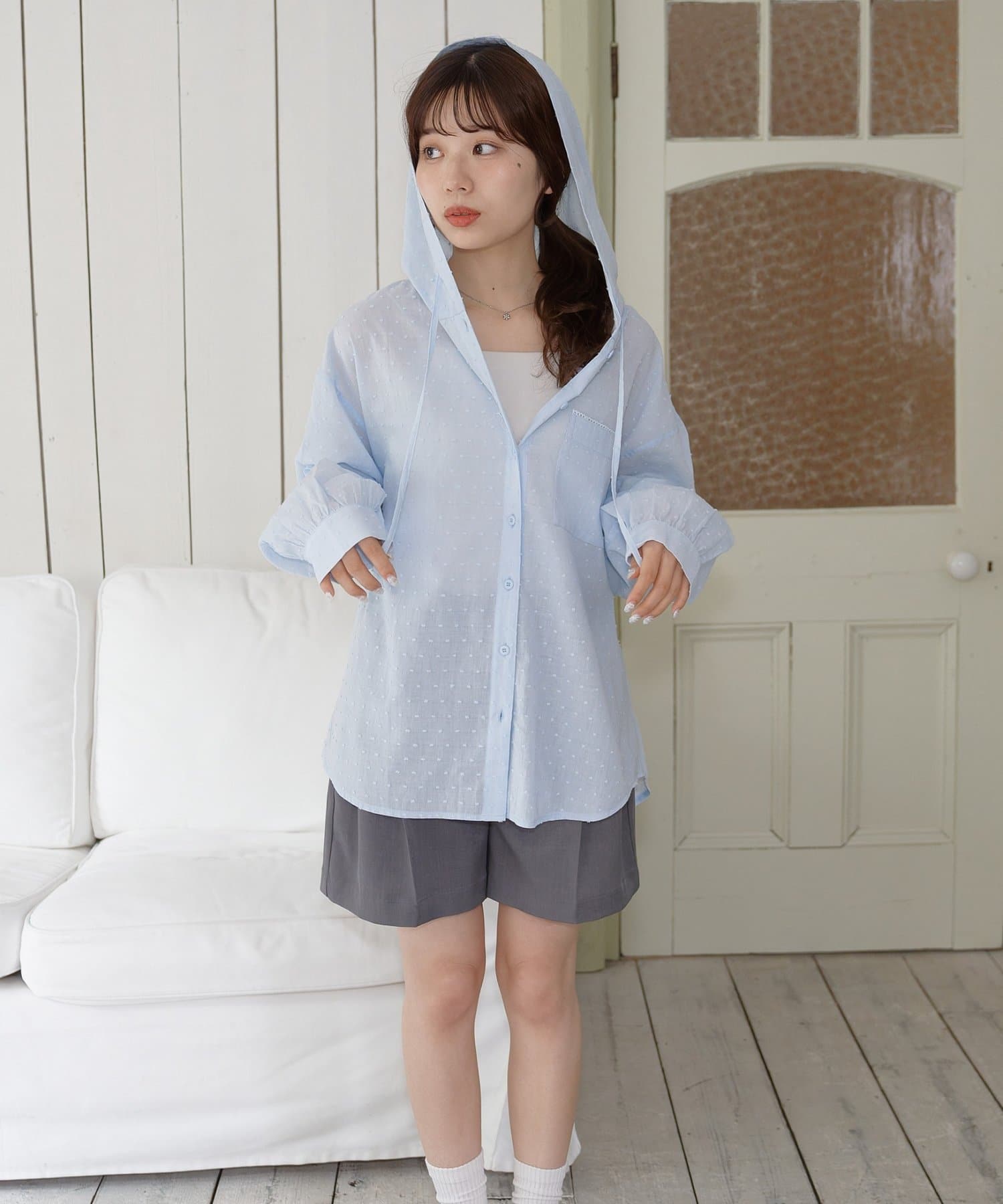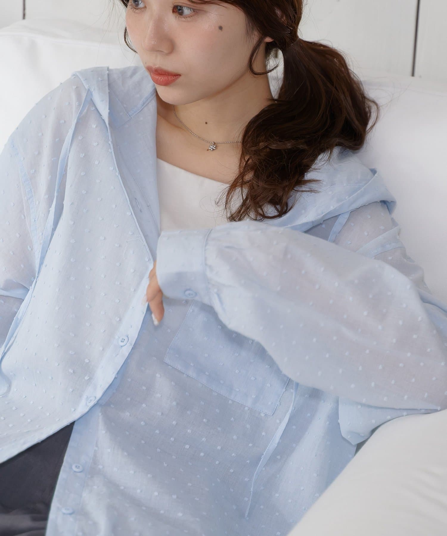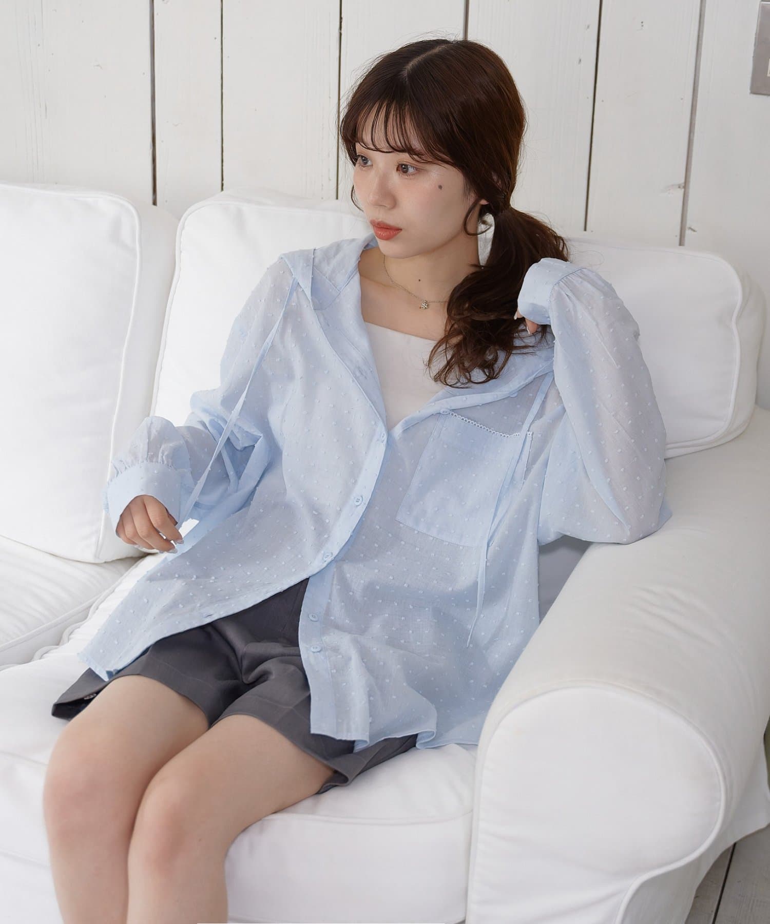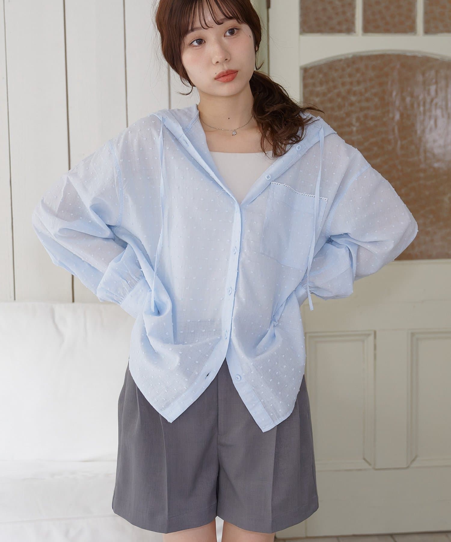 【umm.】ドビードットフードシャツ