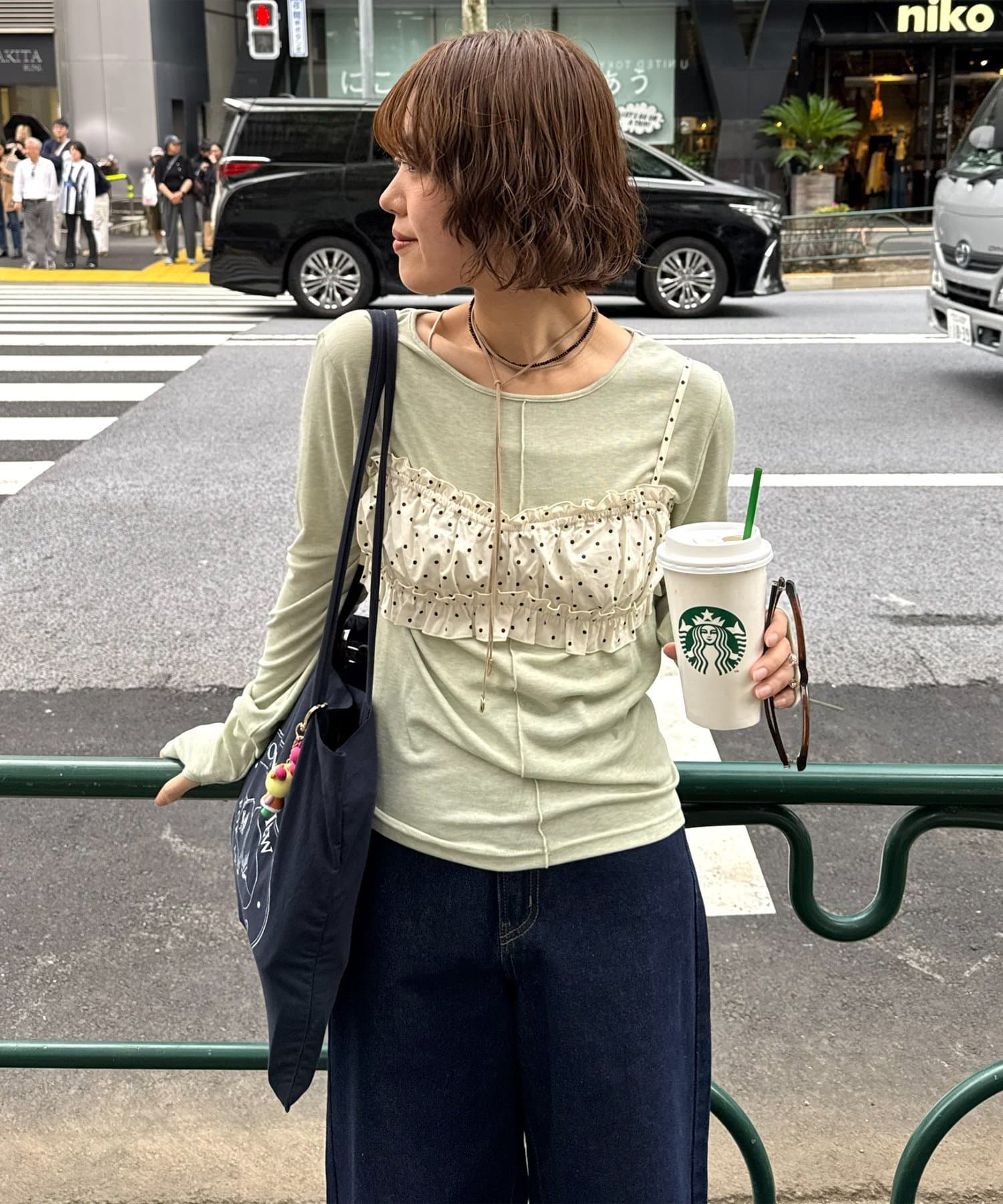 ・コンパクトサイズのキャミで、コーディネートにトレンド感をプラス!