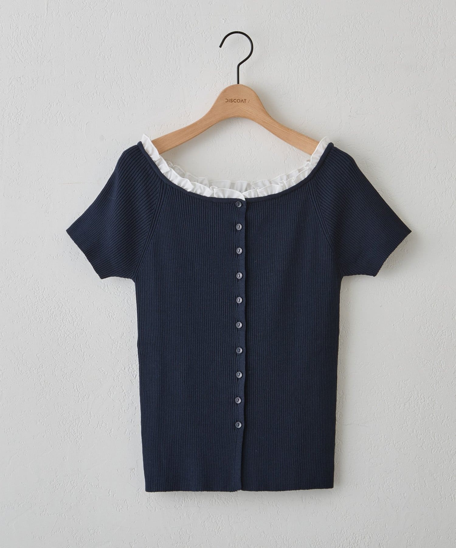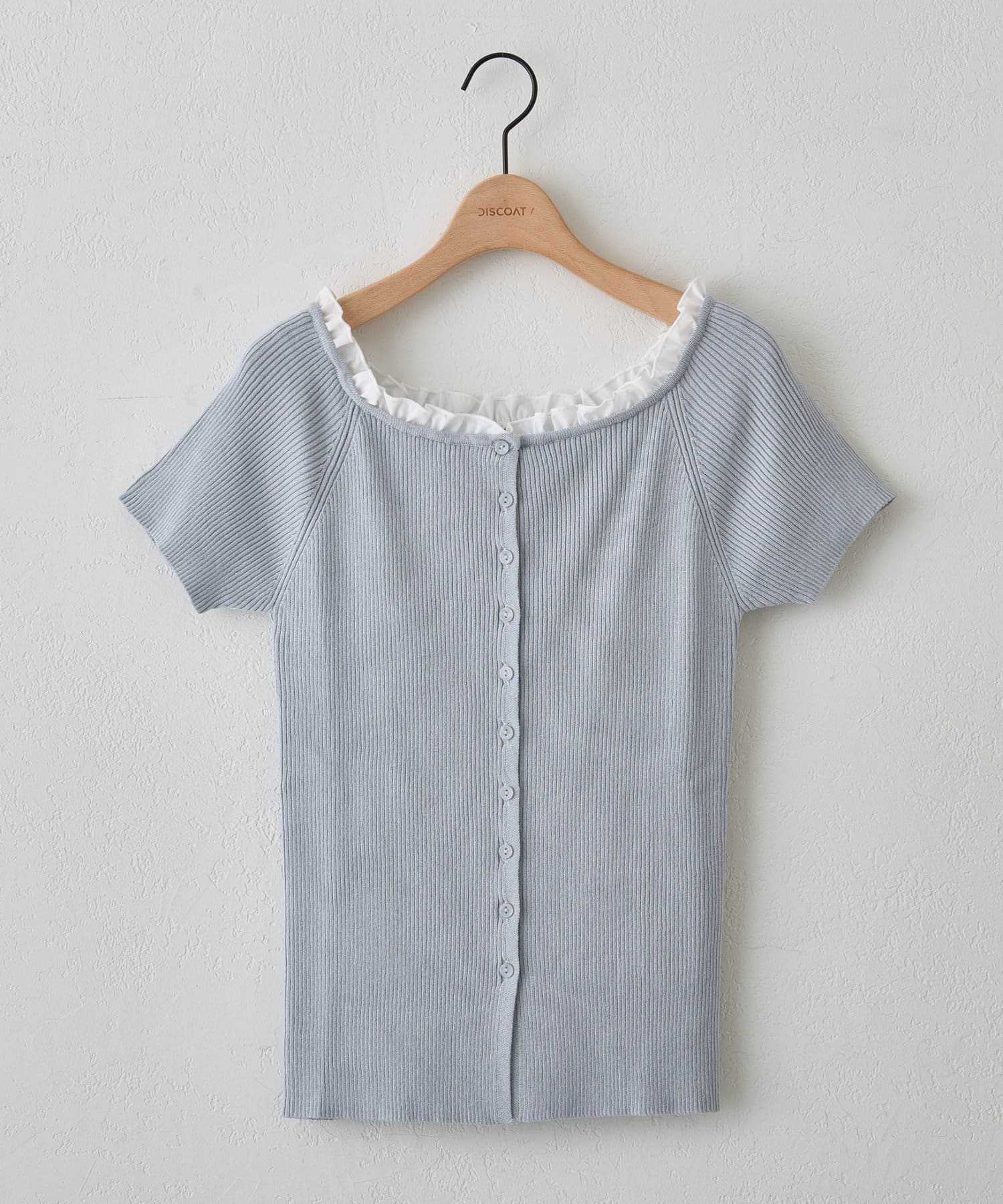 TOP > DISCOAT > レディース > トップス > ニット/セーター > 【umm.】襟フリル半袖PO