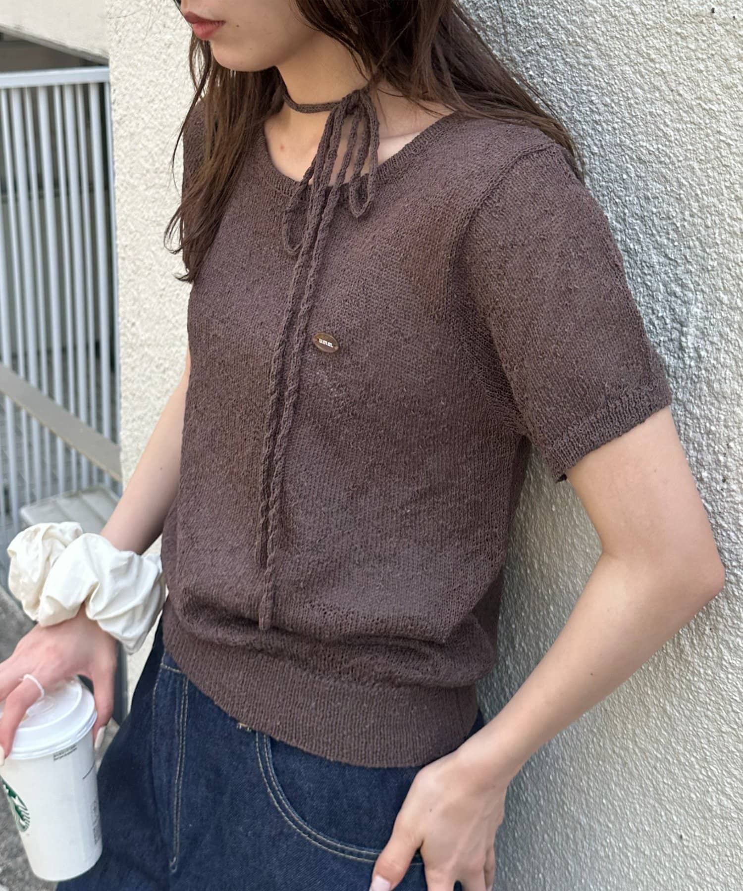 【umm./5色展開】プレート付チョーカー半袖プルオーバー