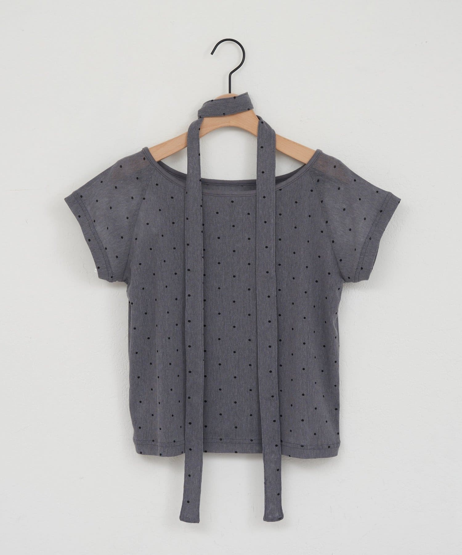TOP > DISCOAT > レディース > トップス > Tシャツ/カットソー > 【umm.】チョーカー付きドットラグランPO