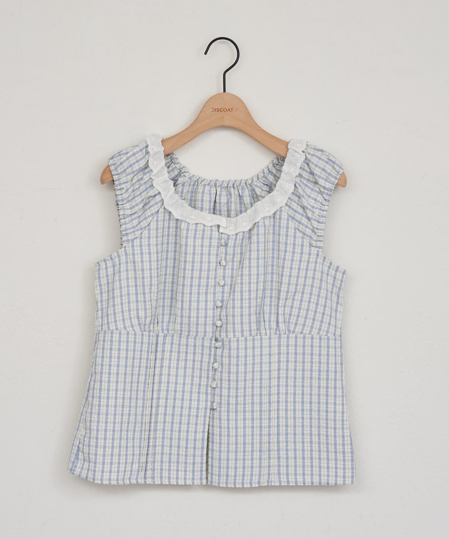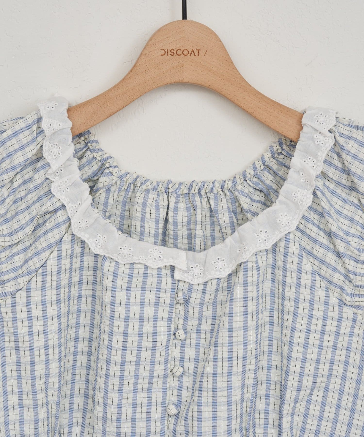 DISCOAT(ディスコート) 【umm./WEB限定】レース使いチェックフレンチブラウス