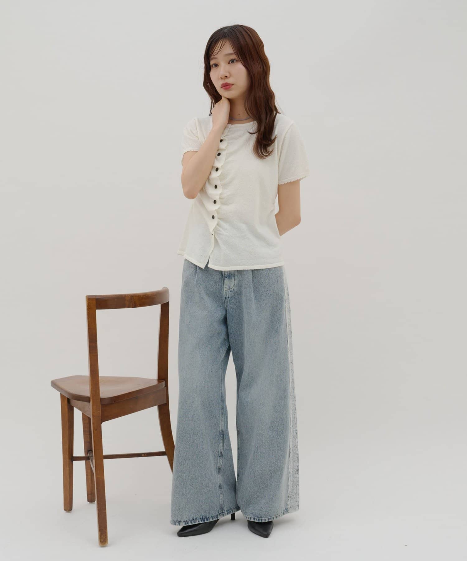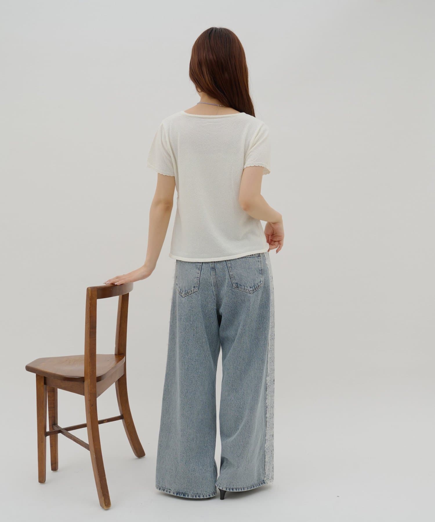 サイドレースデニムワイドパンツ