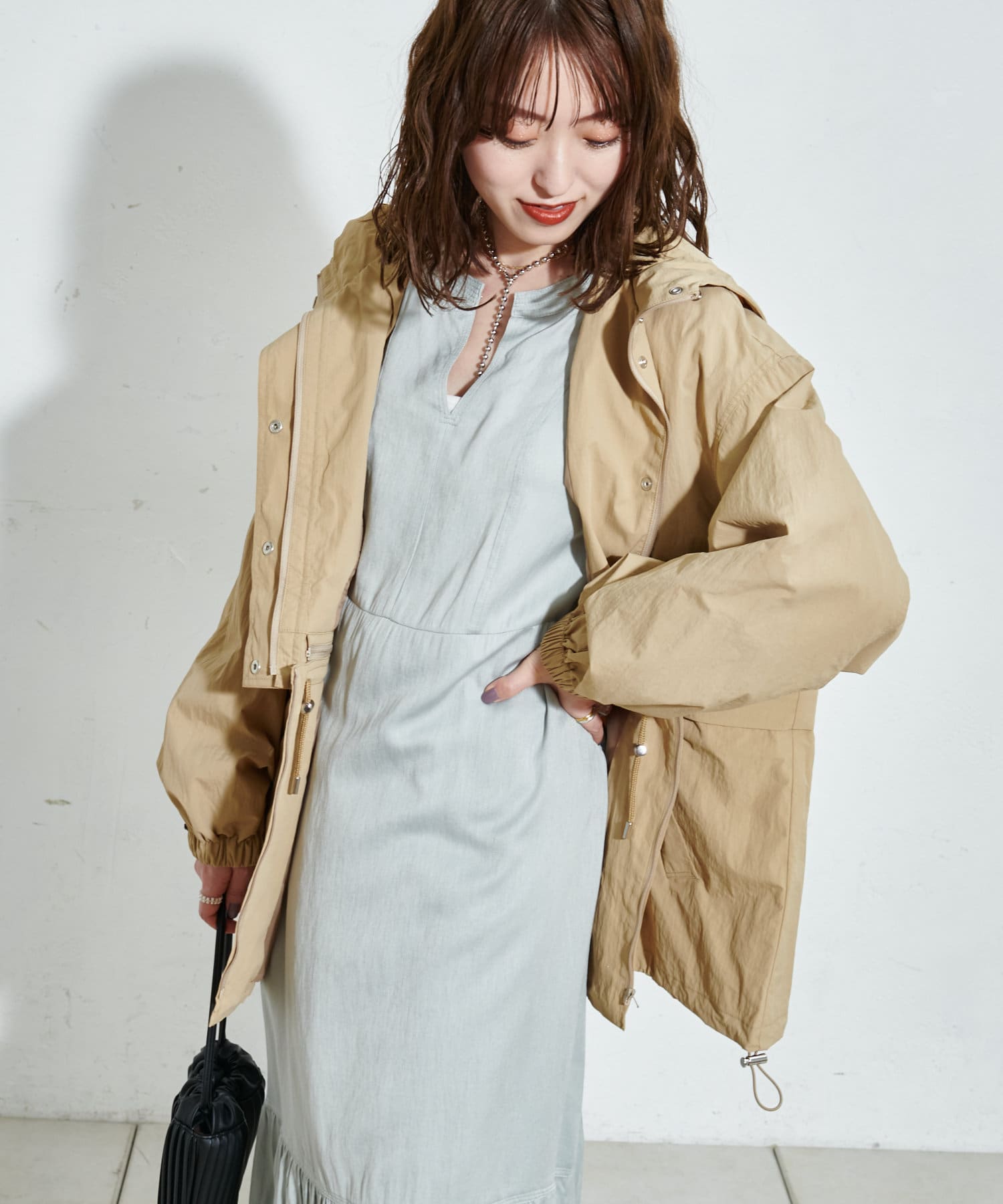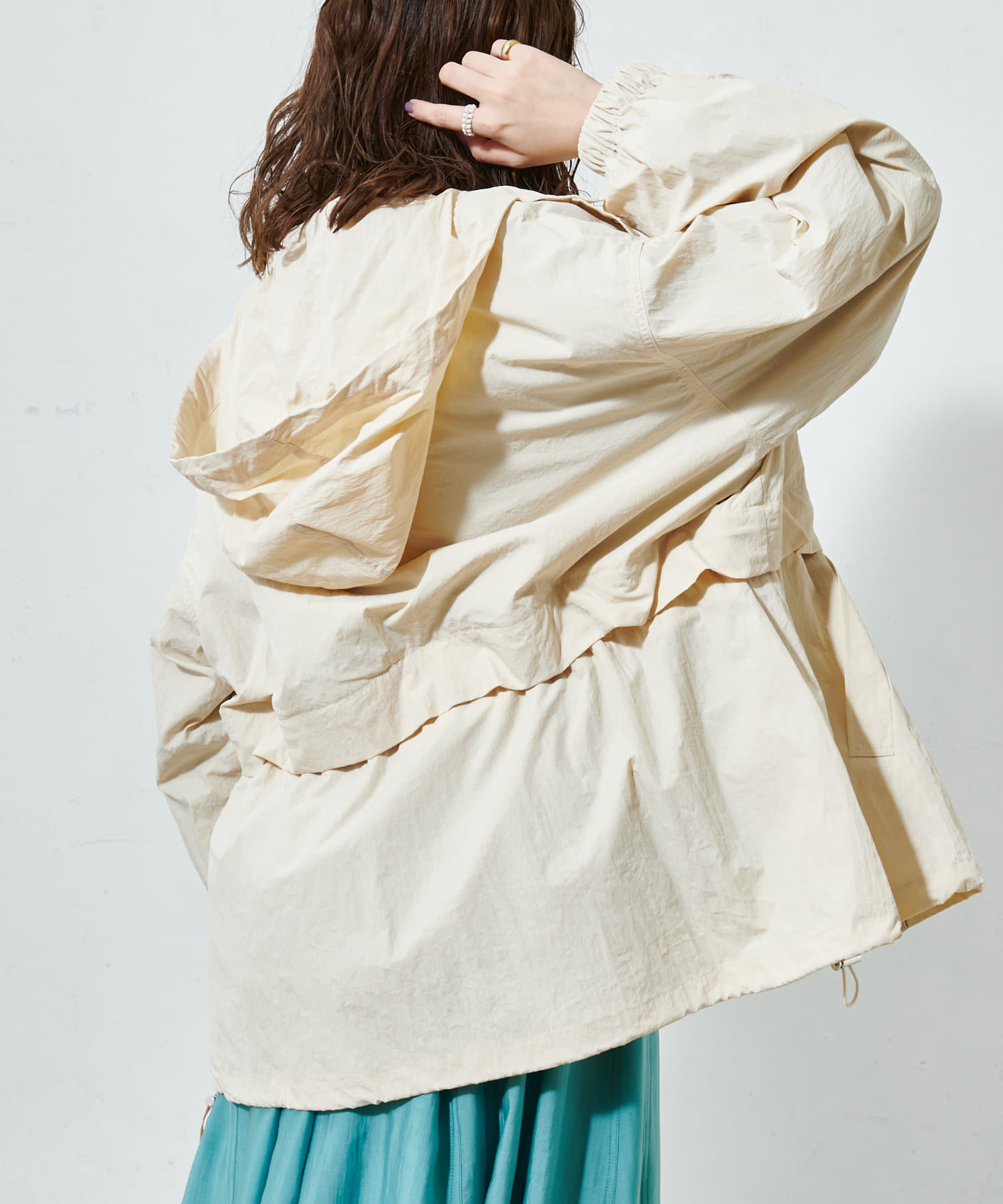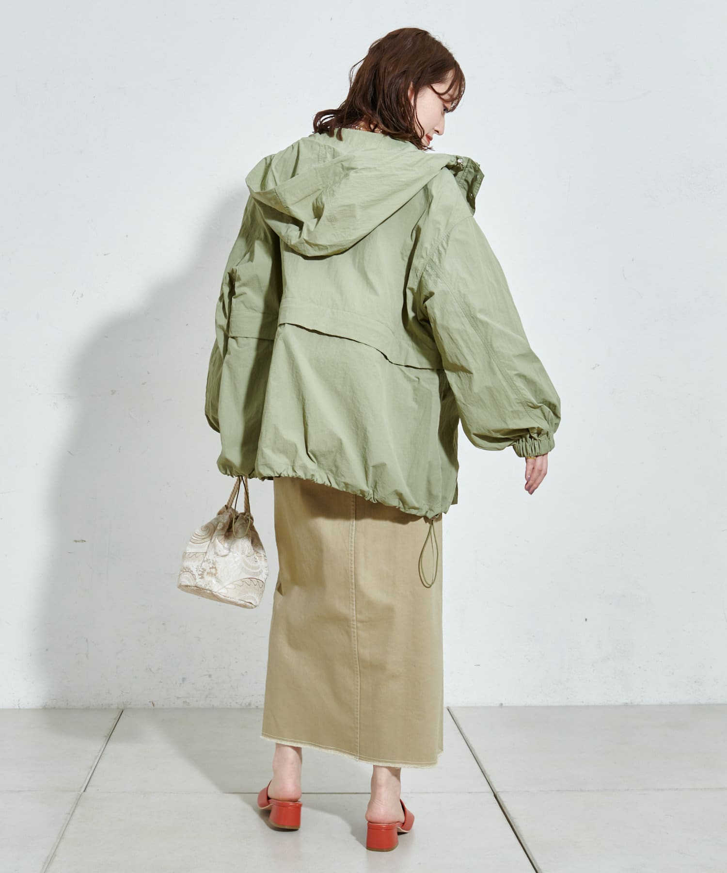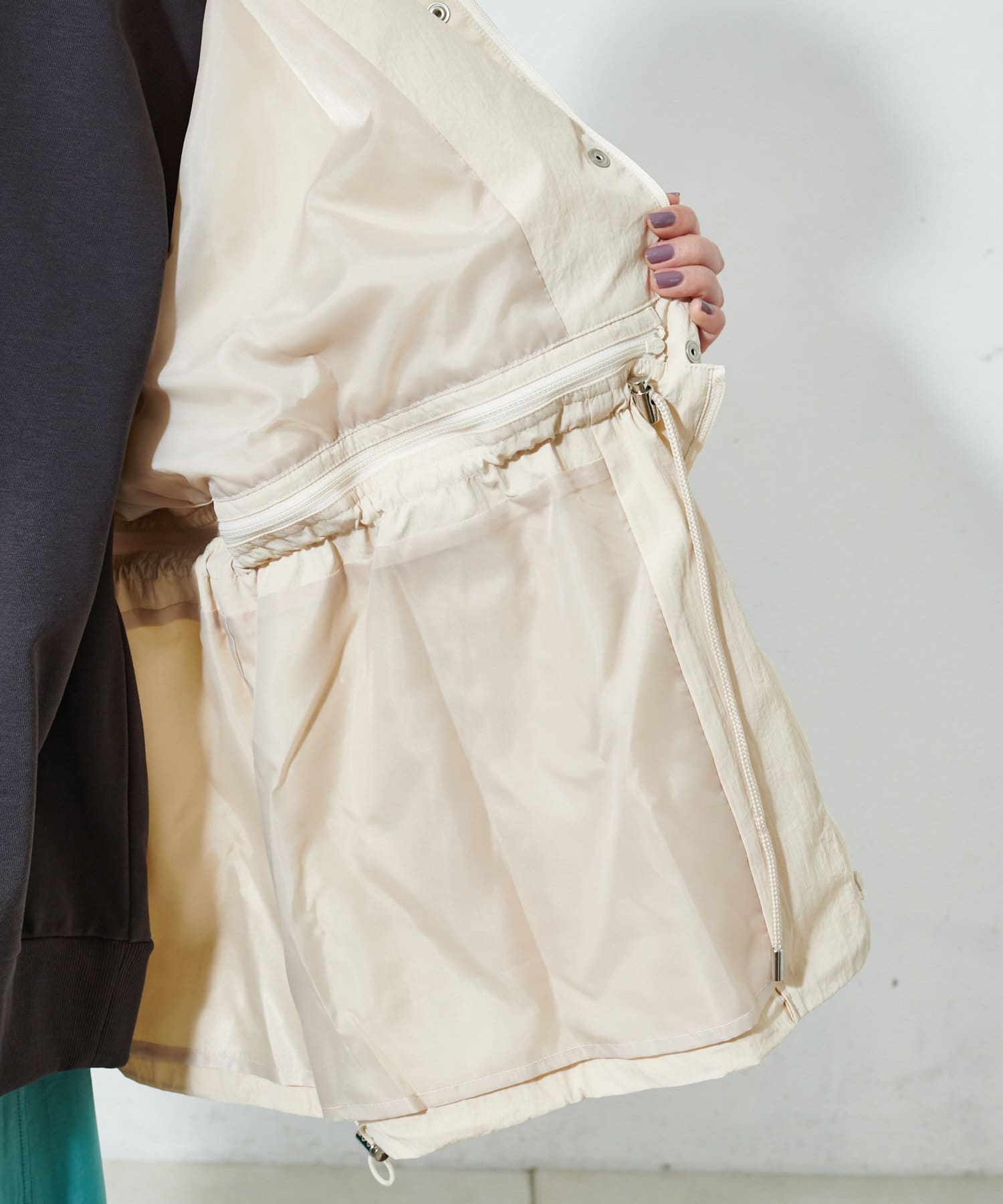 東京ドームラクーア店 マイカ(159cm):ウエスト裏側部分がファスナーになっておりミドル丈とショート丈の2way仕様で使って頂けるマウンテンパーカーです!