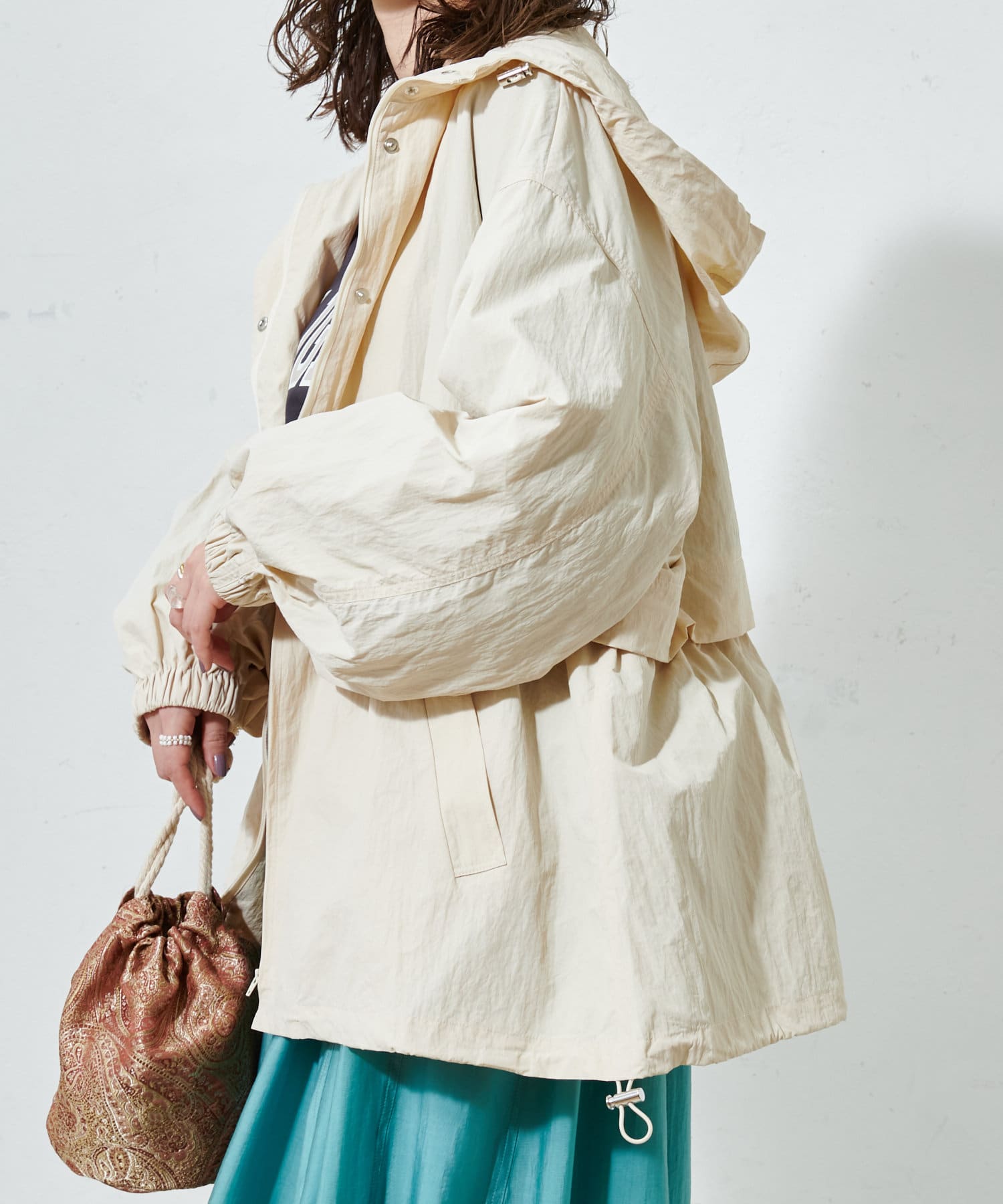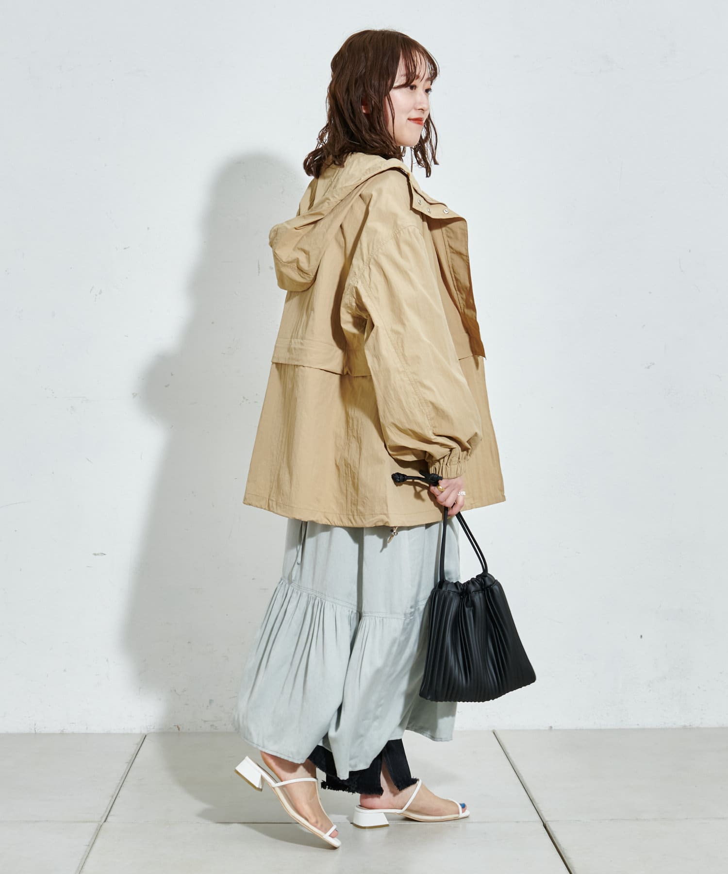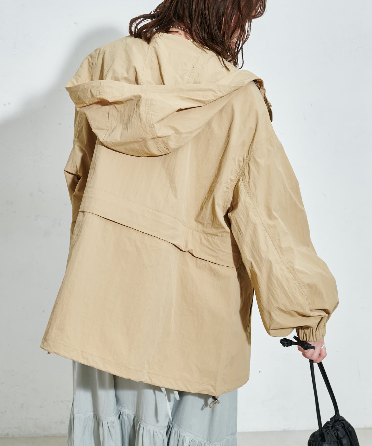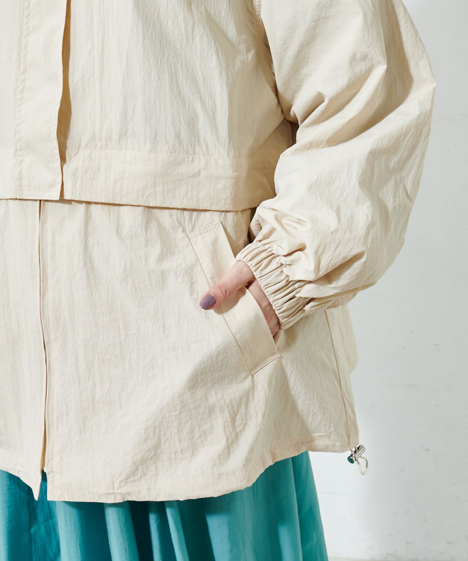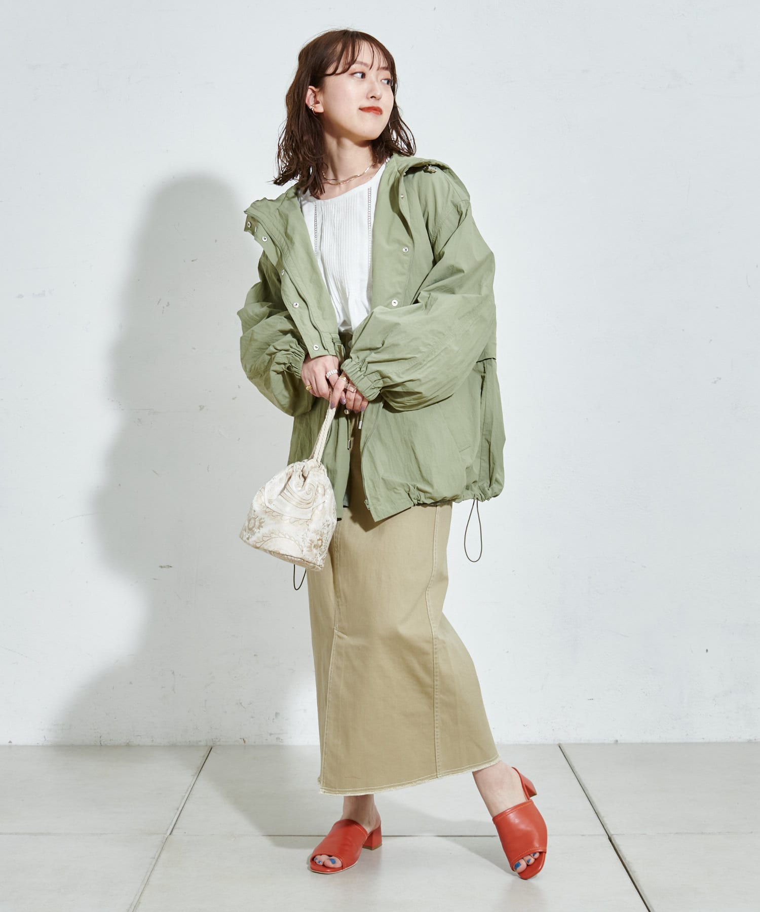 東京ドームラクーア店 マイカ(159cm):ウエスト裏側部分がファスナーになっておりミドル丈とショート丈の2way仕様で使って頂けるマウンテンパーカーです!