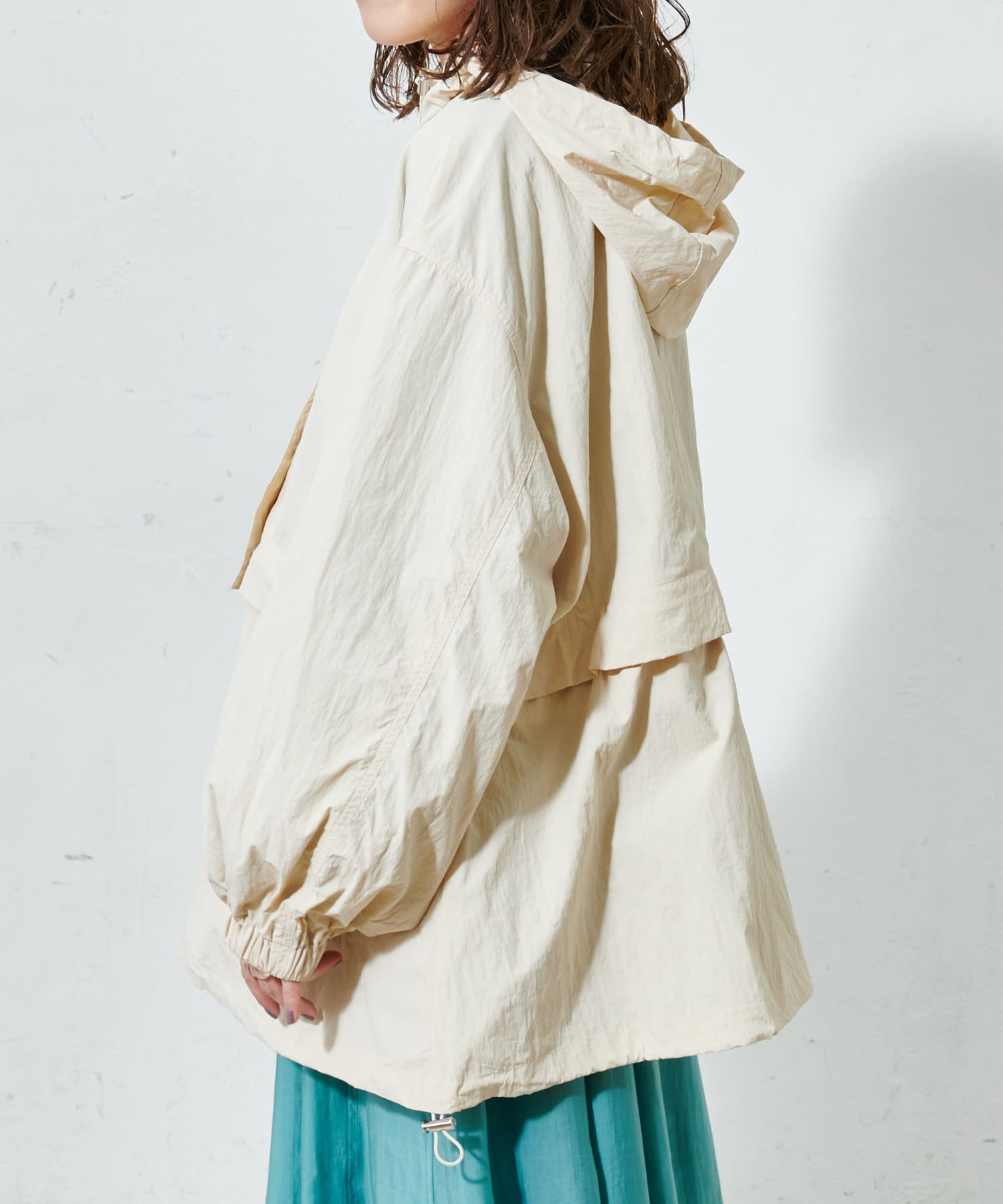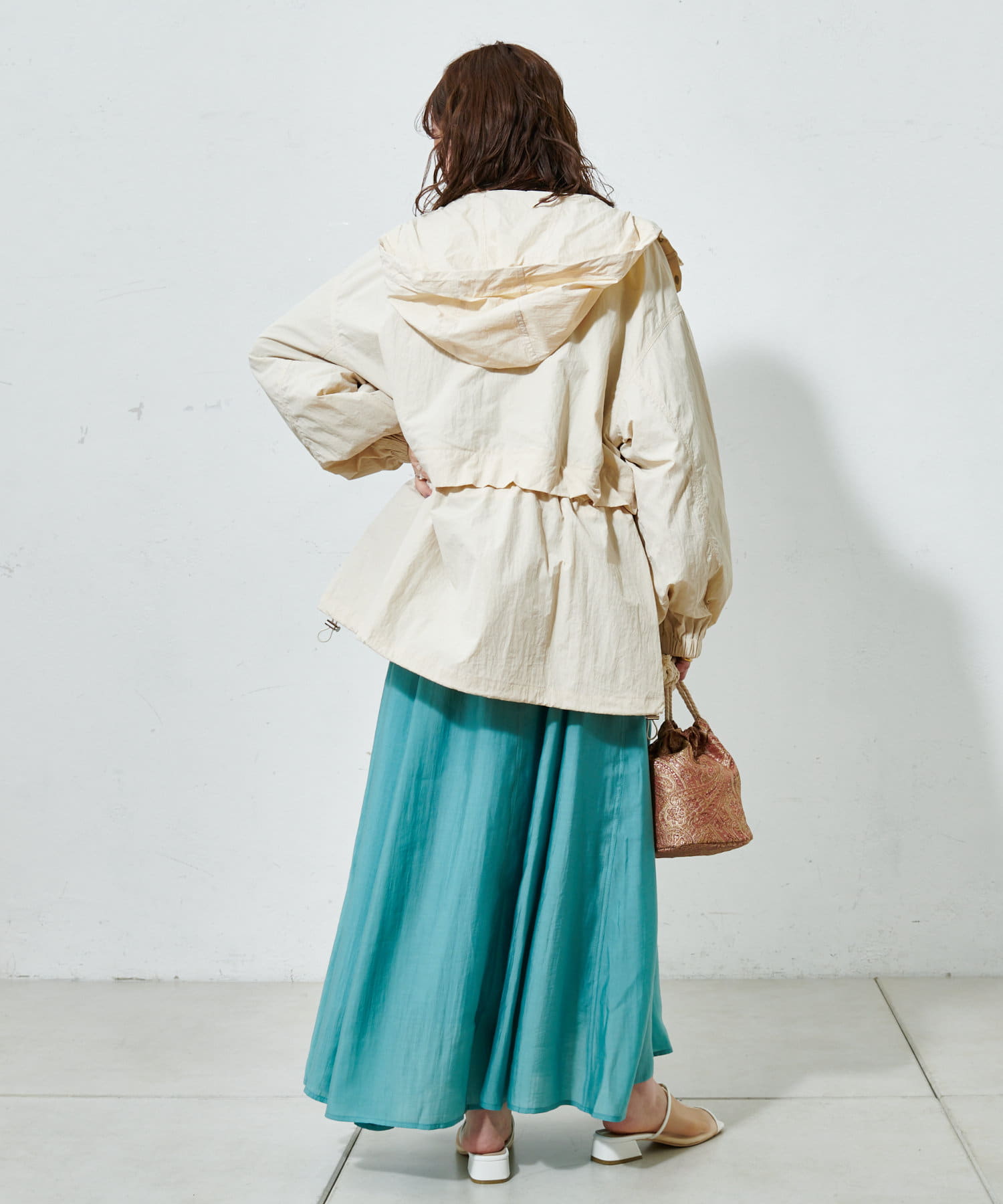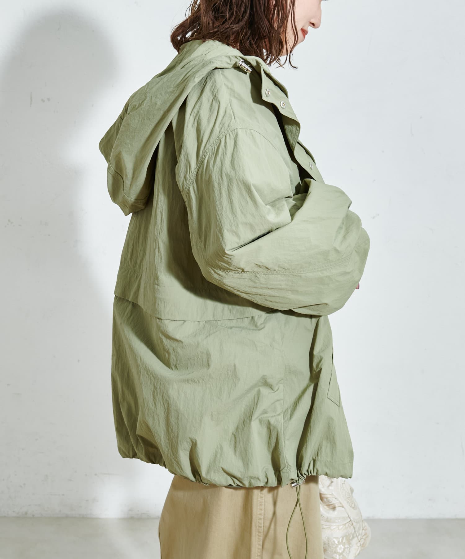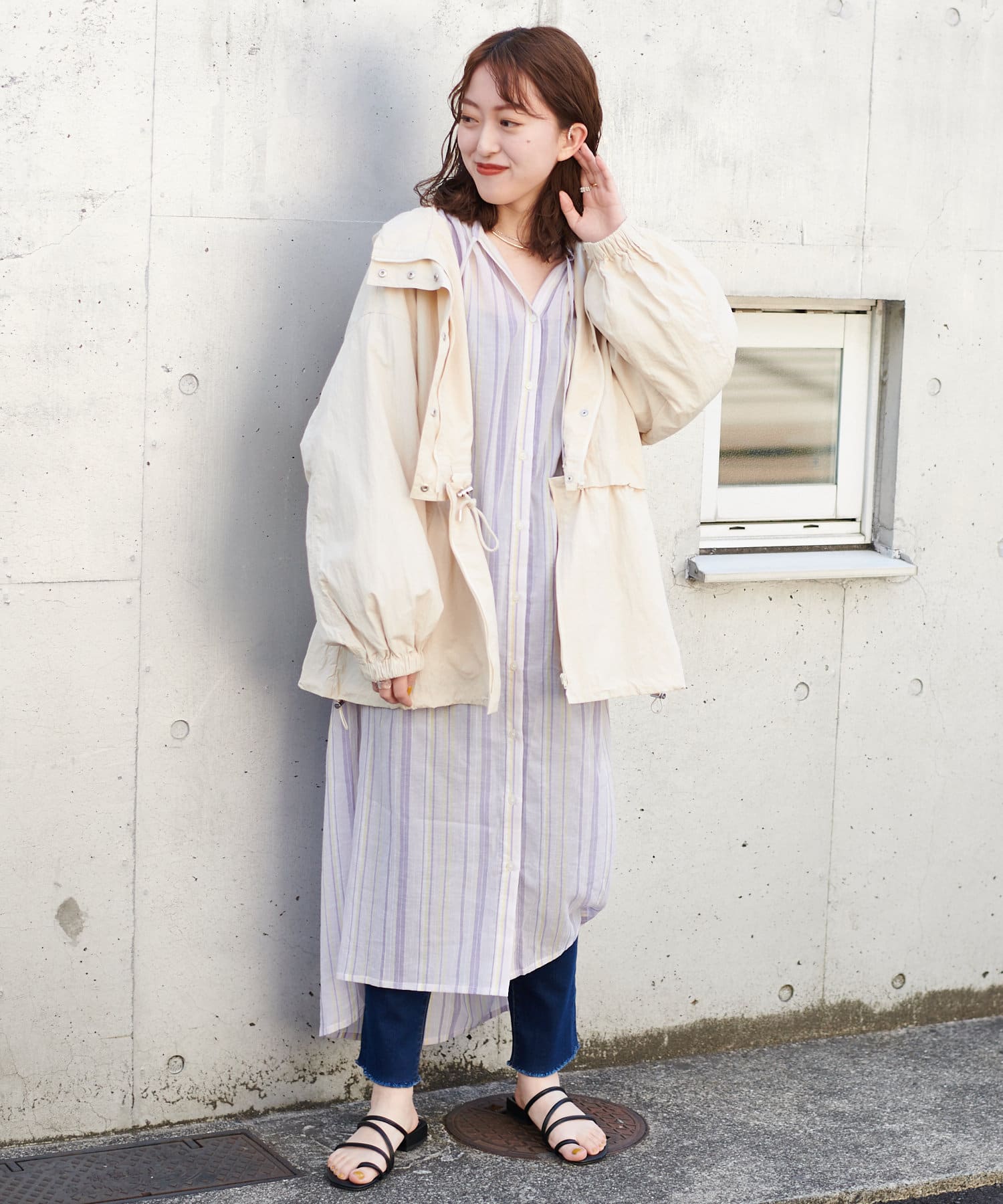 東京ドームラクーア店 マイカ(159cm):ウエスト裏側部分がファスナーになっておりミドル丈とショート丈の2way仕様で使って頂けるマウンテンパーカーです!