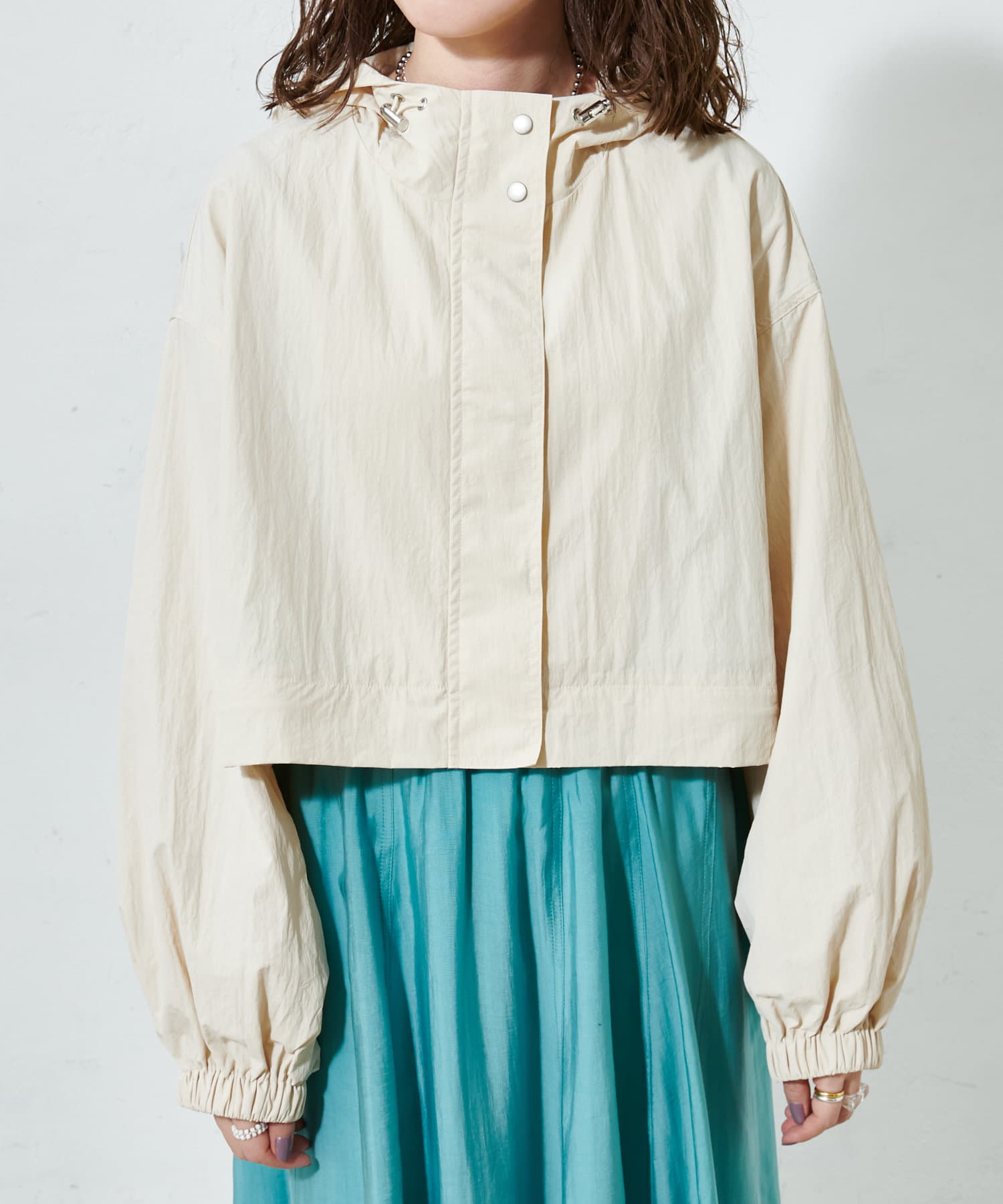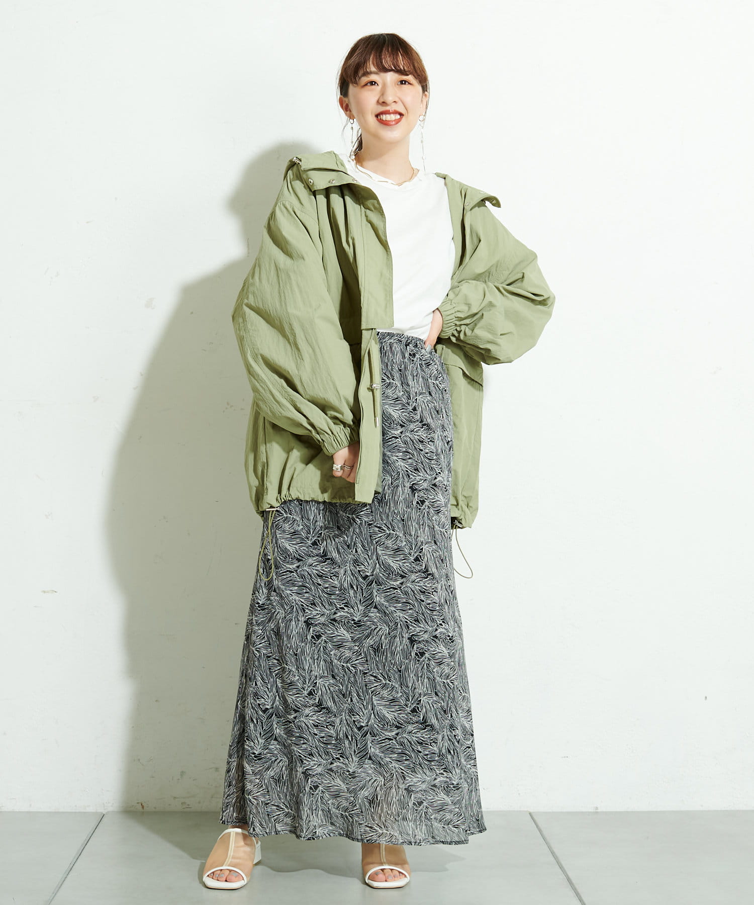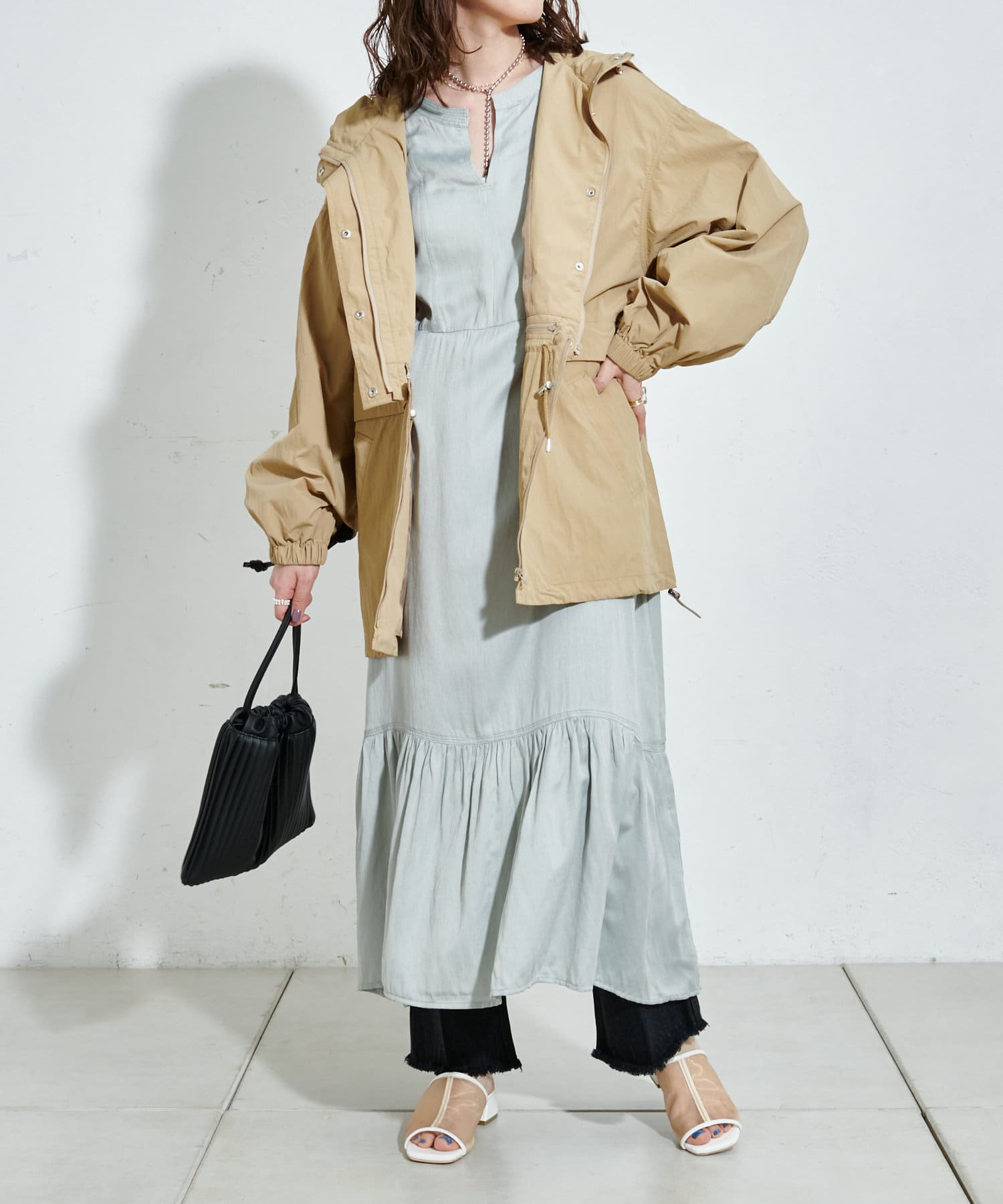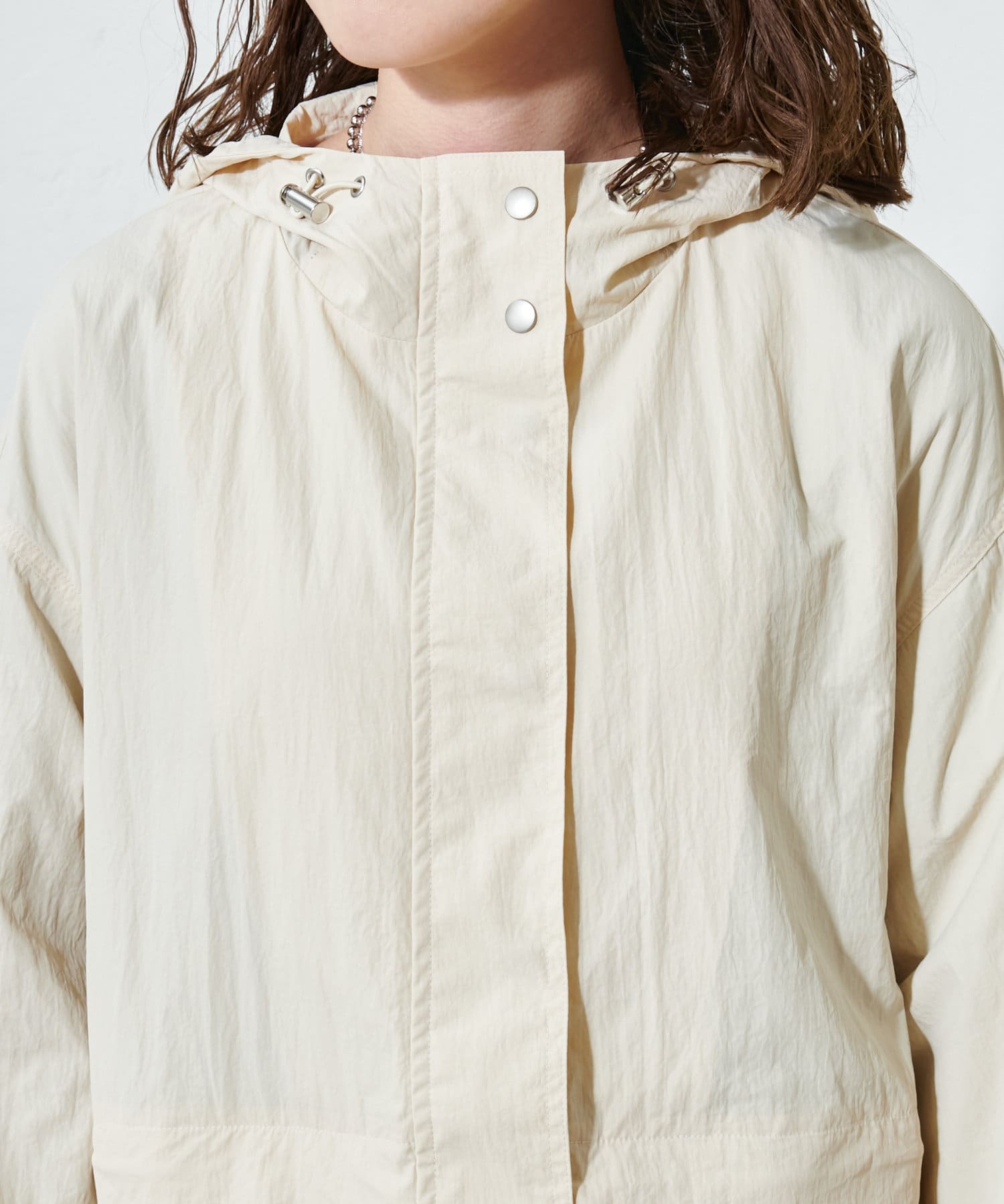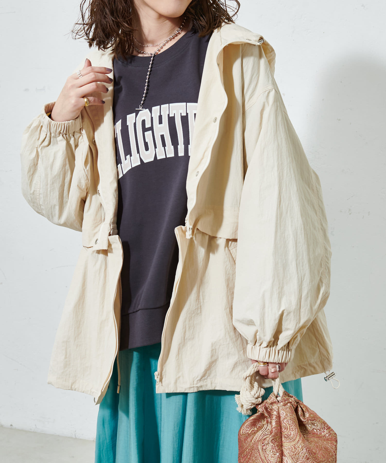 東京ドームラクーア店 マイカ(159cm):ウエスト裏側部分がファスナーになっておりミドル丈とショート丈の2way仕様で使って頂けるマウンテンパーカーです!