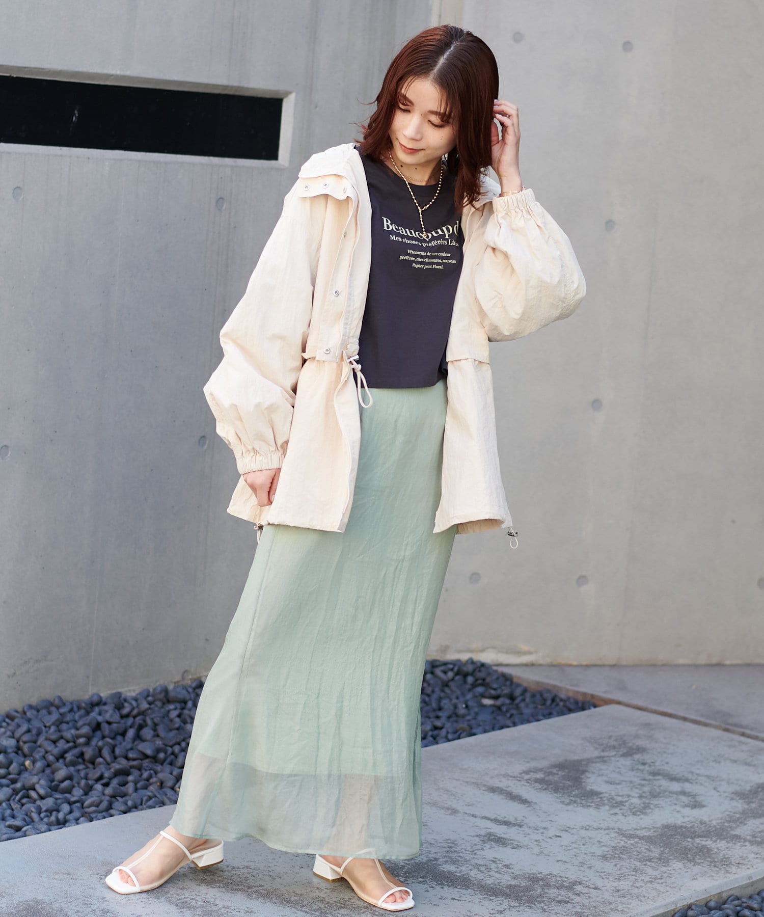 マーメイドスカートやナロースカートを合わせて、女性らしく着こなすのがおすすめ。ショート丈にもアレンジ可能なので、ボリュームのあるボトムスとも相性抜群です。