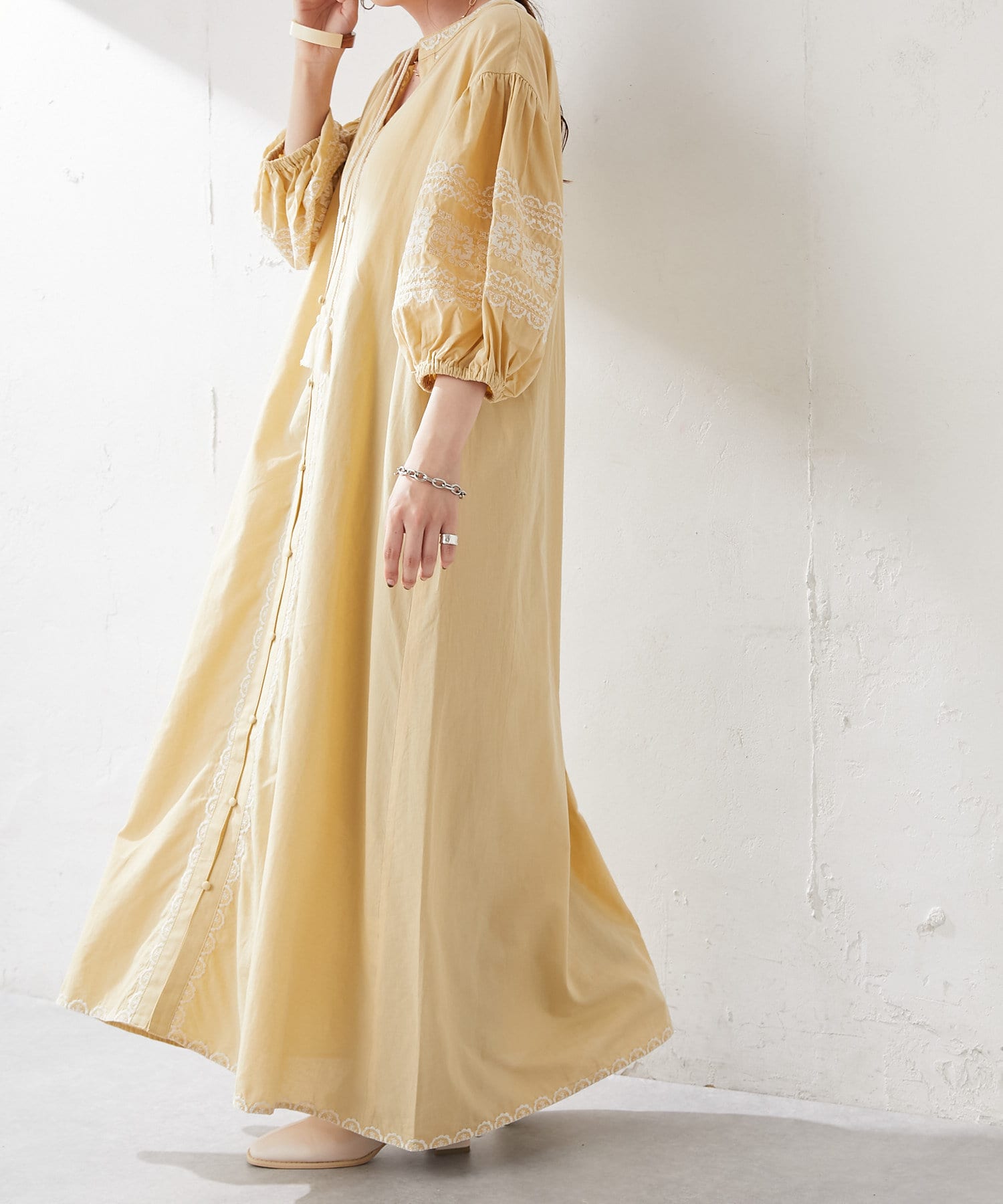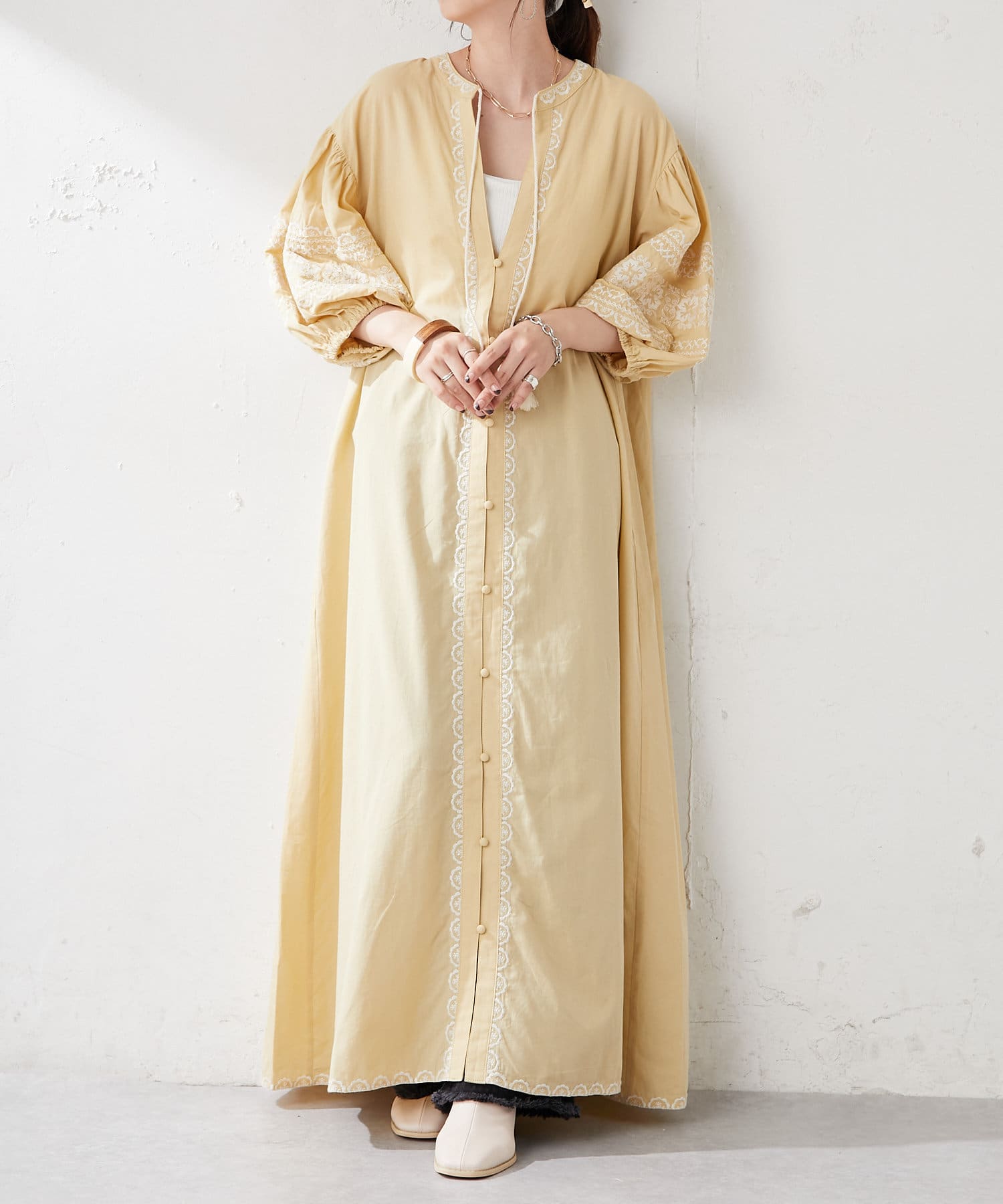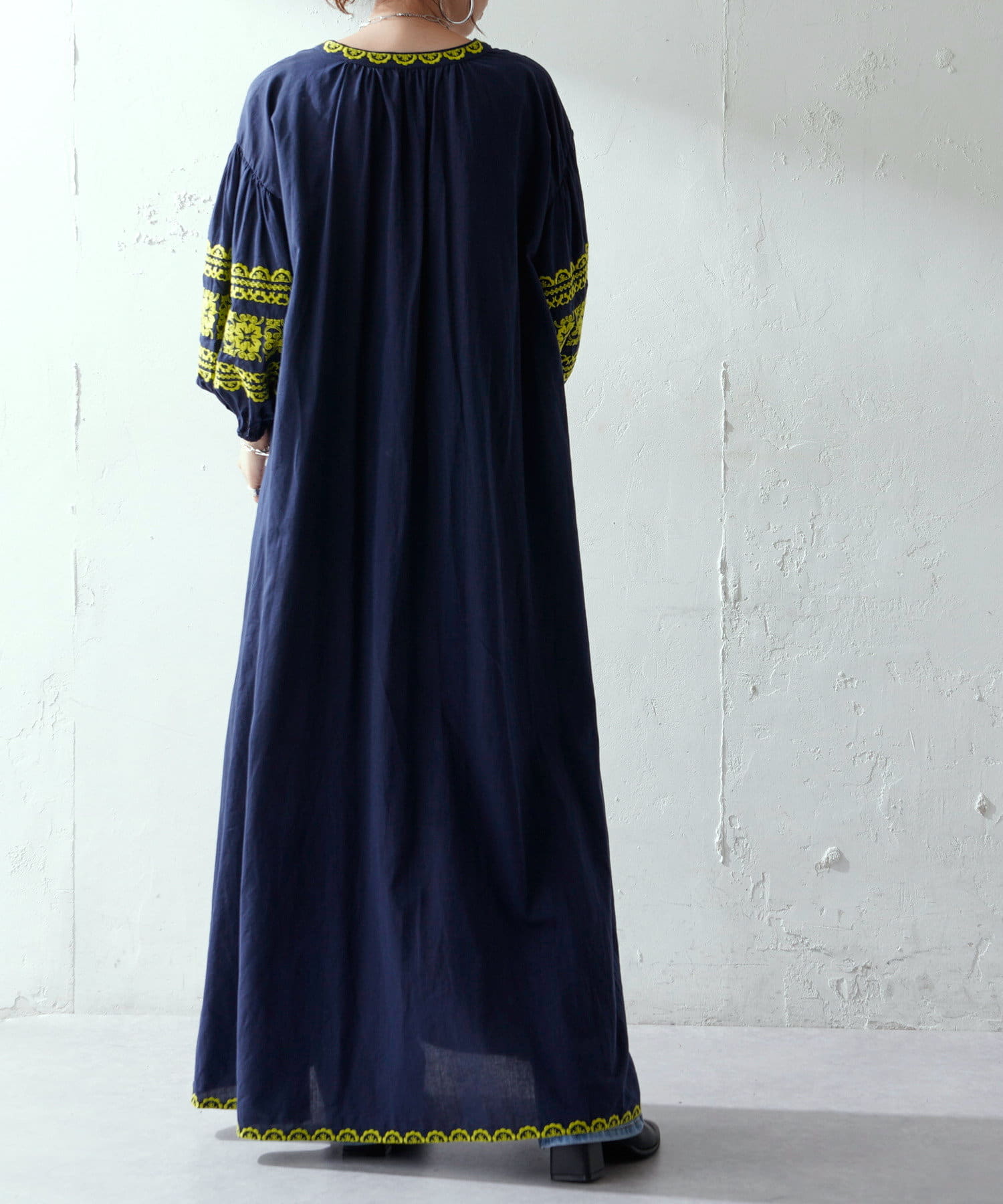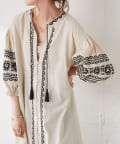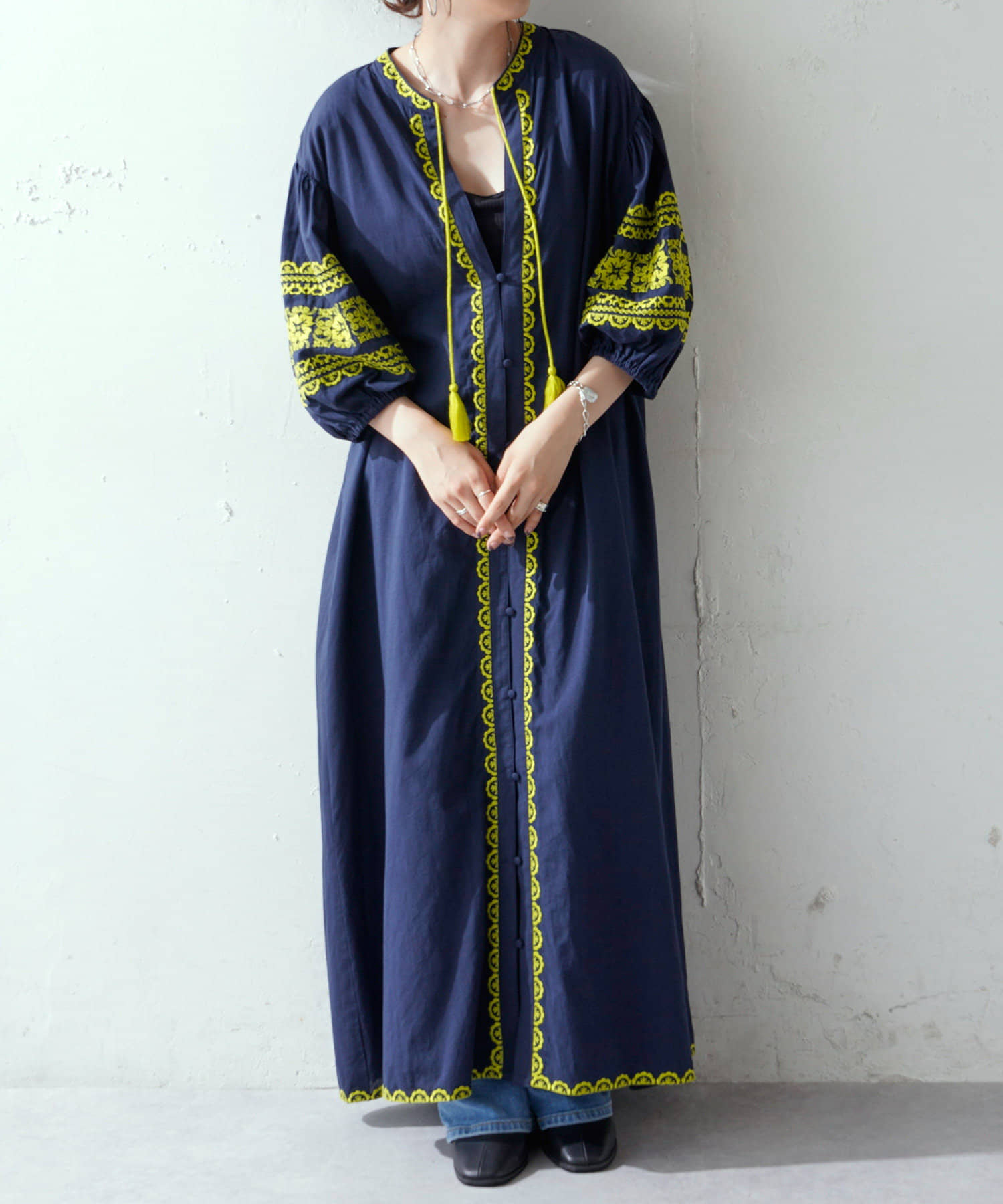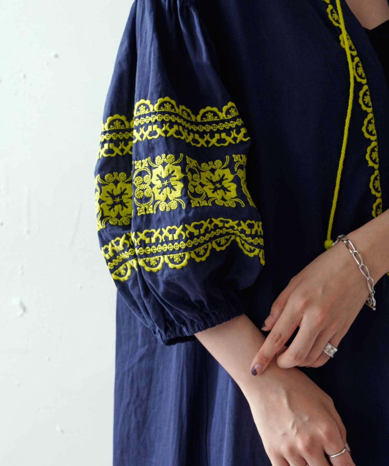 エスニックな雰囲気漂うコットン刺繍ワンピース。