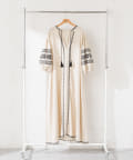 色がいい感じ。生地のパリッと感がいい。裾まで刺繍があるのがいい感じ。前はしめてワンピースにしても、開けて羽織りにしてもいいです。