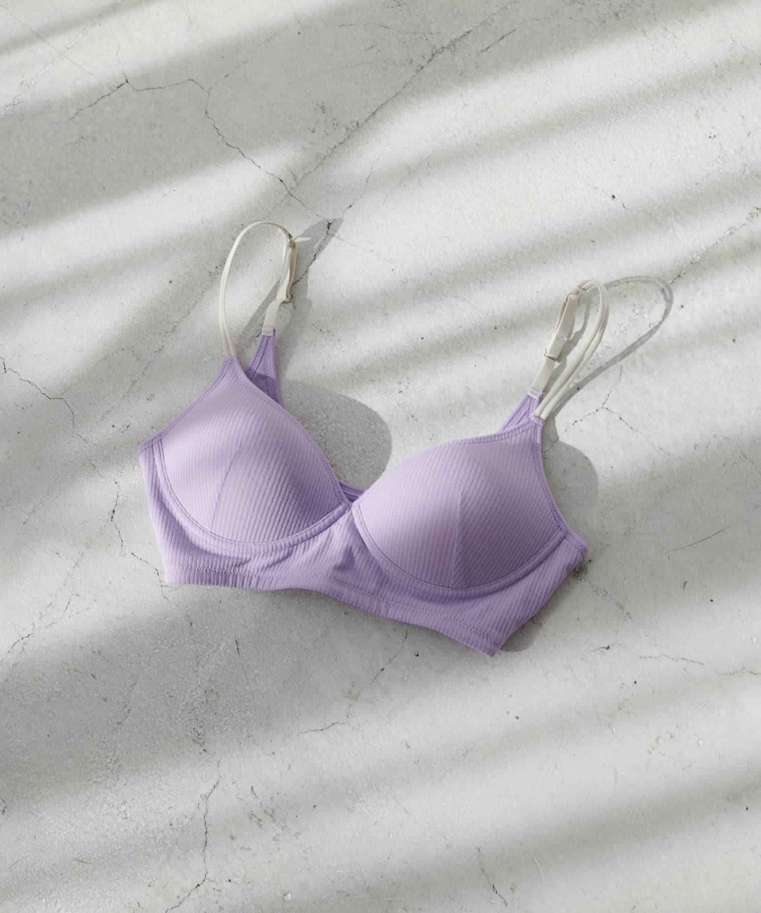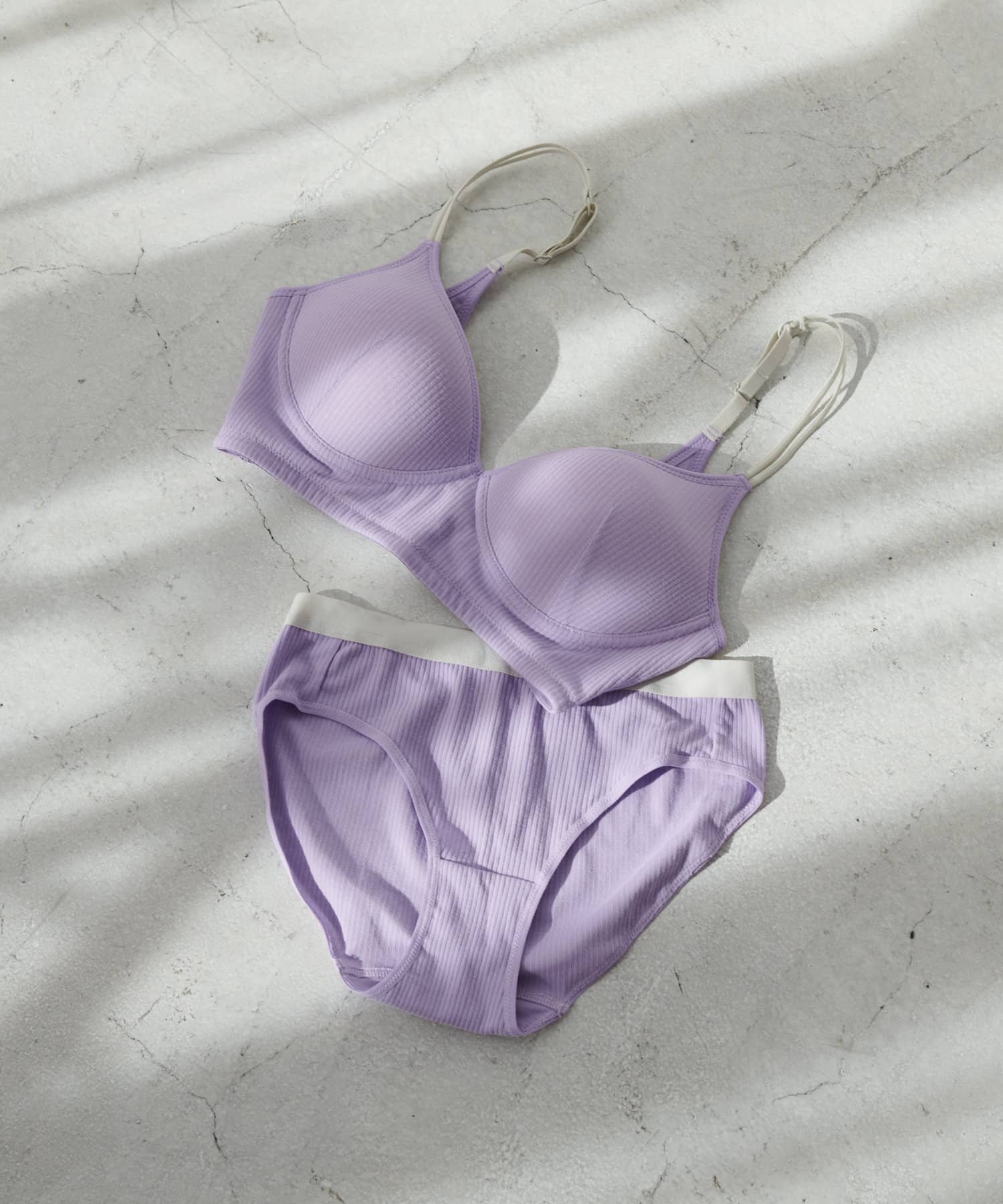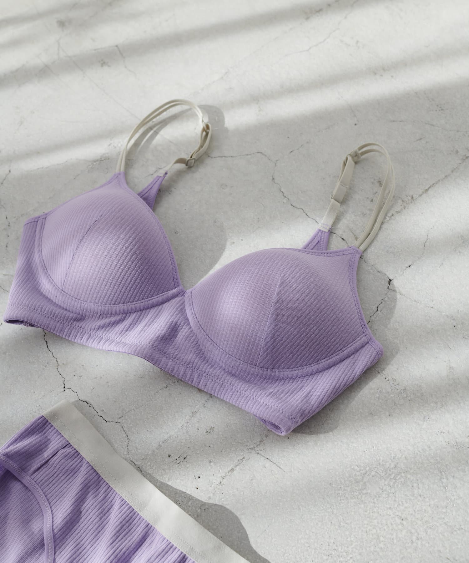 配色カラーとリブ使いがカジュアルな雰囲気のブラ。