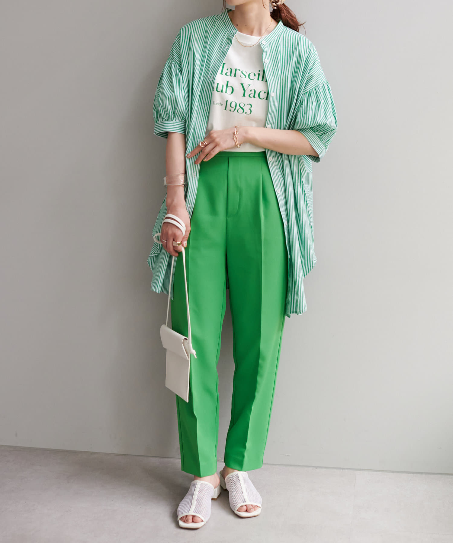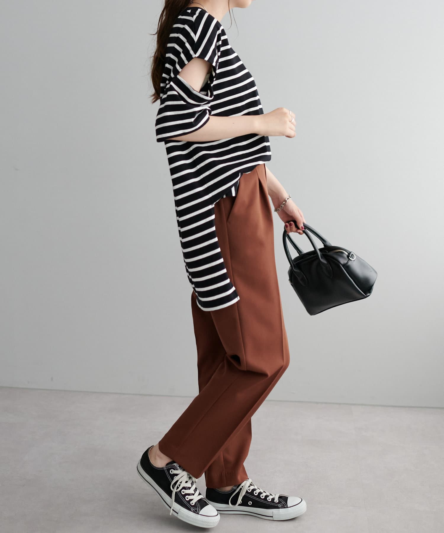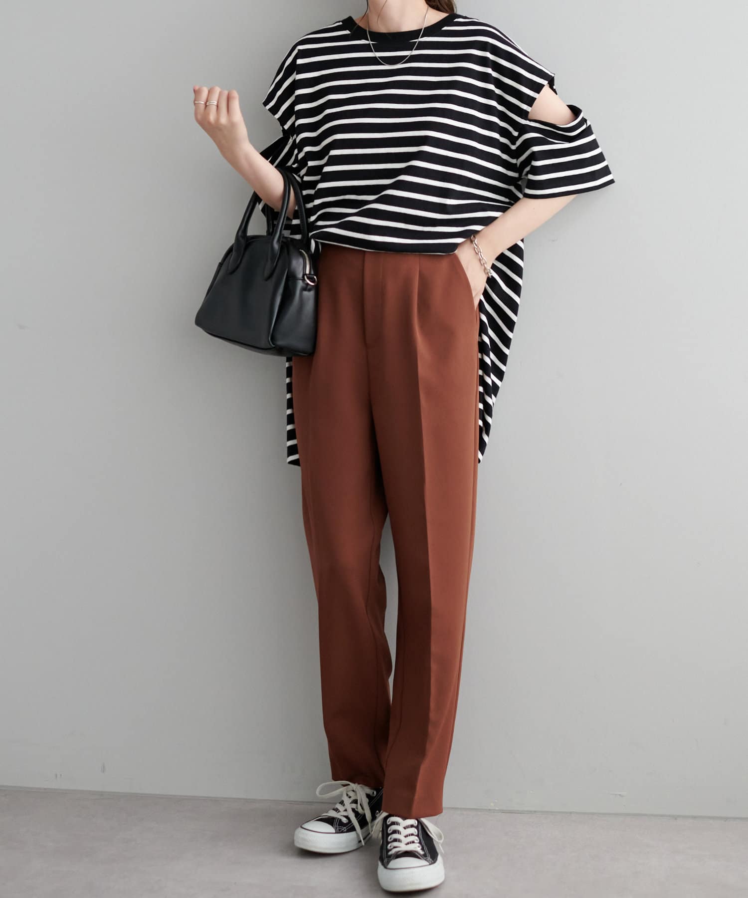 ロゴTシャツを合わせたカジュアルスタイルはもちろん、ブラウスやジャケットで綺麗にまとめるのもおすすめ。スタイリングのバランスも取りやすく、どんなトップスとも相性抜群です。