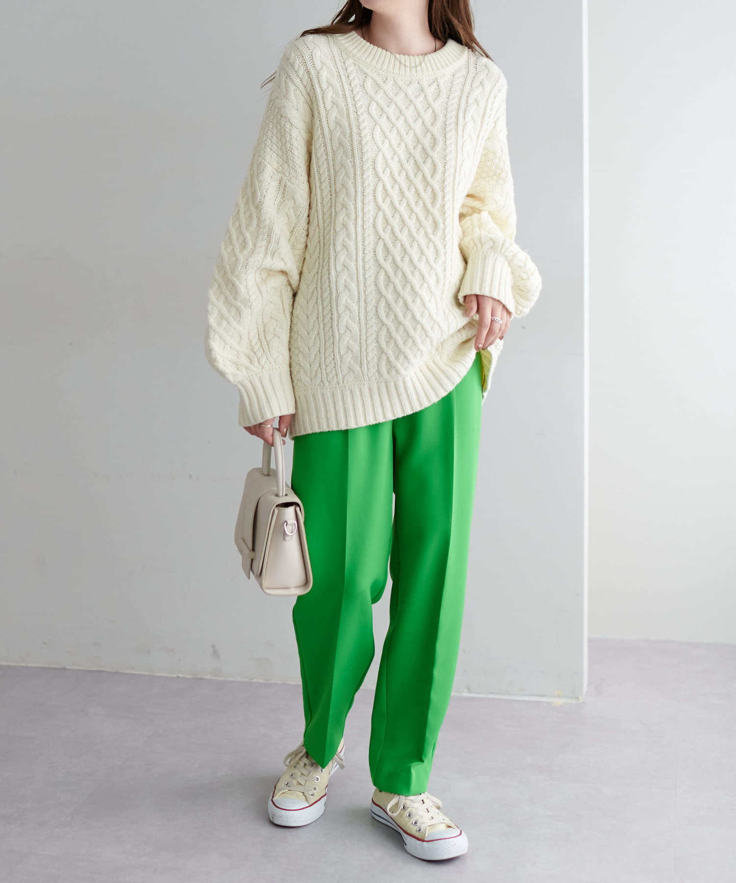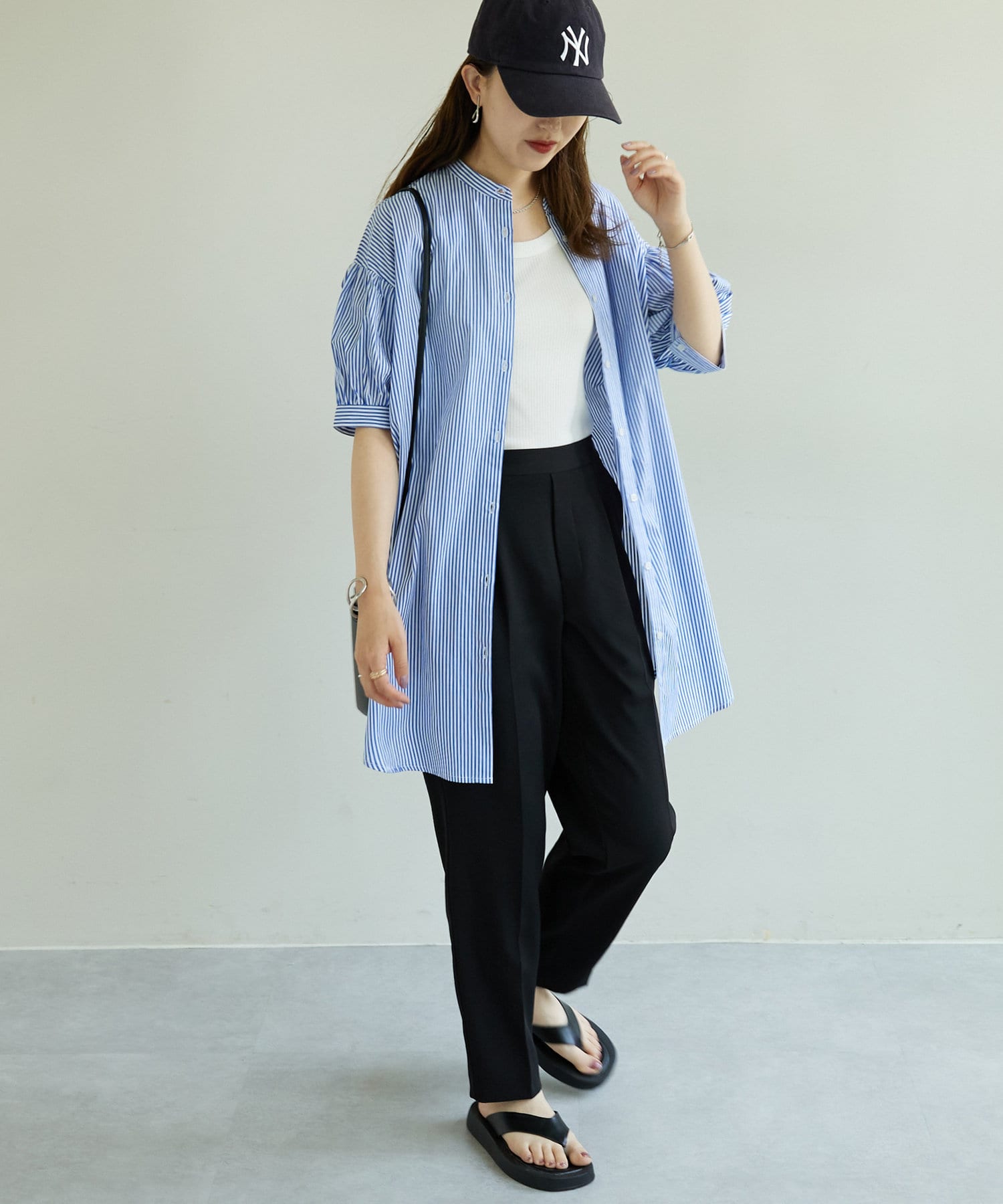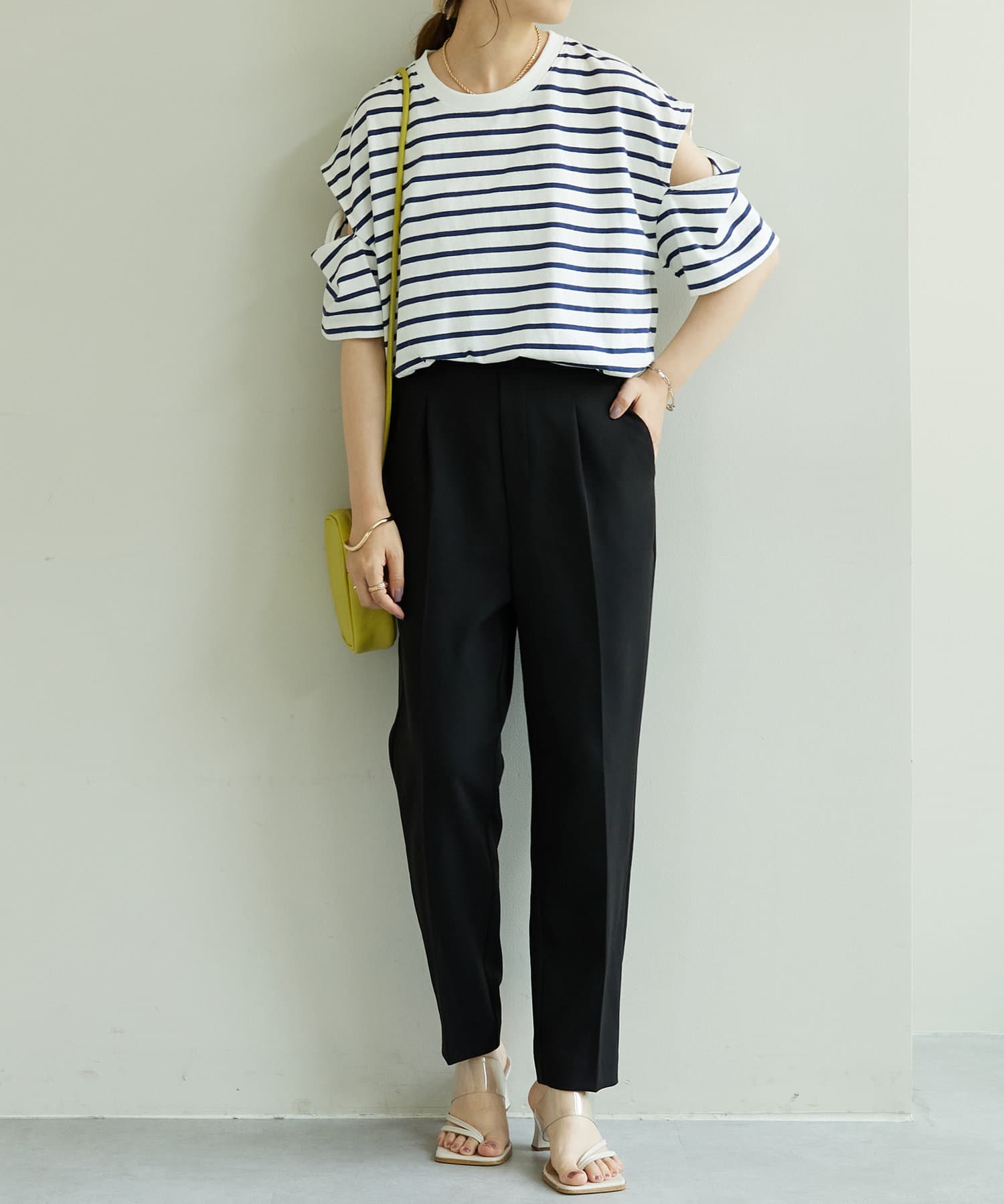 ロゴTシャツを合わせたカジュアルスタイルはもちろん、ブラウスやジャケットで綺麗にまとめるのもおすすめ。スタイリングのバランスも取りやすく、どんなトップスとも相性抜群です。
