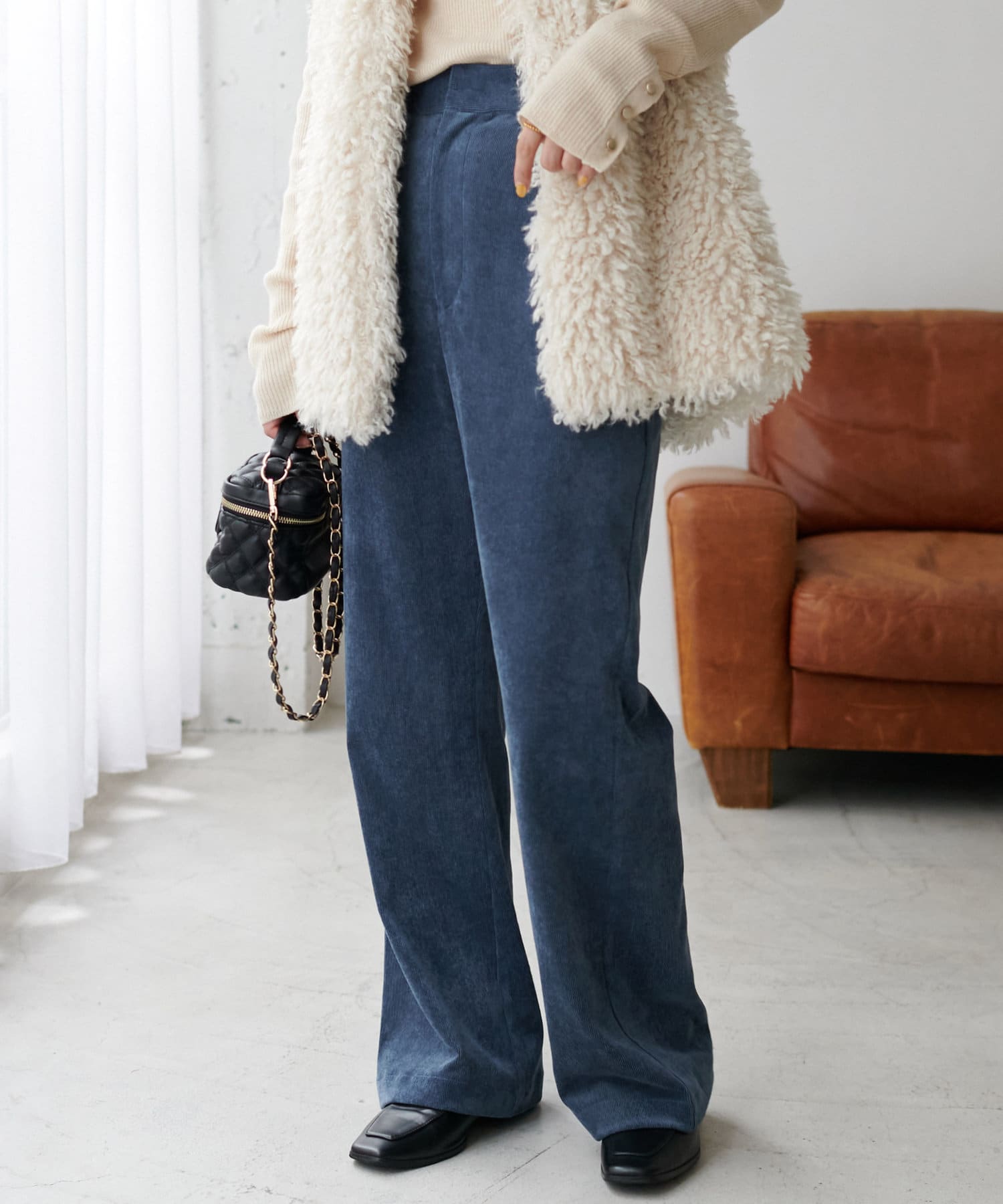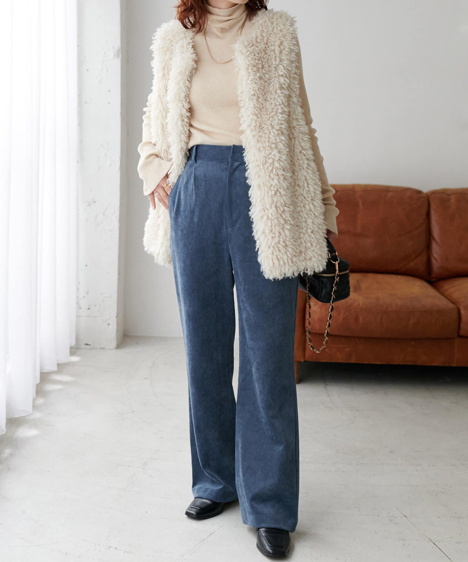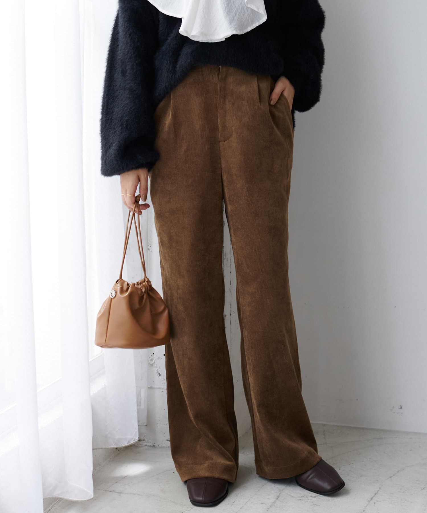 秋冬シーズンに着回したいコーデュロイフレアパンツ。