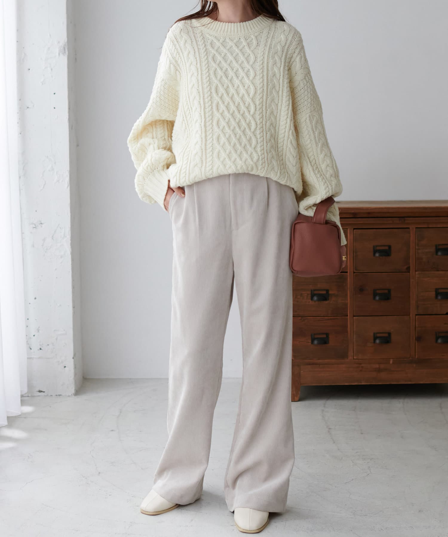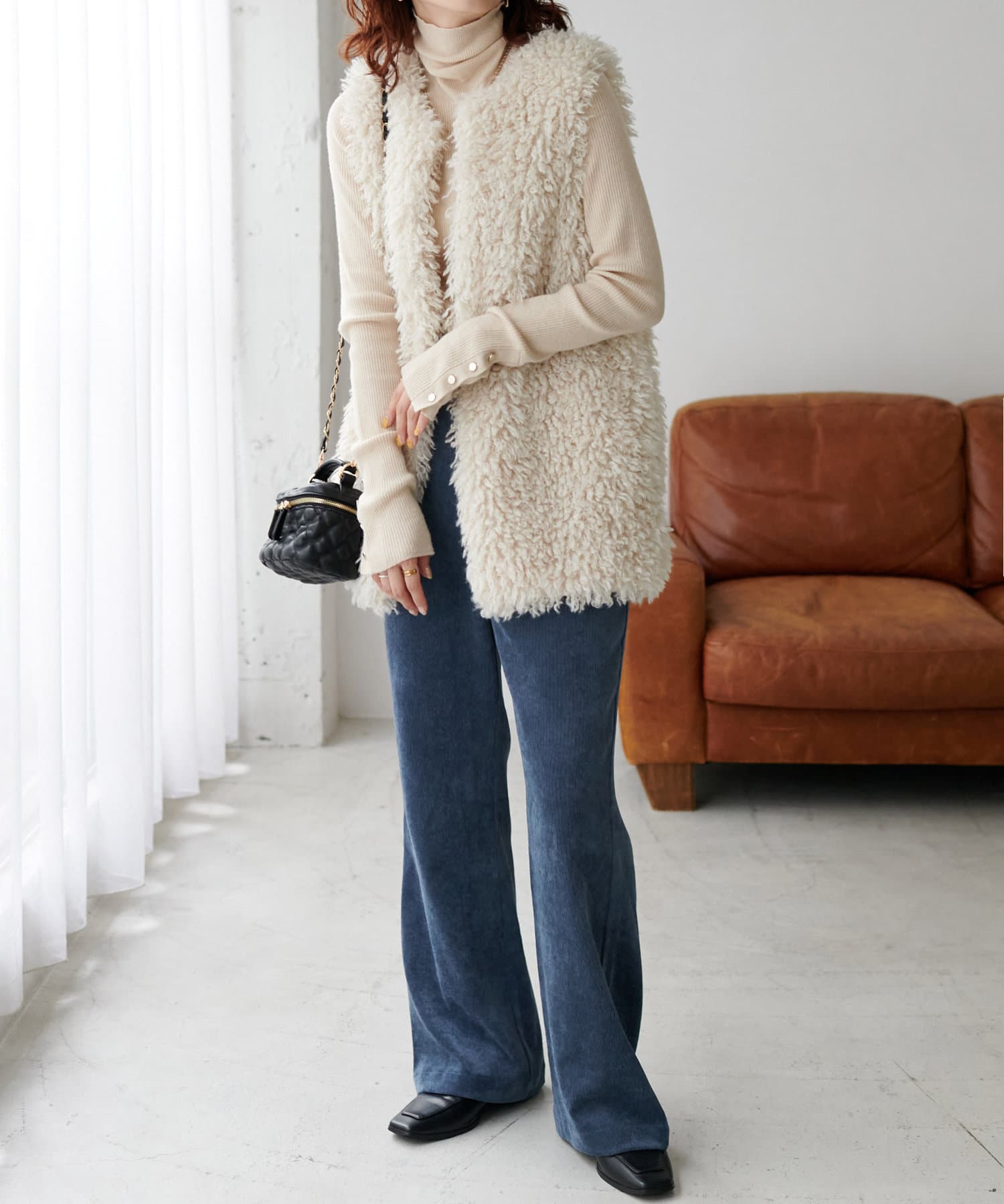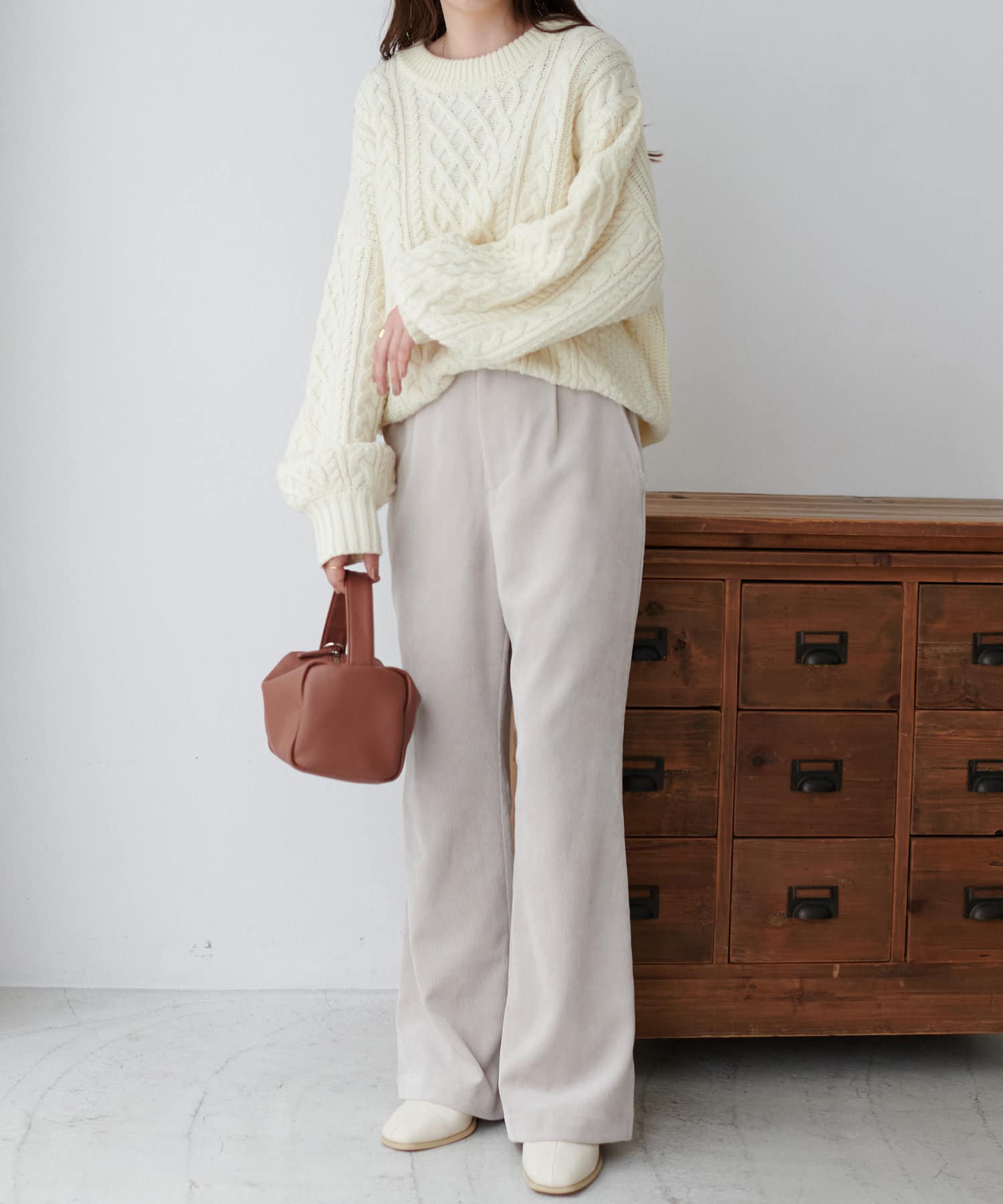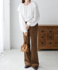 秋冬シーズンに着回したいコーデュロイフレアパンツ。
