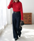 ワイドパンツやナロースカートなど、ボトムスを選ばず幅広く着回せるアイテム。すっきりとしたシルエットで、ジャケットやベストのインナー使いにも最適です。