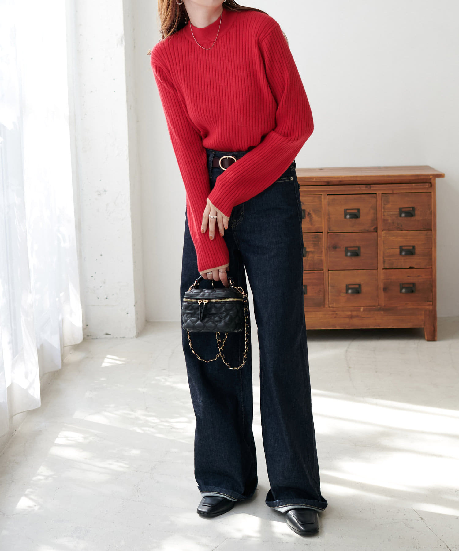 肩幅が広いため、リブニットは大体Lサイズを選んでいて、こちらも試着せずにLにしてしまったのですが、Mにすれば良かったです。。。