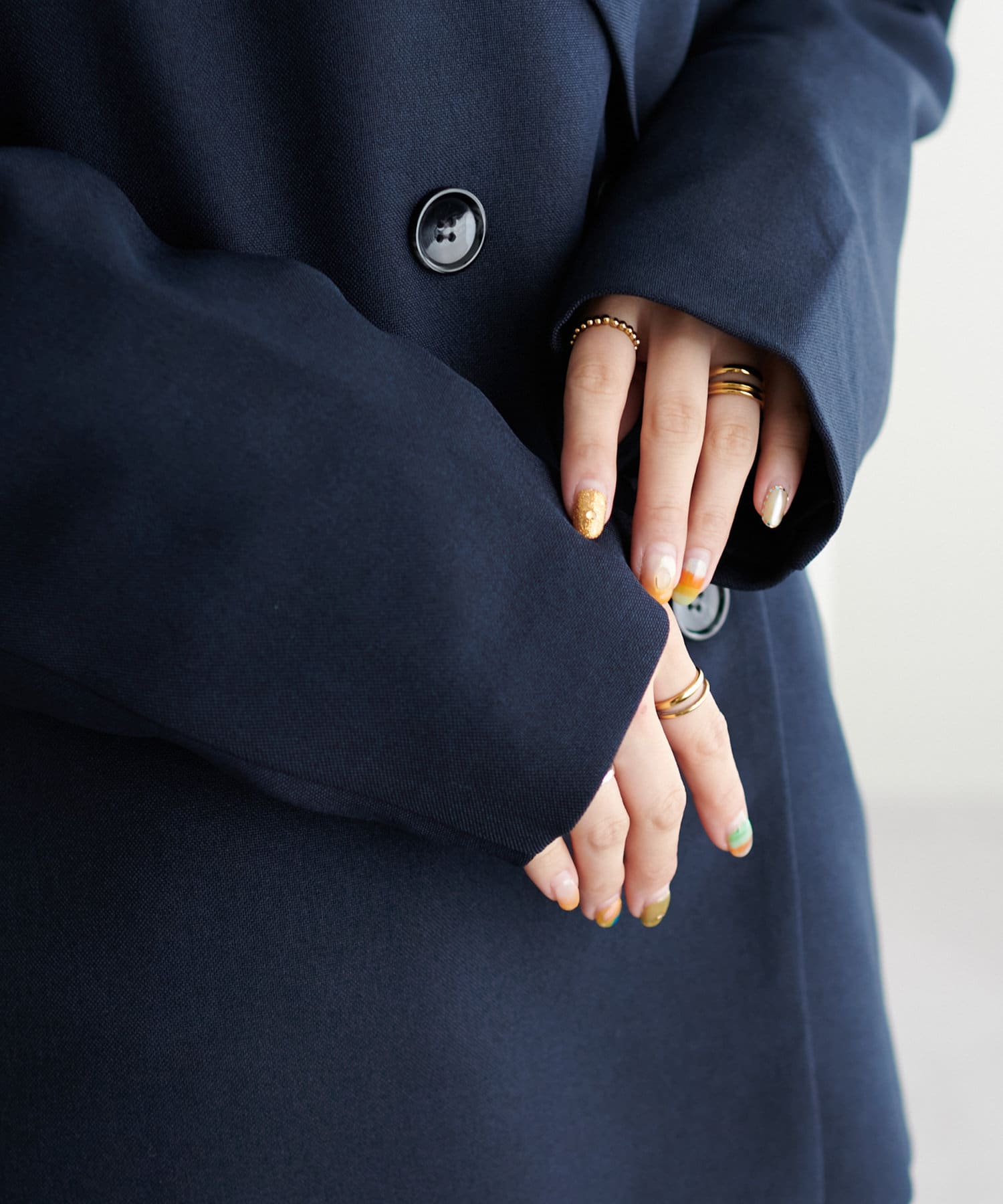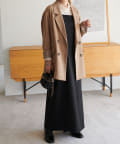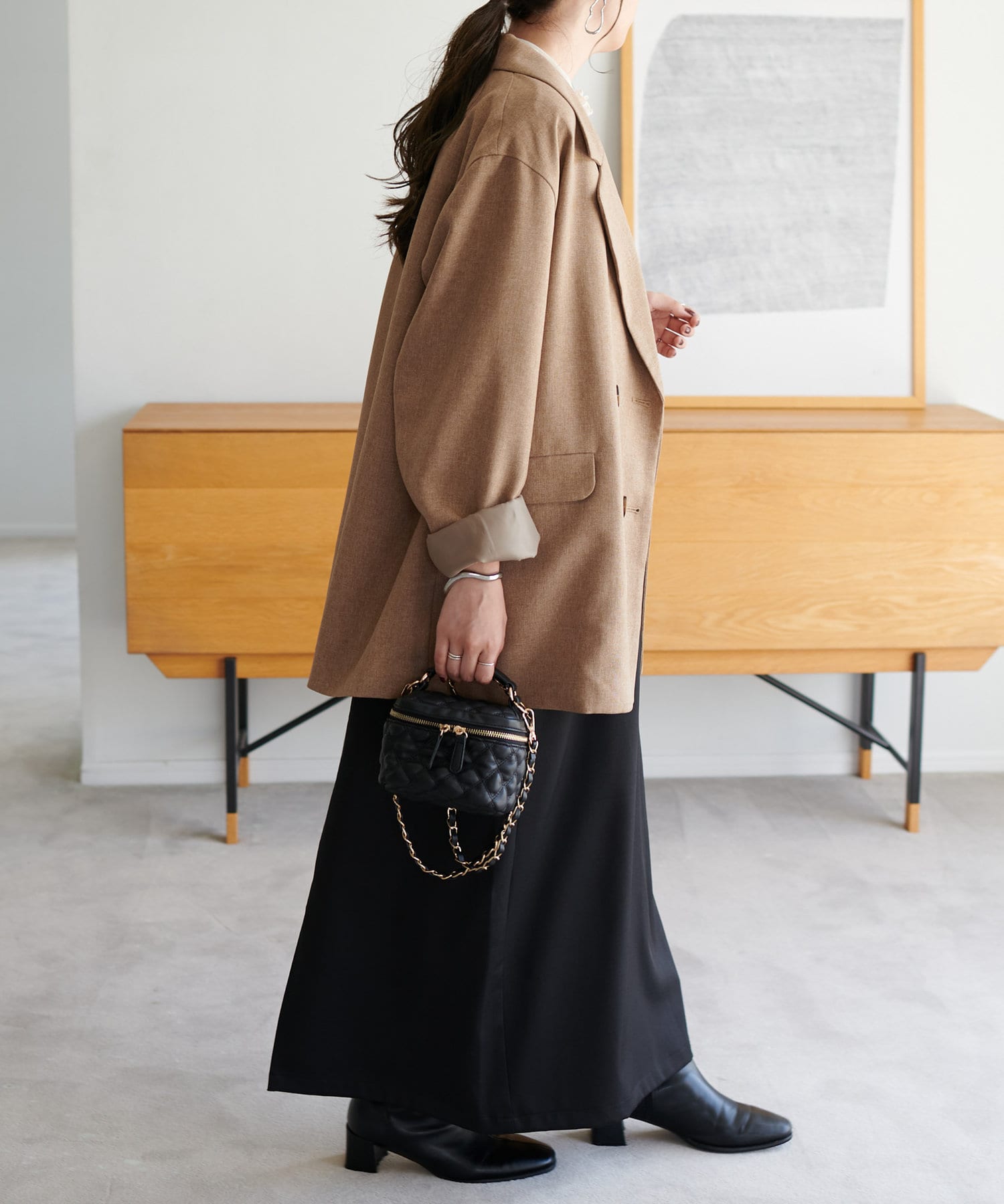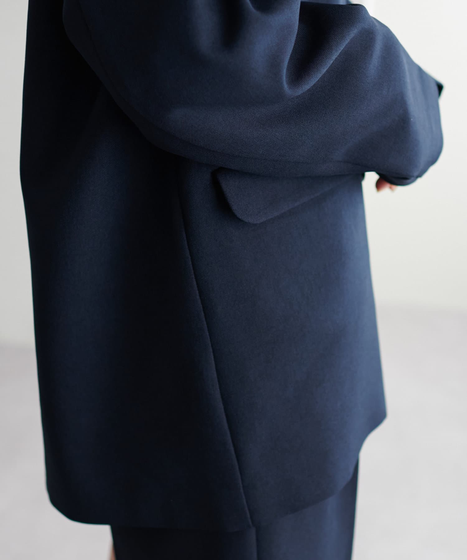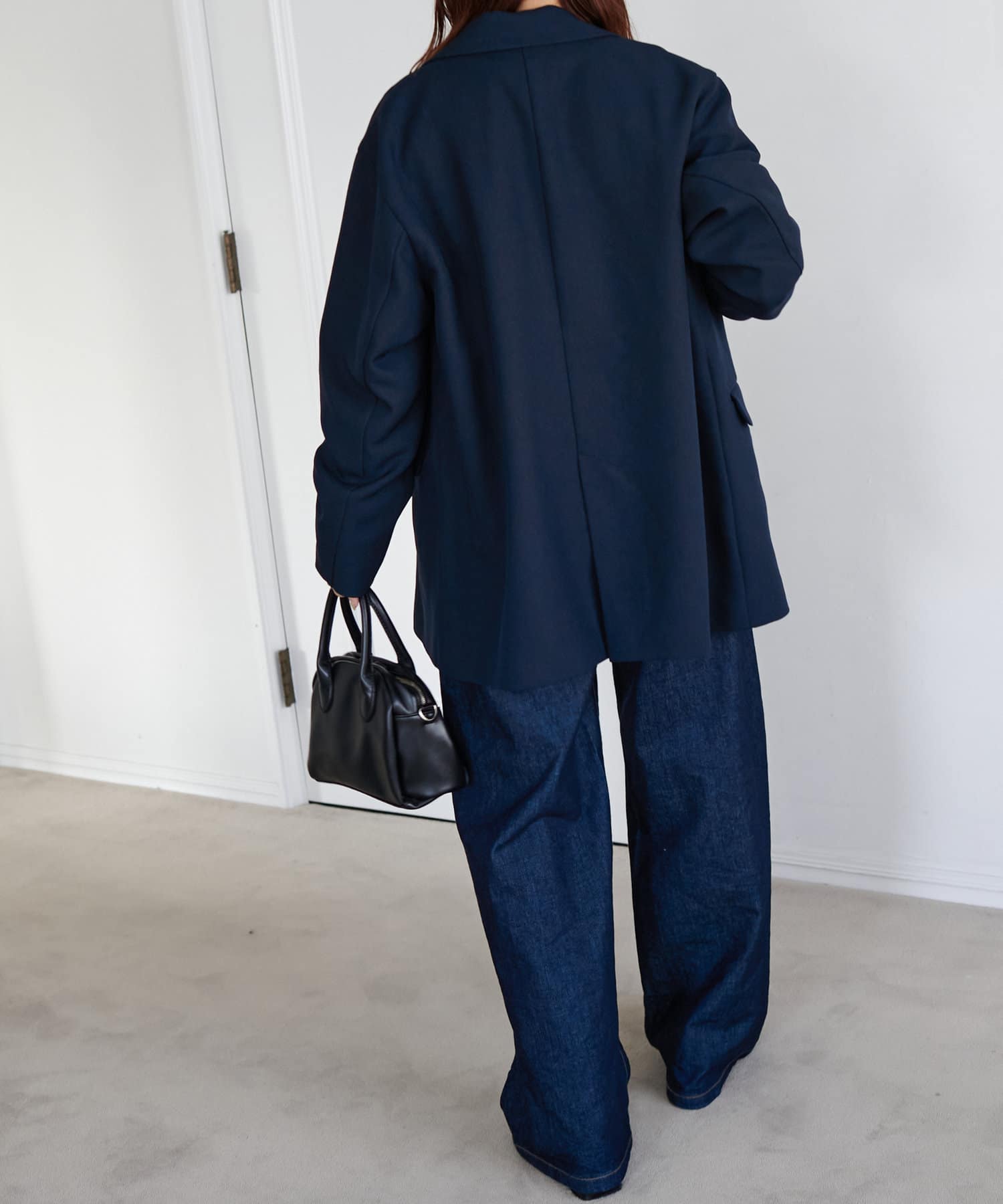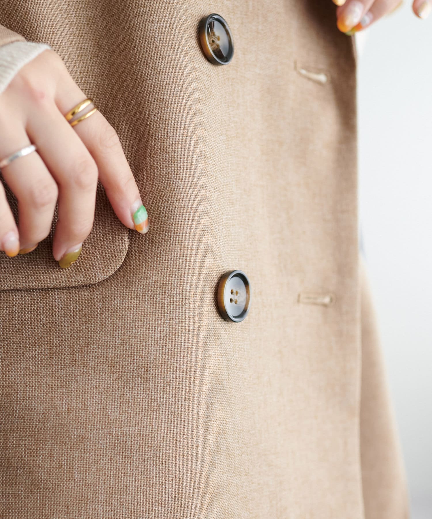 マニッシュな着こなしを楽しめる、ダブルブレストのテーラードジャケット。ゆったりとしたシルエットに、ヒップにかかる着丈バランスがトレンドムードを演出。さらりとした肌触りでシワになりにくく、デイリー使いしやすいのも魅力です。バックスタイルにはベンツを施すことで、動きやすいデザインに◎幅広いシーンで活躍ができるジャケットは、ワードローブの強い味方です♪