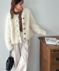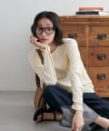 首元や裾、袖口に施したメロー始末がアクセントを添えています。