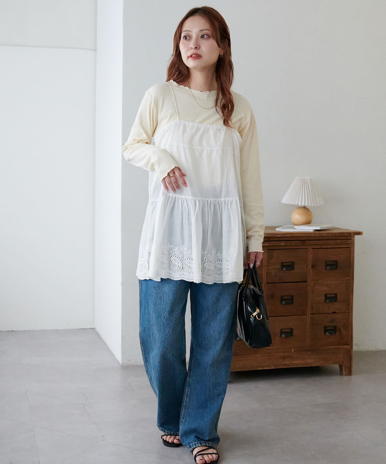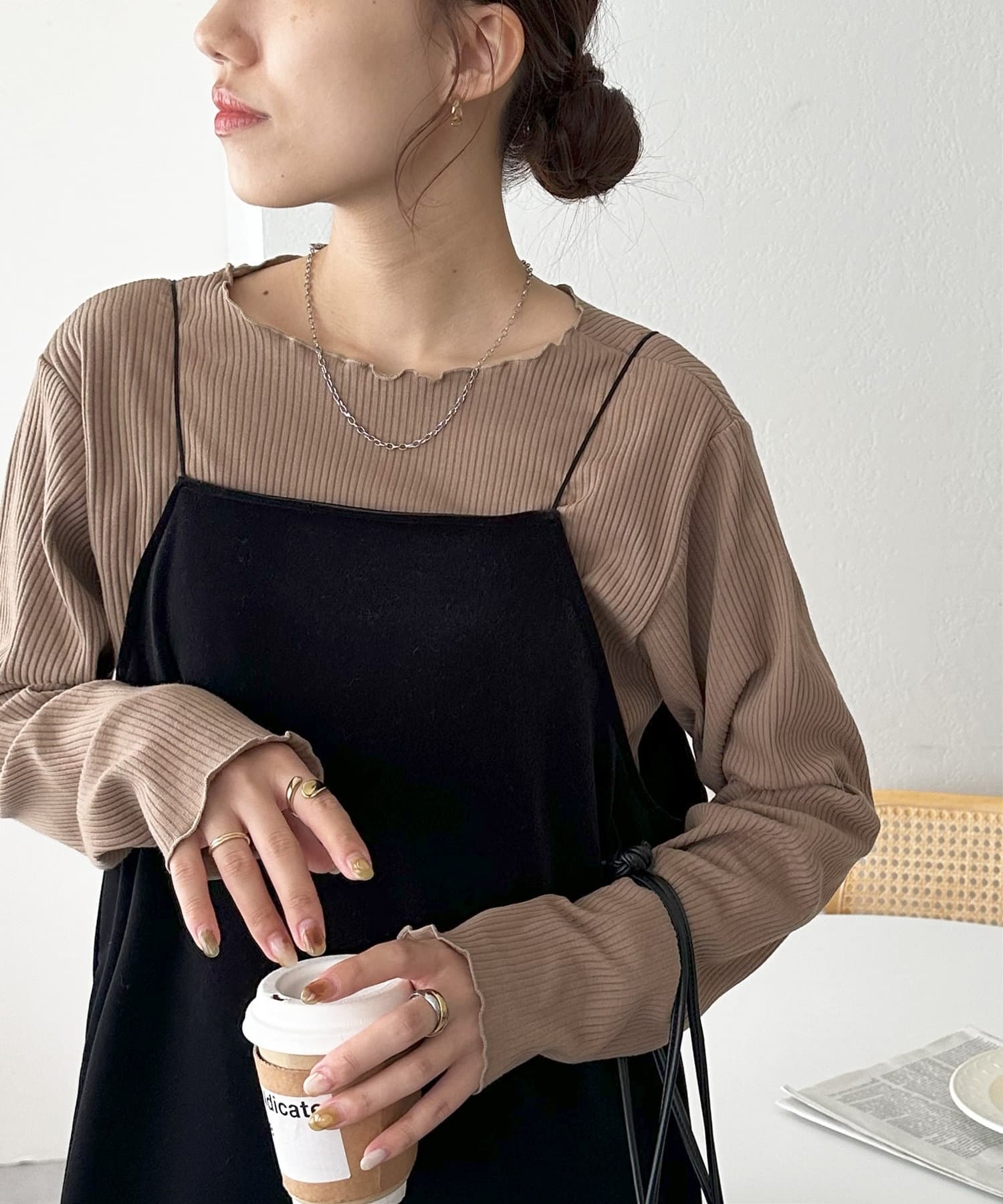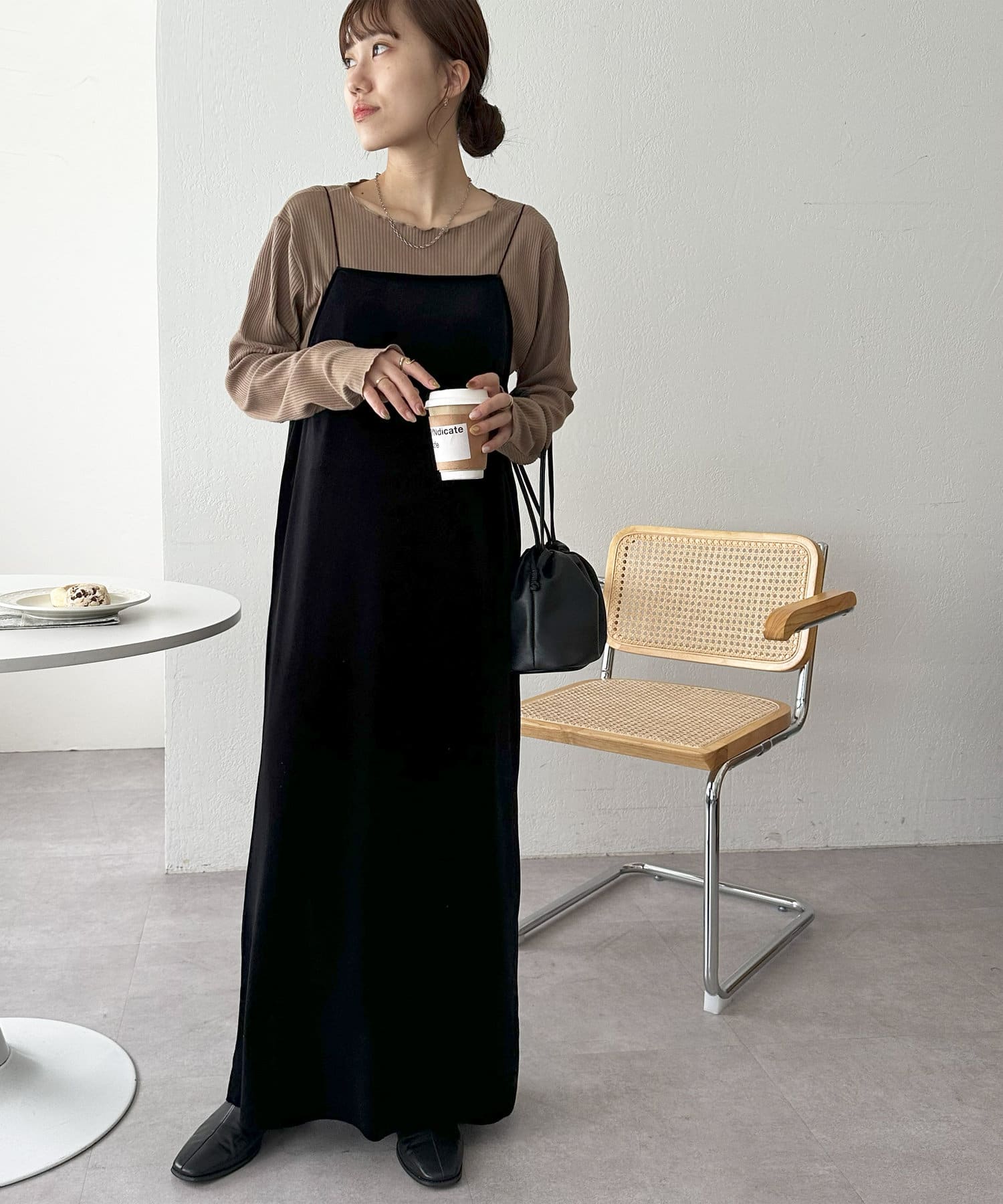 一枚着はもちろん、キャミワンピースやサロペットのインナーにもおすすめ。すっきりとしたシルエットなので、コーディネートのアレンジが広がります。