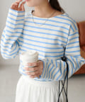 OnlineStore hassy(160cm):今年のボーダーTは、キャミワンピなどのインナーとしても使いやすいようなサイズ感になってます♡程よくフレアになっているお袖もポイントです!