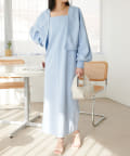 OnlineStore date haruna(163cm):カーディガンとキャミワンピがセット♪シンプルながらも形などデザインにこだわっていて、着回し力も抜群です!