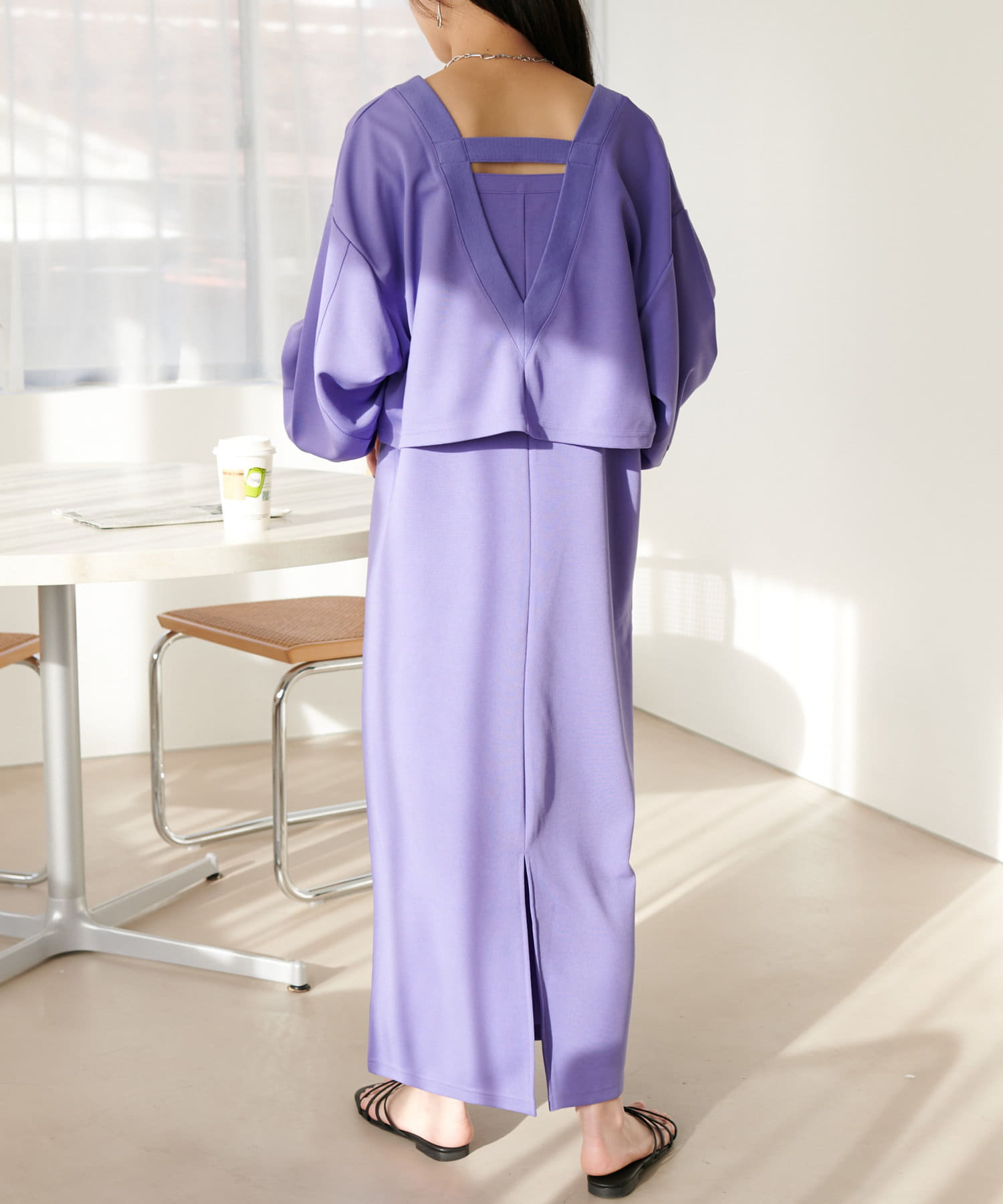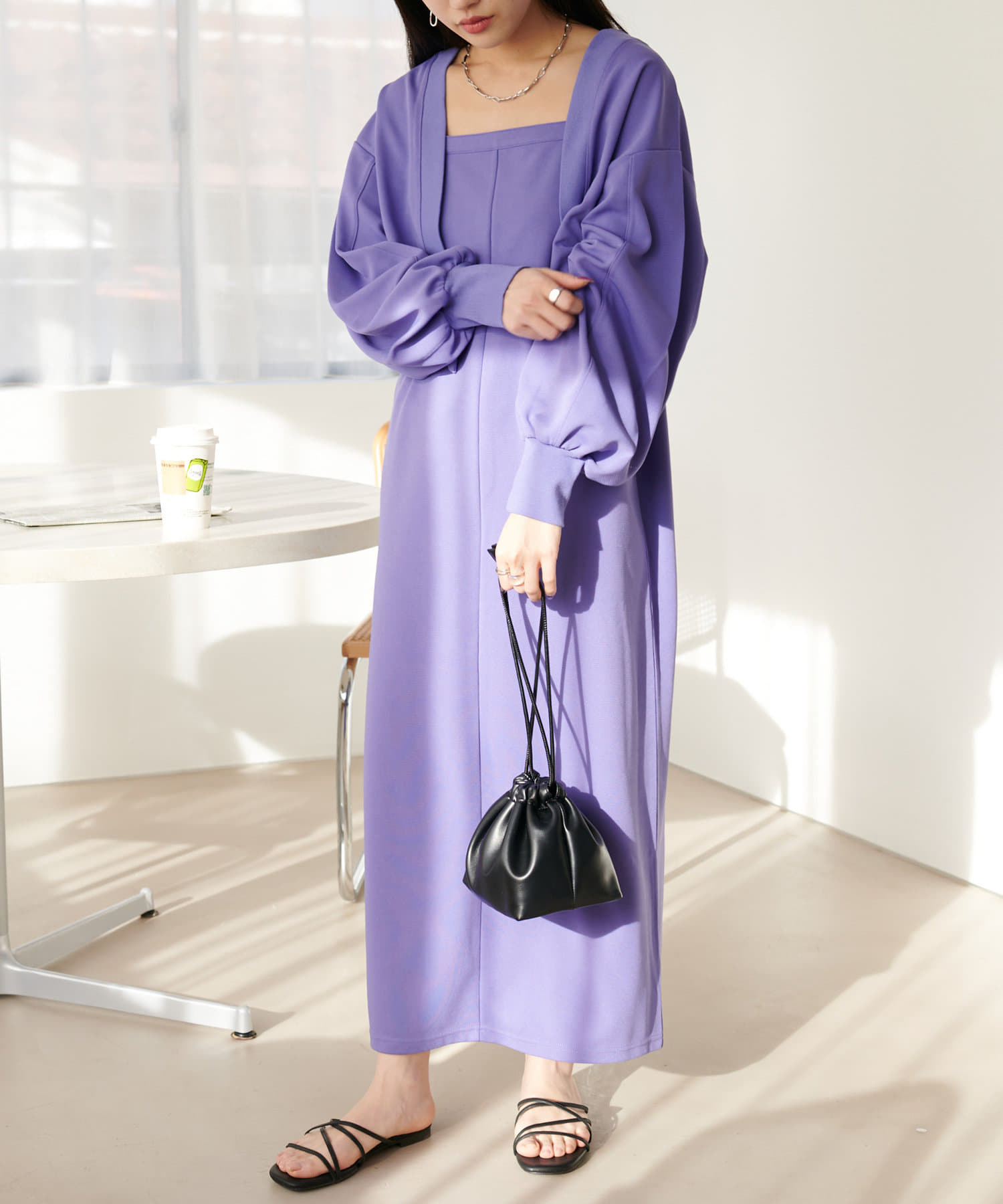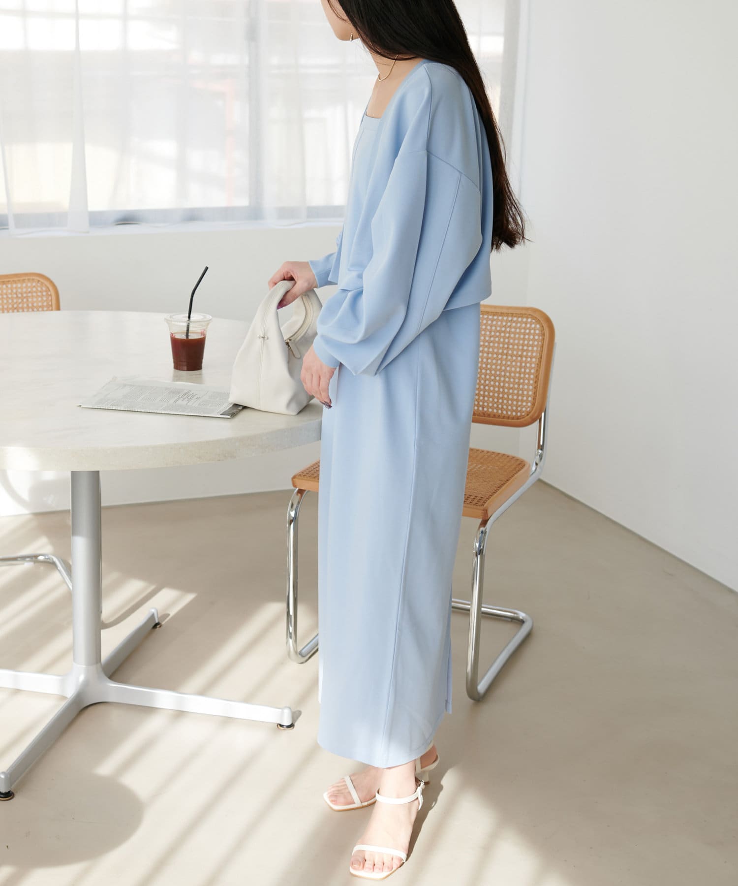 セットでの着用はもちろん、それぞれ単品でも着回しの効く万能アイテム。ワンピースはシアー素材のカットソーや、夏時期にはタンクトップなどインナー次第で幅広いスタイリングを楽しめます。