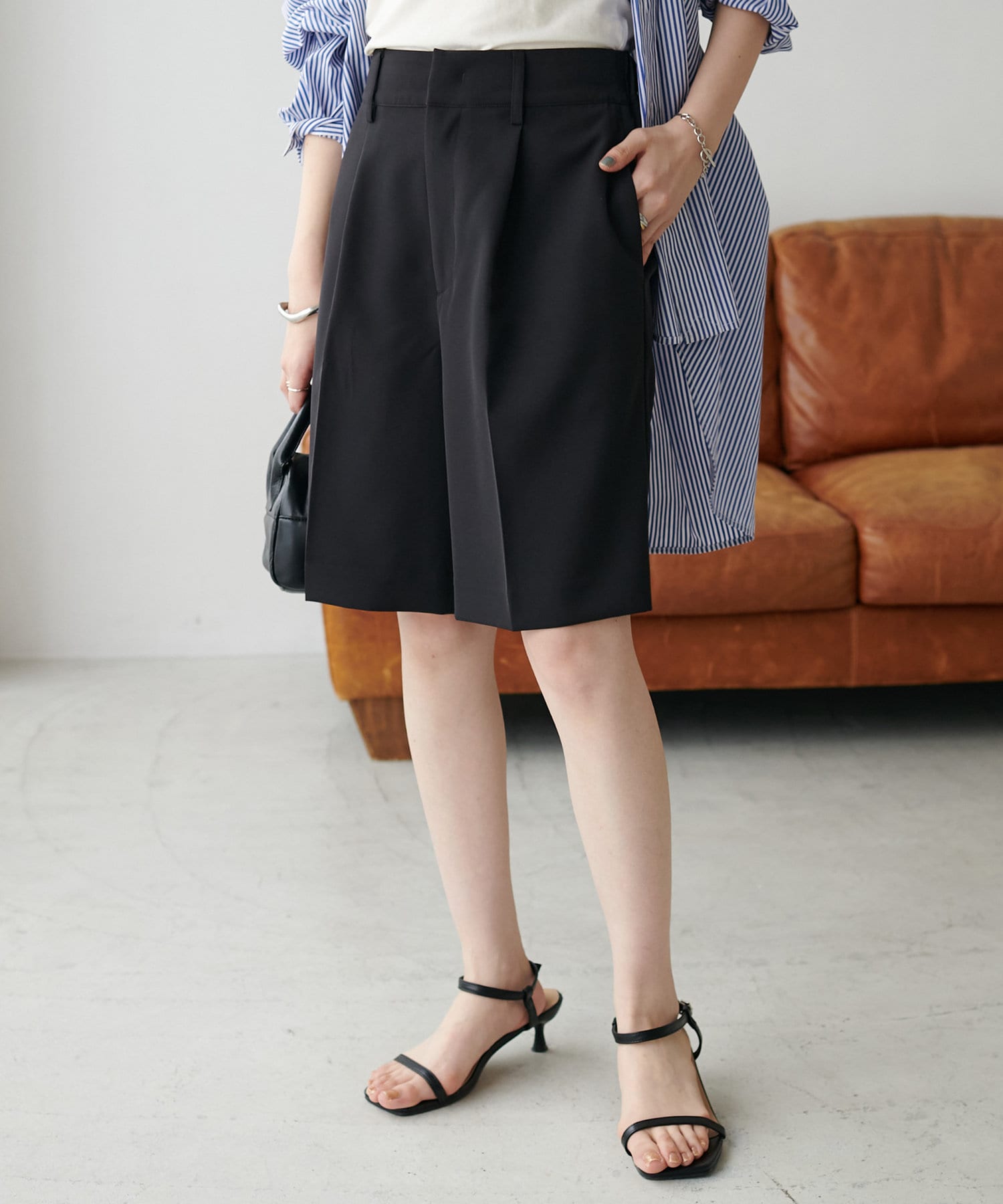 前後に施したセンタープレスがアクセントを効かせ、美しいレッグラインを演出。きちんと感がありながらも、バックゴム仕様がリラックス感と安心感を与えてくれます。長さは短すぎない丈で穿きこなしやすく、大人の女性にもぴったり。ワードローブに一つあると、オンオフ問わず幅広いシーンで活躍する一着です。アンチピリング加工で毛玉になりにくく、お洗濯可能なイージーケアも嬉しいポイント♪